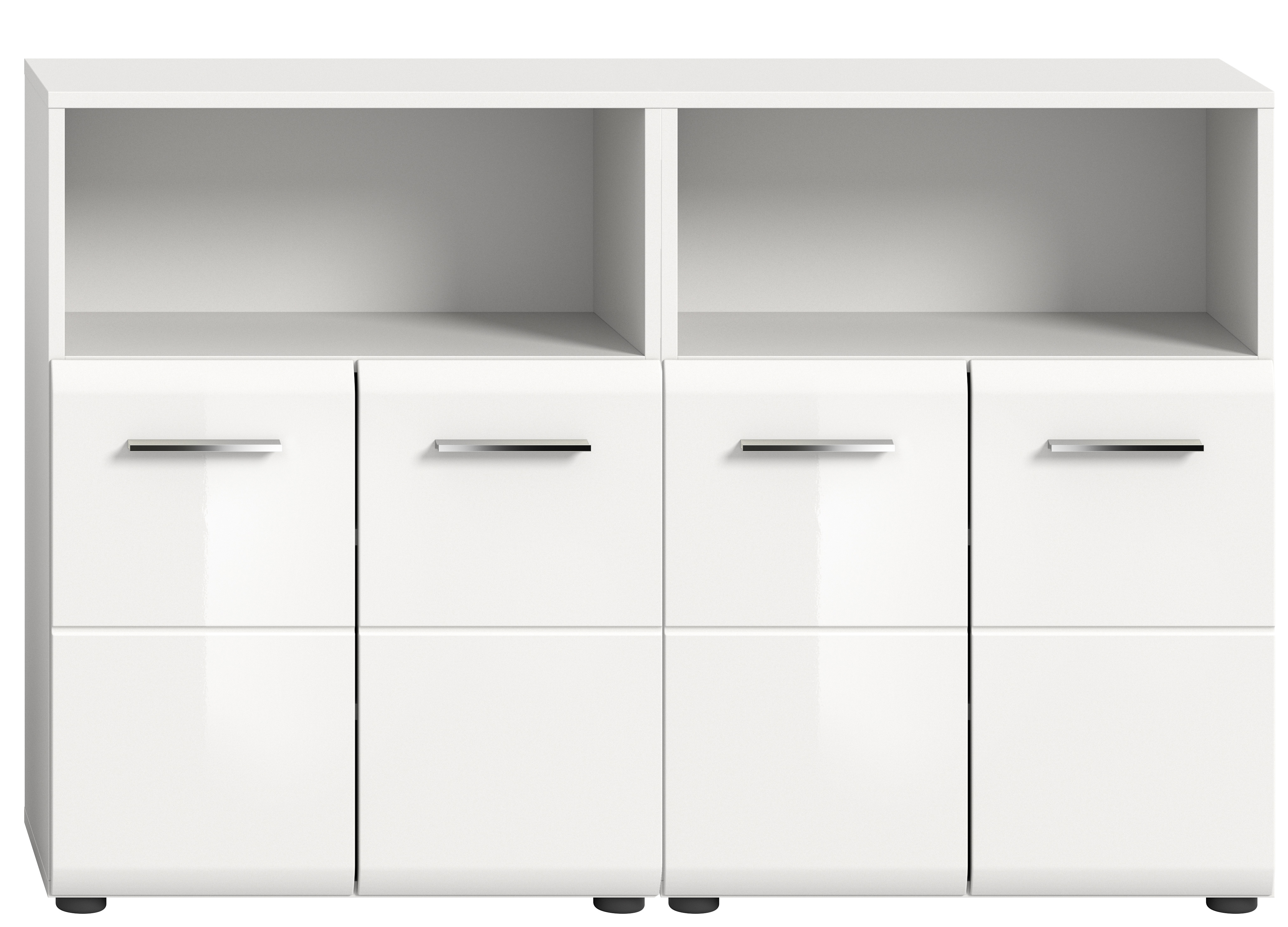 Façade : MDF (panneaux de fibres de bois de densité moyenne ) thermoformé ton blanc ultra brillant / miroir