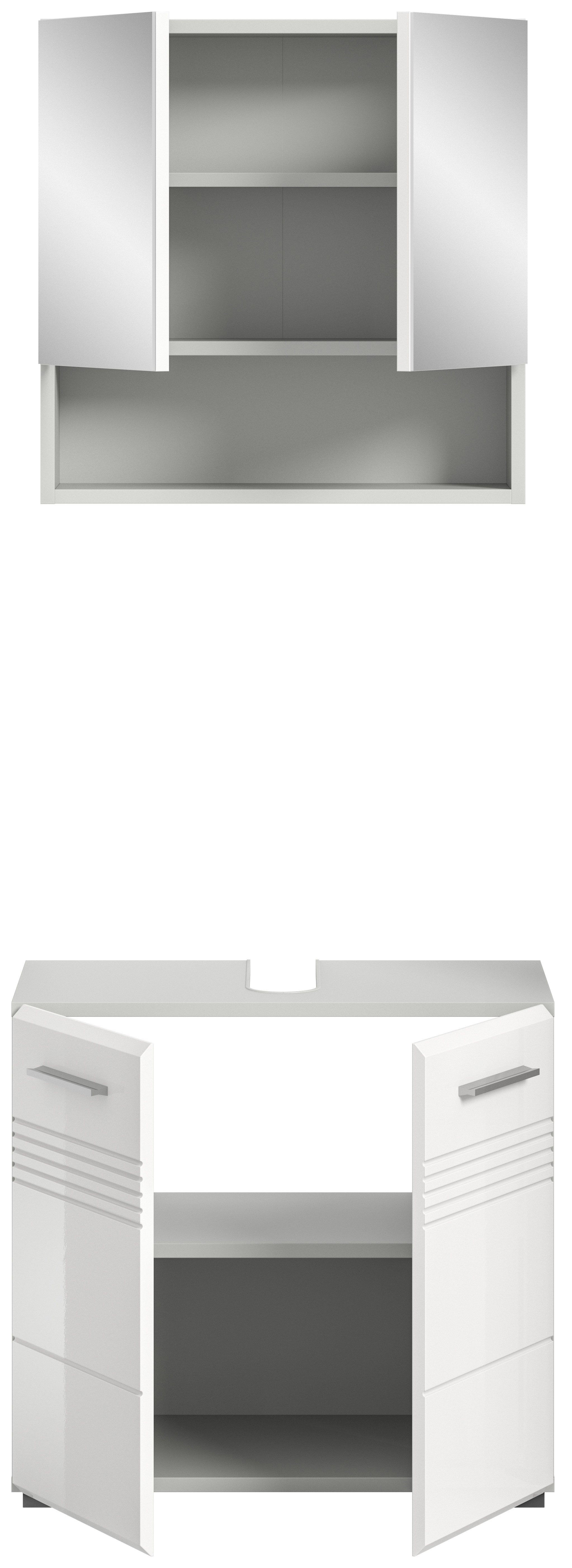 Façade : MDF (panneaux de fibres de bois de densité moyenne ) thermoformé ton blanc ultra brillant / miroir