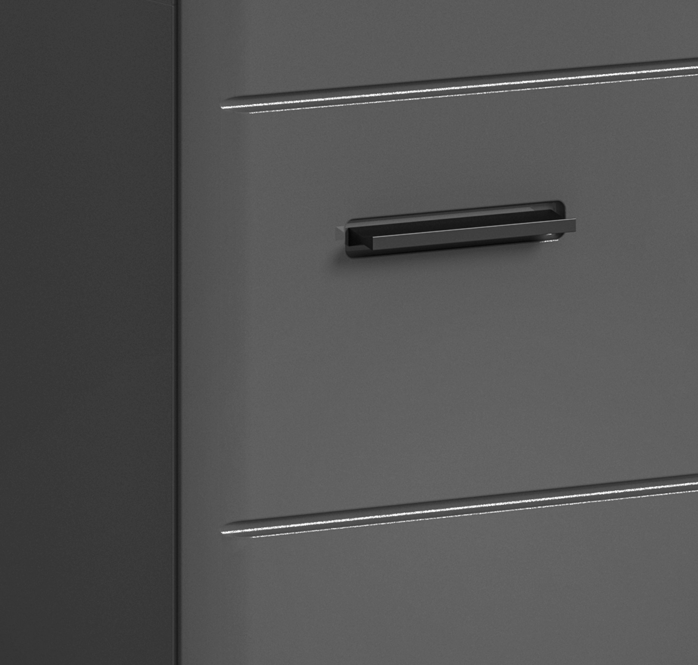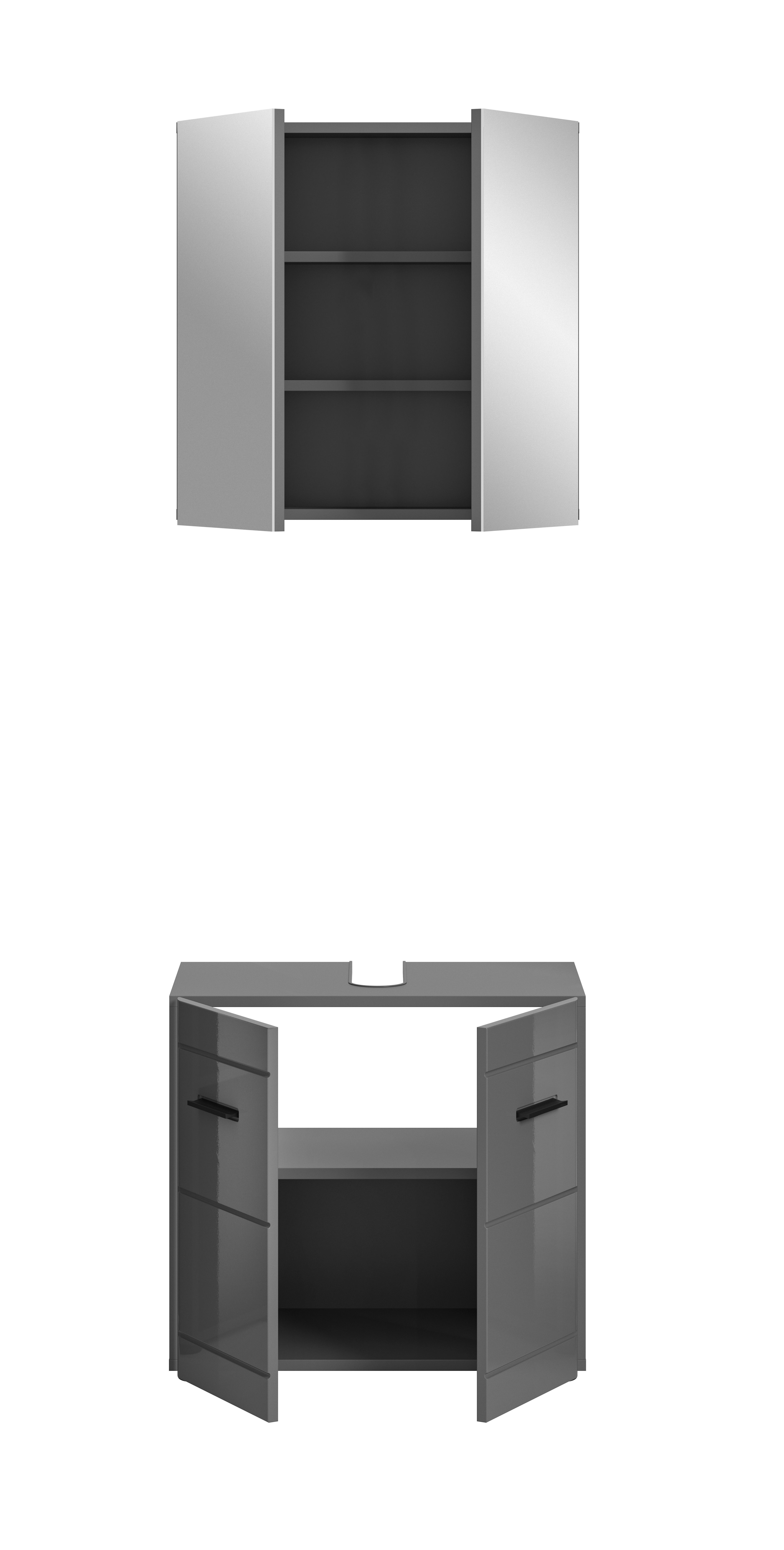 Façade : MDF (panneau de fibres de bois de densité moyenne ) thermoformé ton gris ultra brillant / miroir