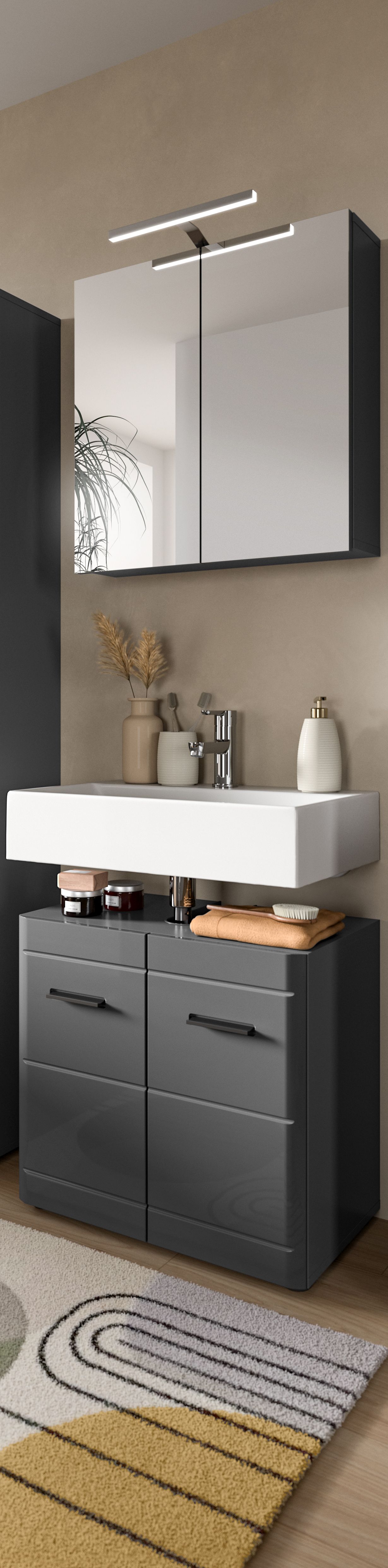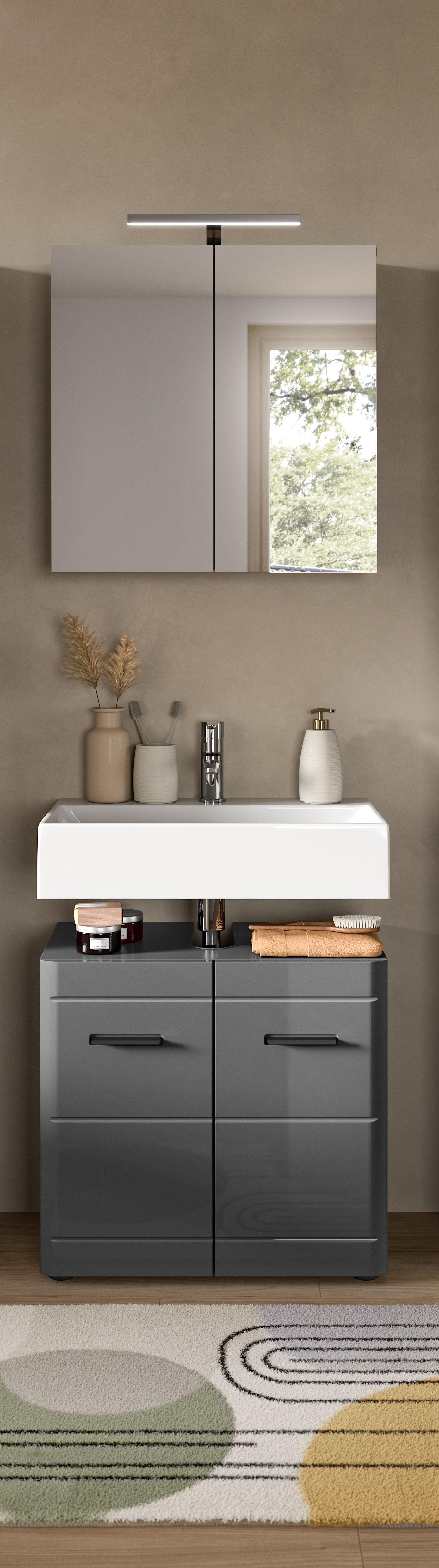 • Fonctionnalité : avec un vaste espace de rangement derrière les portes et sur le panneau supérieur du meuble sous lavabo, cette salle de bains combinée offre une solution pratique pour ranger serviettes, produits de soin et autres accessoires. Elle habille également le point d'eau et contribue à une organisation optimale de la pièce.