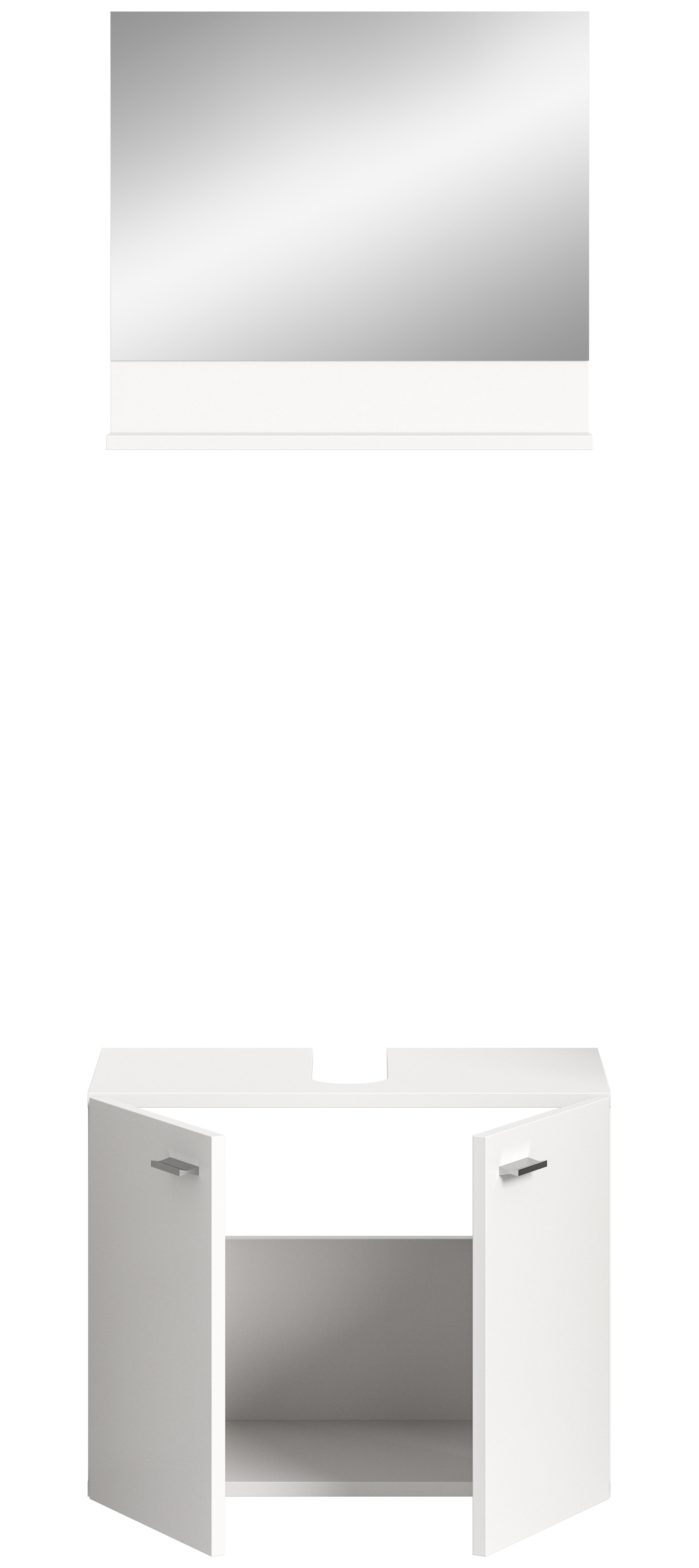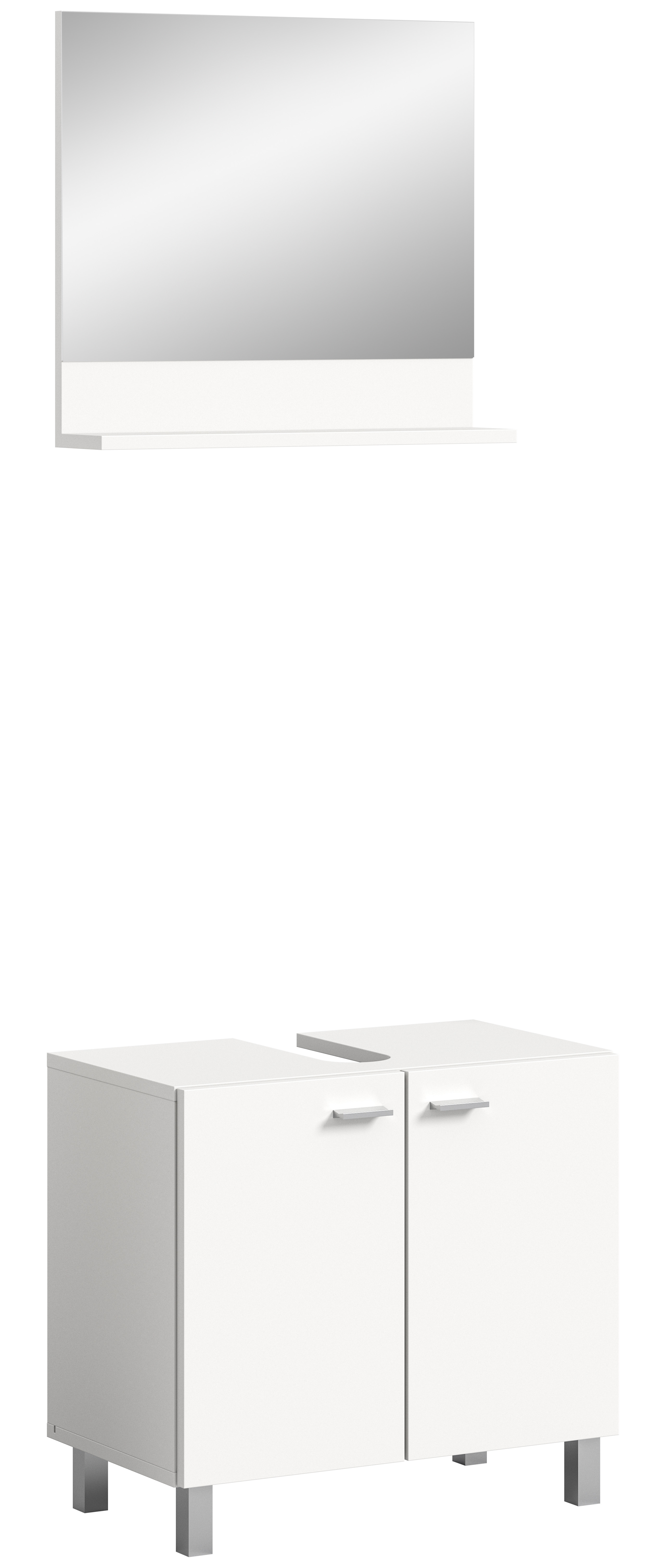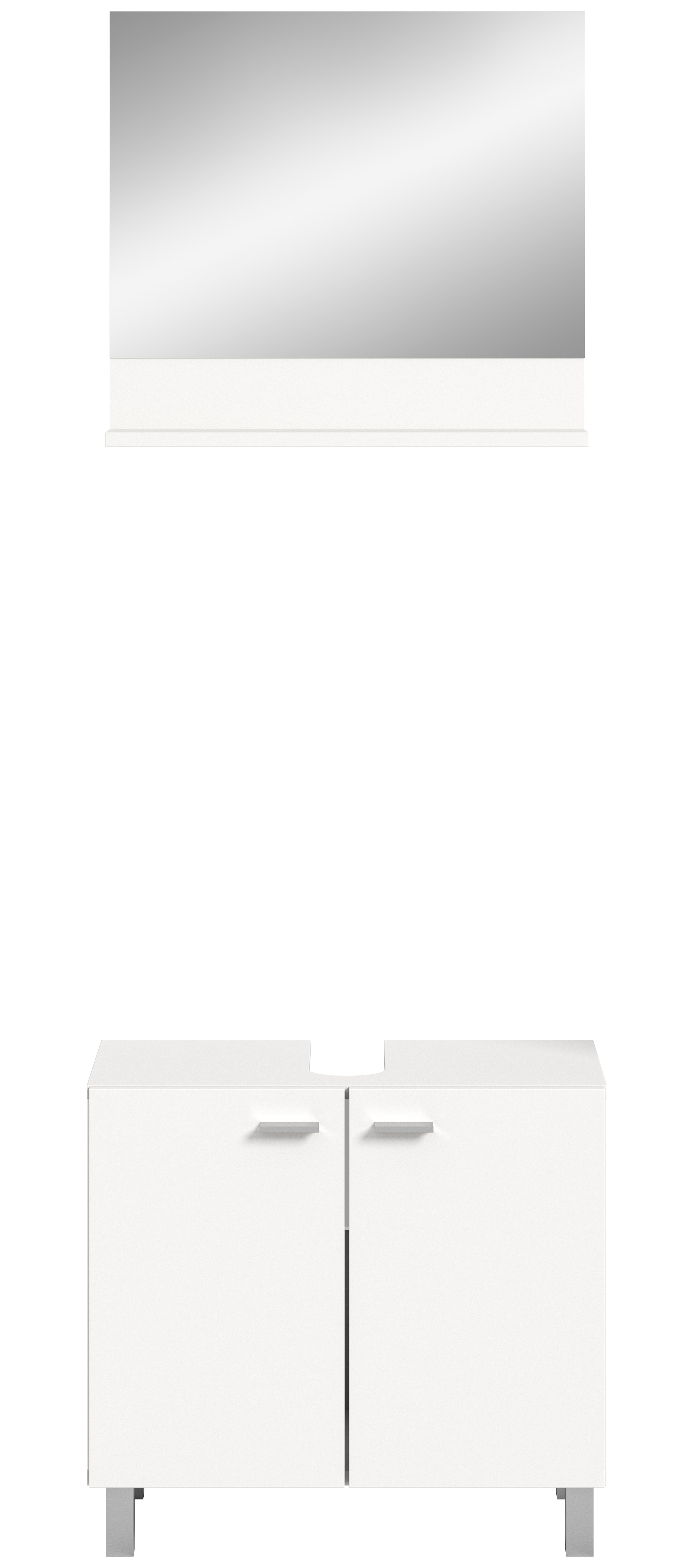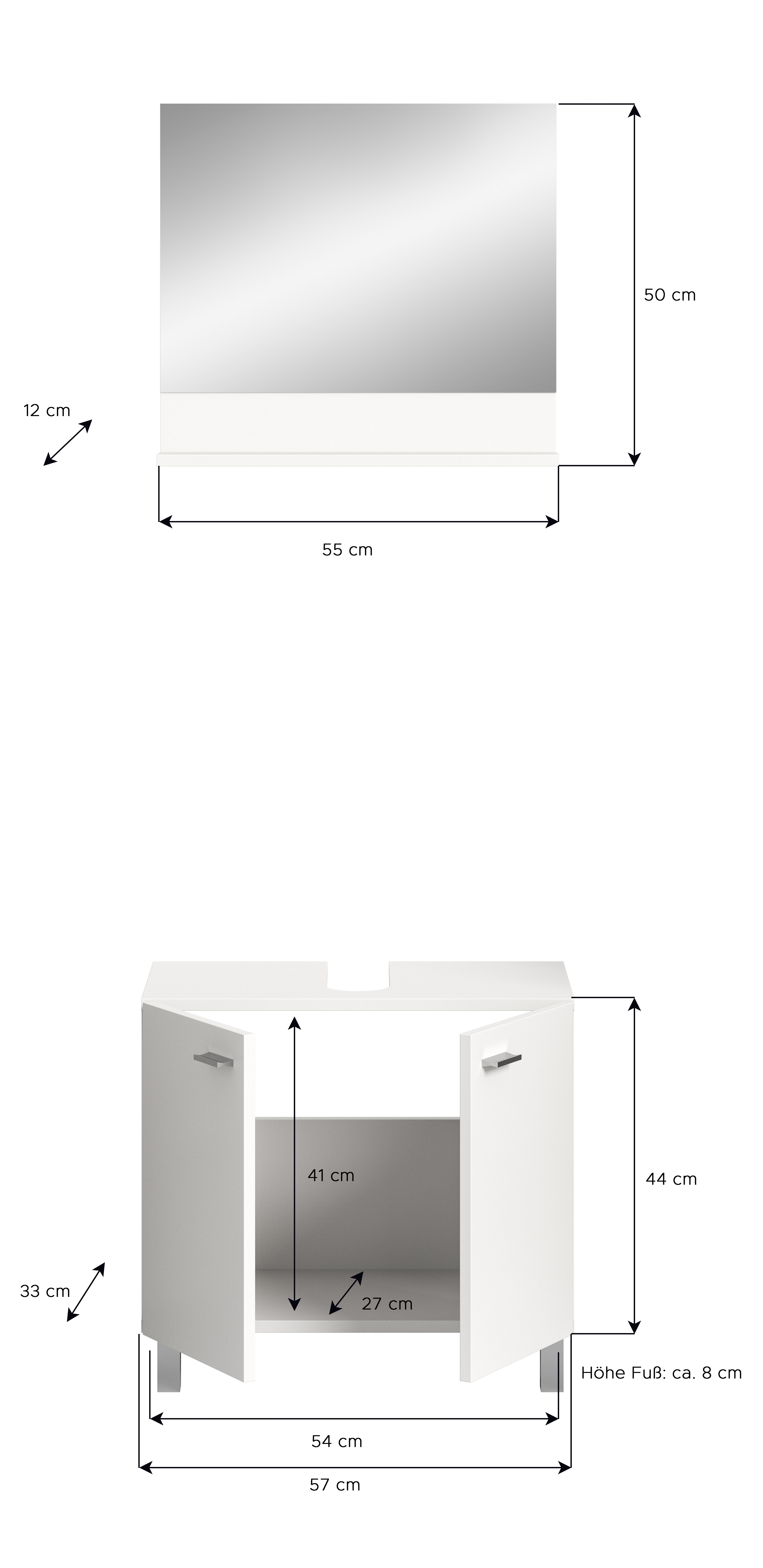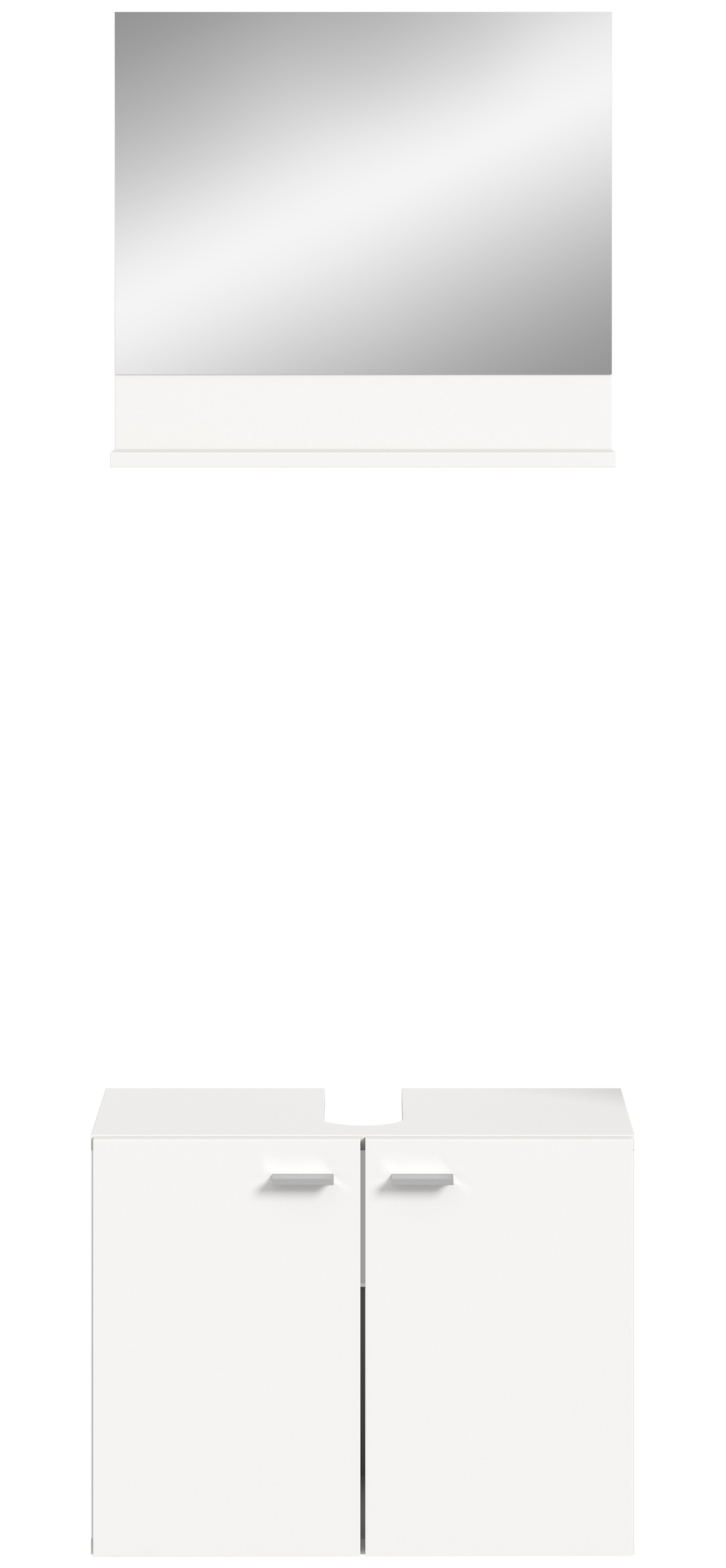 Notre meuble sous vasque polyvalent avec miroir assorti (dimensions : 57x44x33 cm) est adapté à la fois pour le montage mural et pour la pose au sol. Proposé dans un décor ton blanc élégant, cet ensemble s’intègre harmonieusement dans tout type de salle de bains et lui confère une touche moderne. Découvrez cette solution peu encombrante et conférez style et fonctionnalité à votre salle de bains .