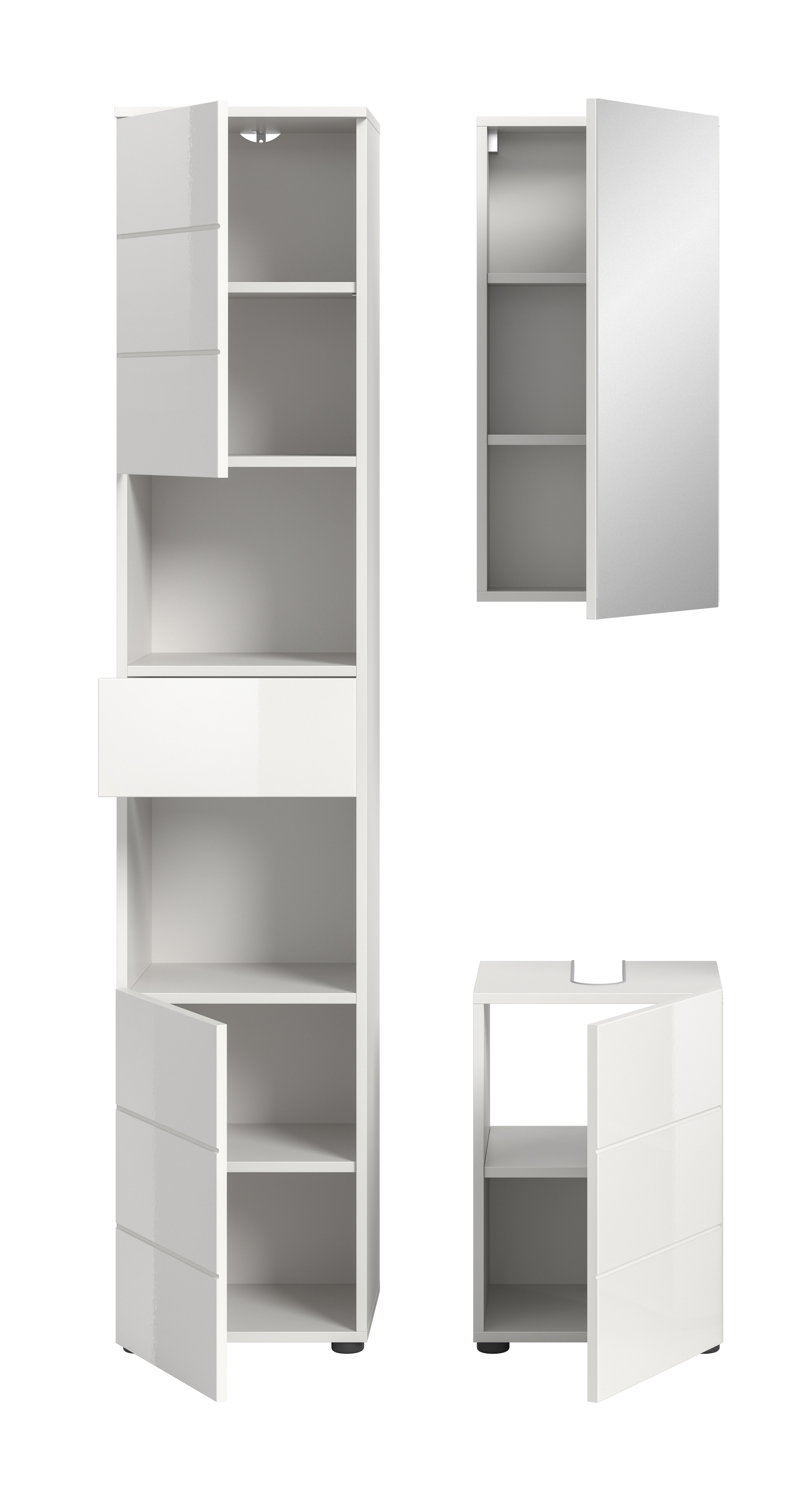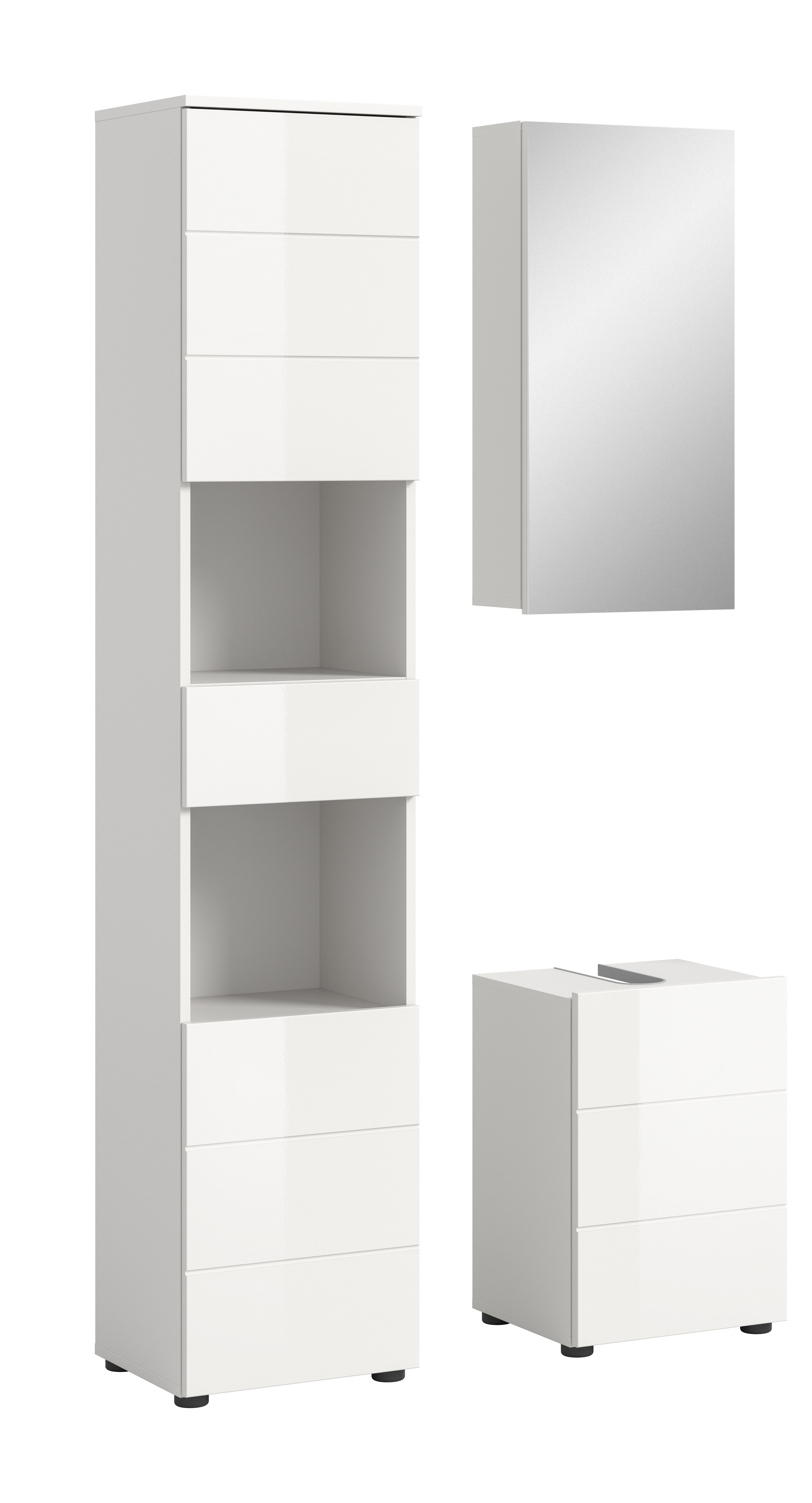 - Ensemble 3 éléments comprenant : 1 colonne de salle de bains, 1 meuble sous lavabo , 1 armoire de toilette