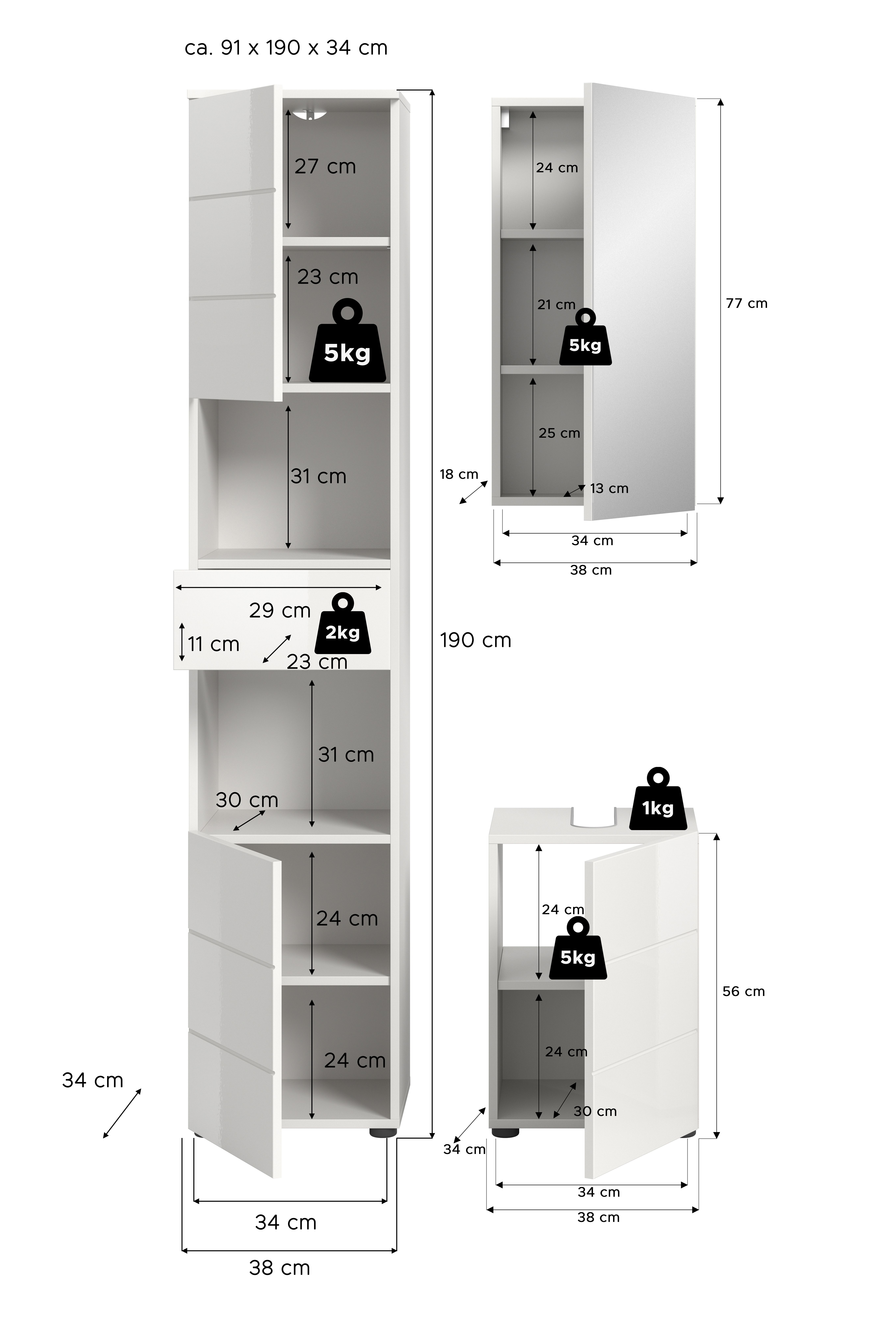| Meuble sous lavabo | 38 | 56 | 34 |
