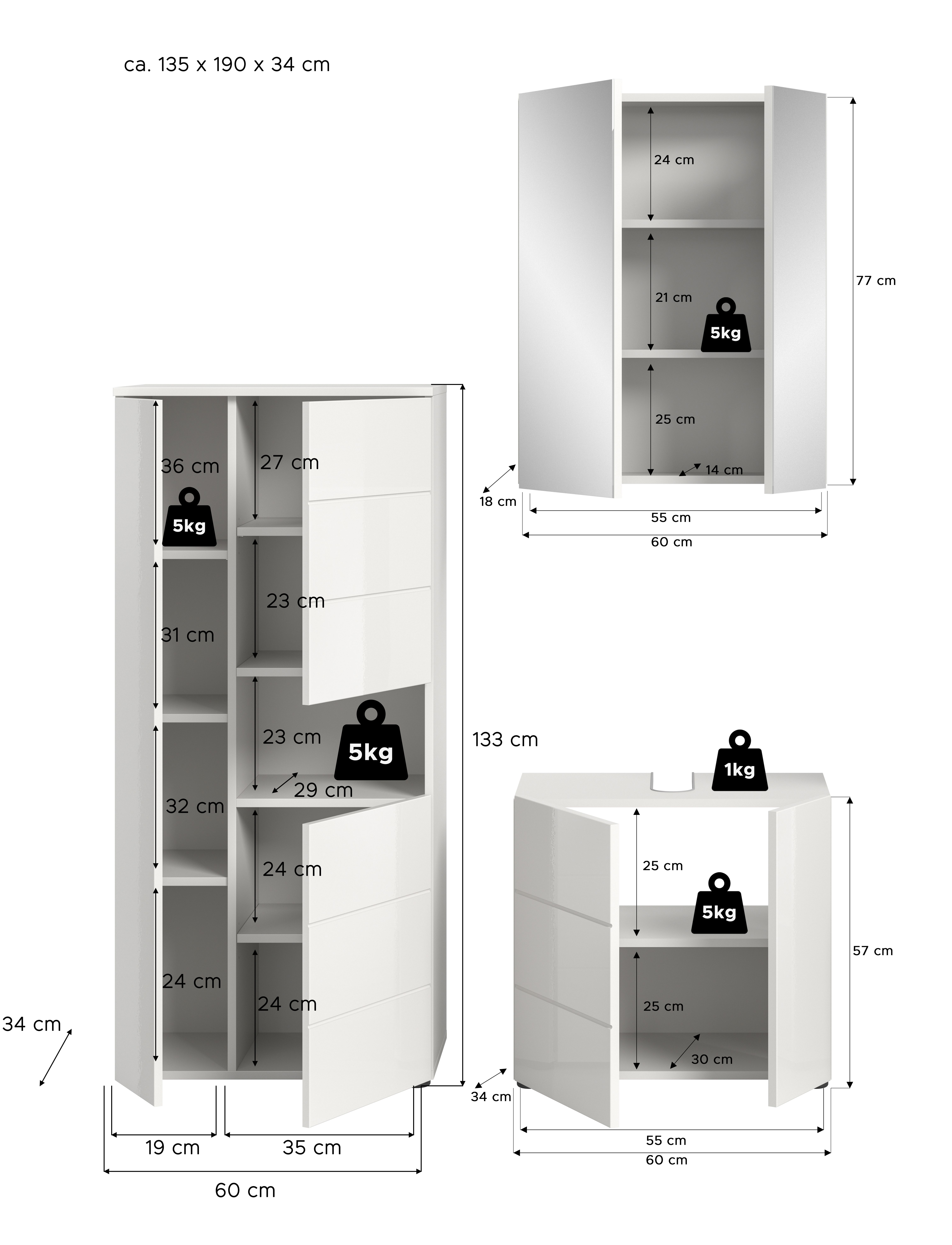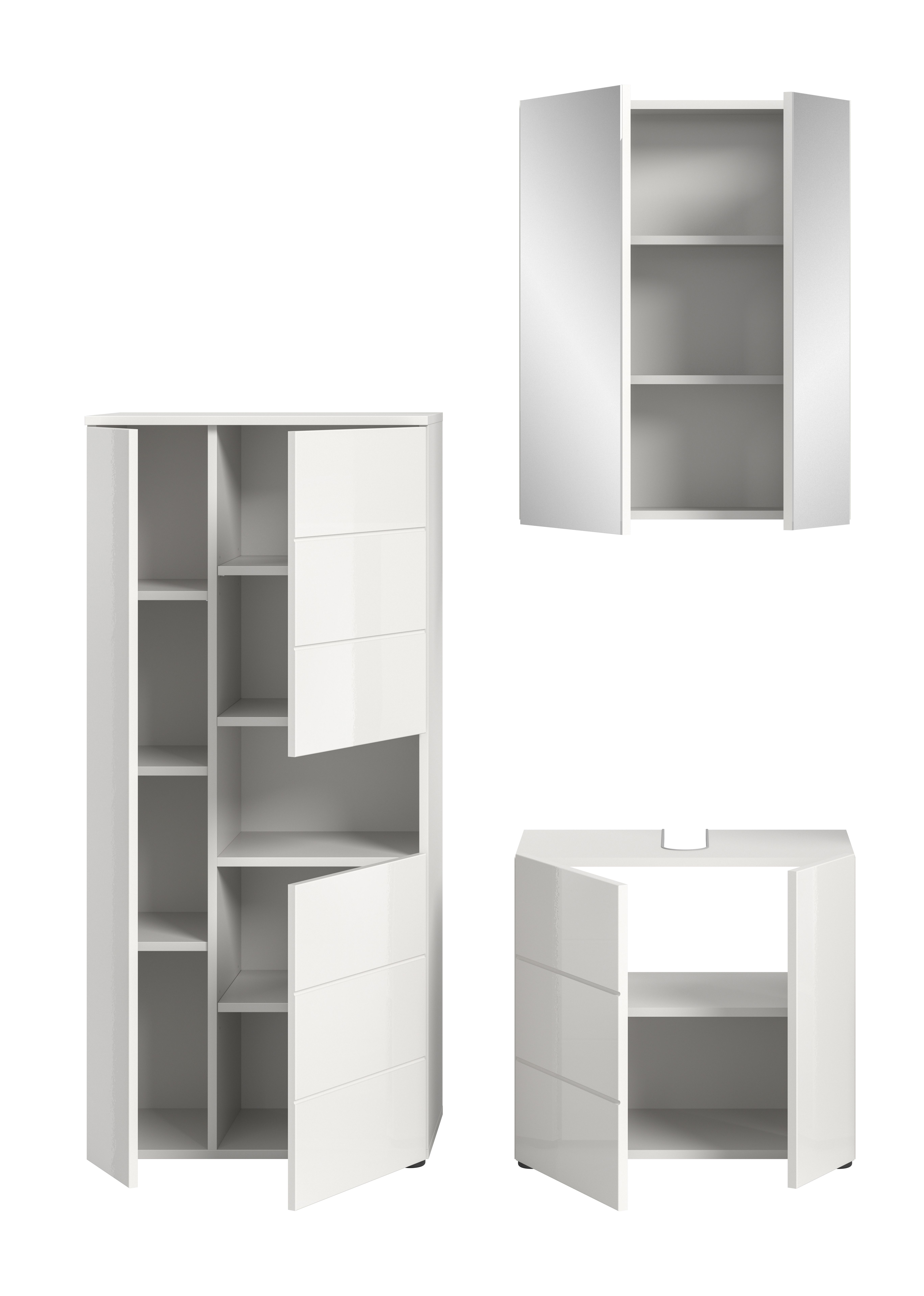 La salle de bains combinée (L/H/P : 135x190x34 cm) dans un aspect thermoformé ton blanc ultra brillant est idéale pour les salles d’eau nécessitant un espace de rangement supplémentaire ! Cet ensemble pratique comprend un meuble demi-colonne, un meuble sous lavabo et une armoire de toilette pour ranger tout le nécessaire. La surface tendance ultra brillante fera entrer la lumière et le style dans votre salle de bains, tandis que les solutions de rangement intelligentes vous permettront de faire régner l’ordre. Aménagez votre salle de bains de façon pratique et élégante avec cet ensemble haut de gamme !