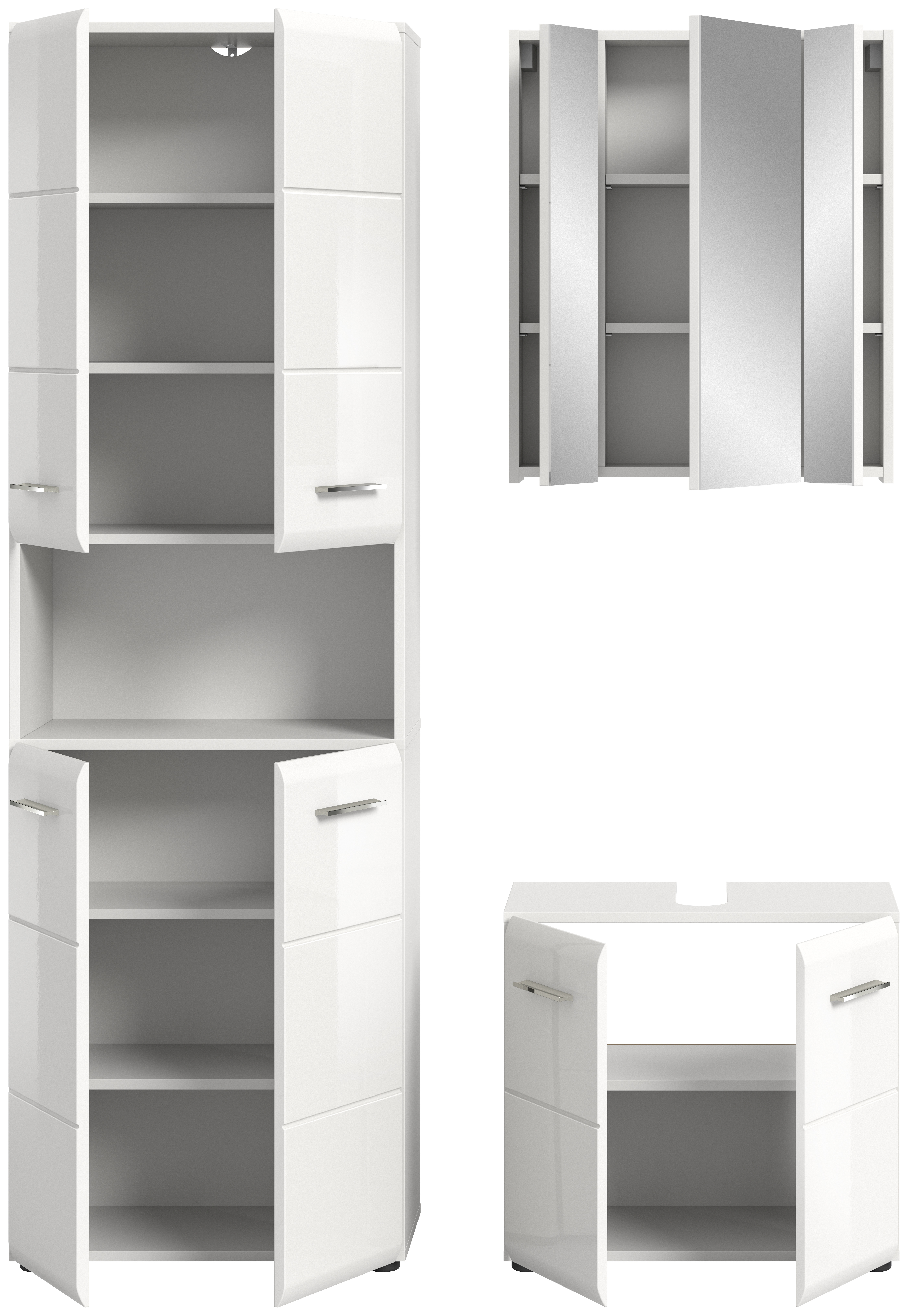 - Fonctionnalité : ensemble constitué d’un meuble sous lavabo, d’une armoire de toilette et d’un meuble colonne pour une solution de rangement complète sur un faible encombrement dans la salle de bains.
