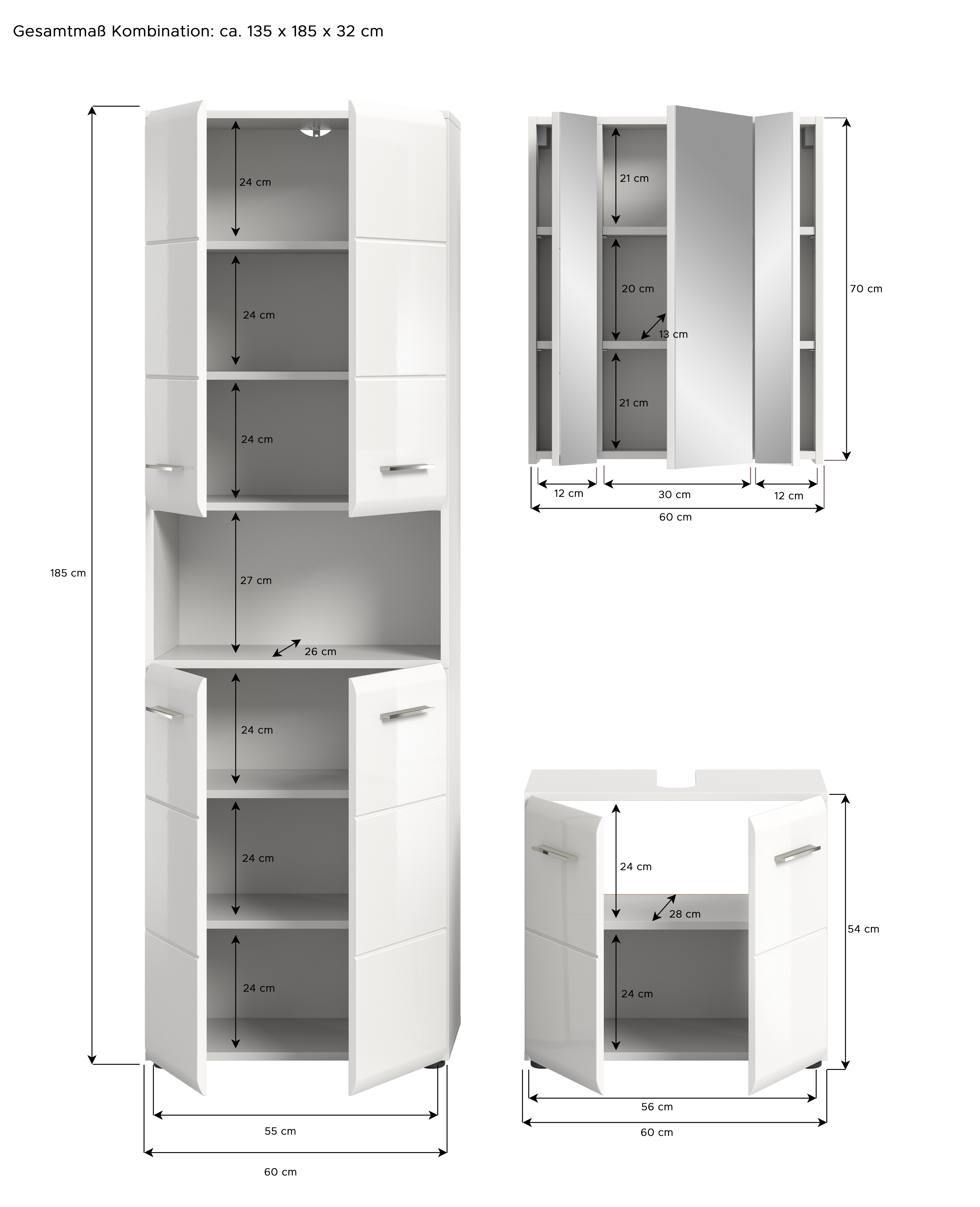 - Utilisation : l’ensemble est parfaitement adapté comme salle de bains complète pour optimiser l’espace de rangement et la fonctionnalité dans un espace réduit.