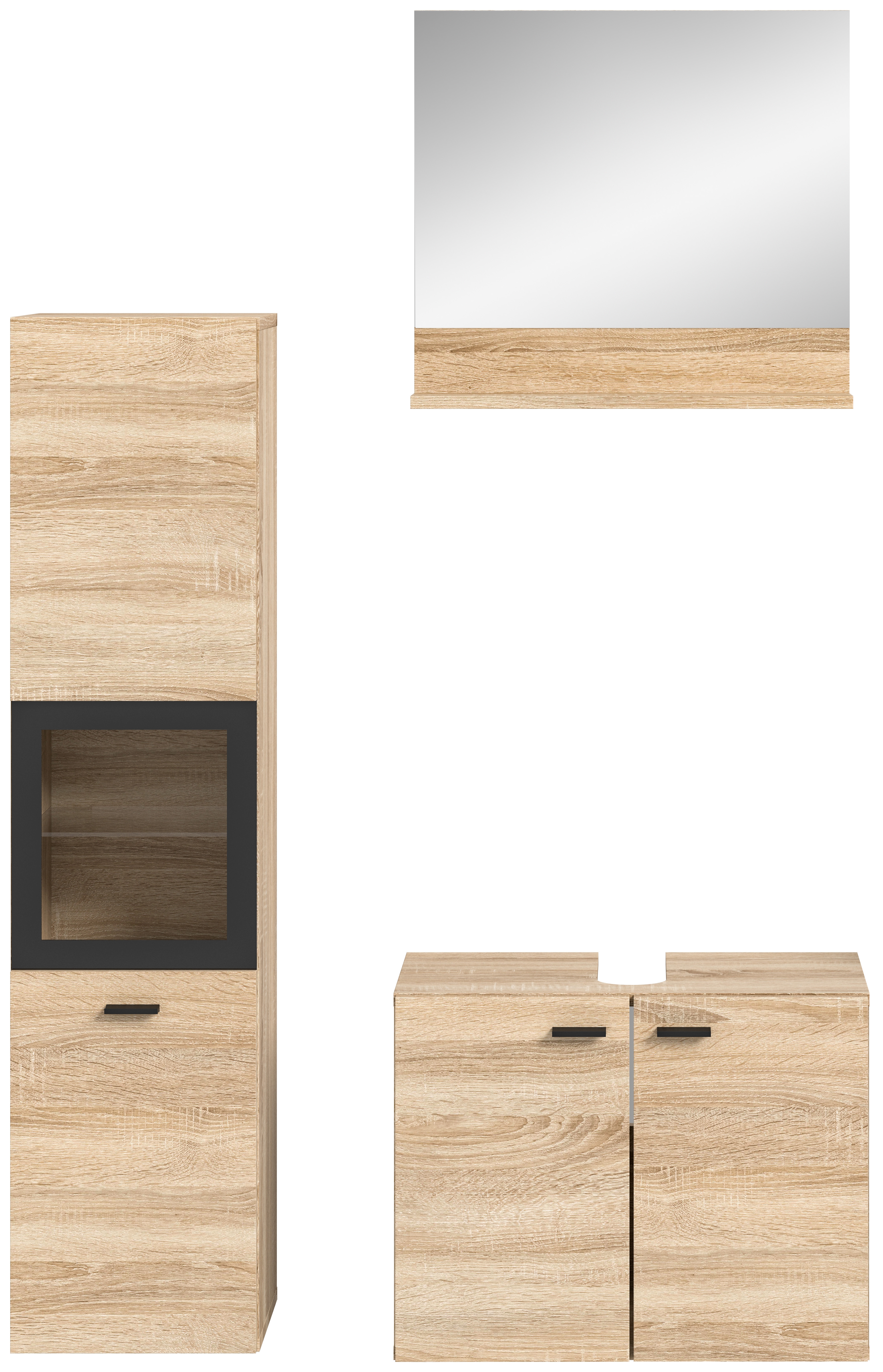 Notre salle de bains combinée décor chêne Sonoma offre une flexibilité maximale pour aménager votre salle de bains selon vos souhaits individuels. Le design intemporel s’intègre harmonieusement dans tout type de salle de bains et lui confère une ambiance naturelle et chaleureuse. Découvrez dès maintenant cette solution polyvalente pour votre salle de bains.