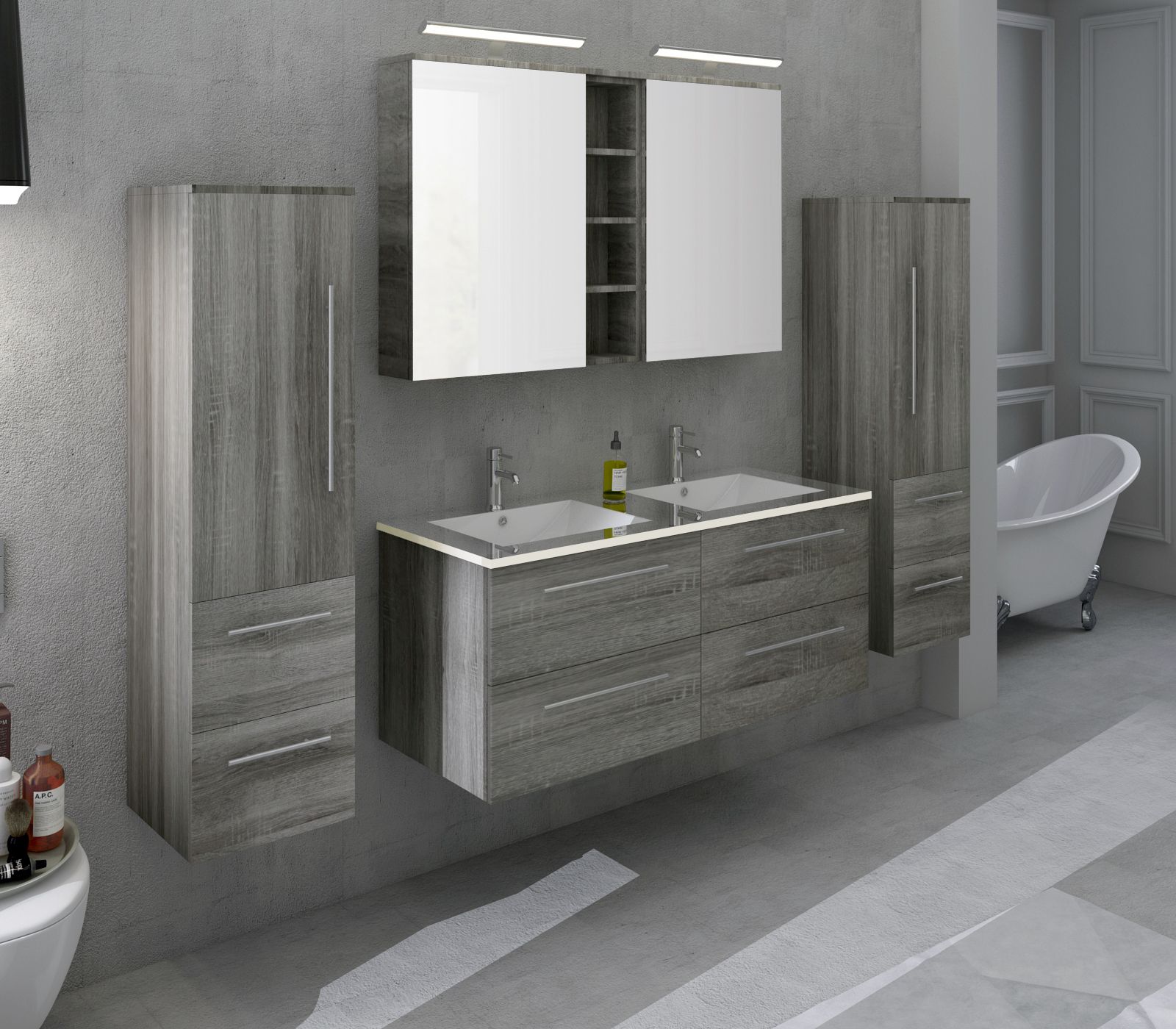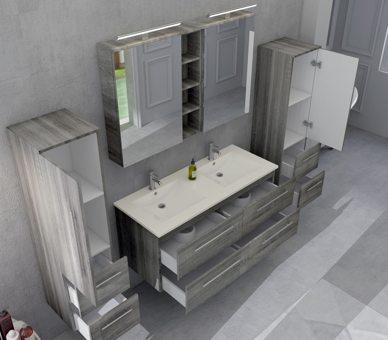 1 meuble sous vasque avec 4 tiroirs et 1 plan double vasque
