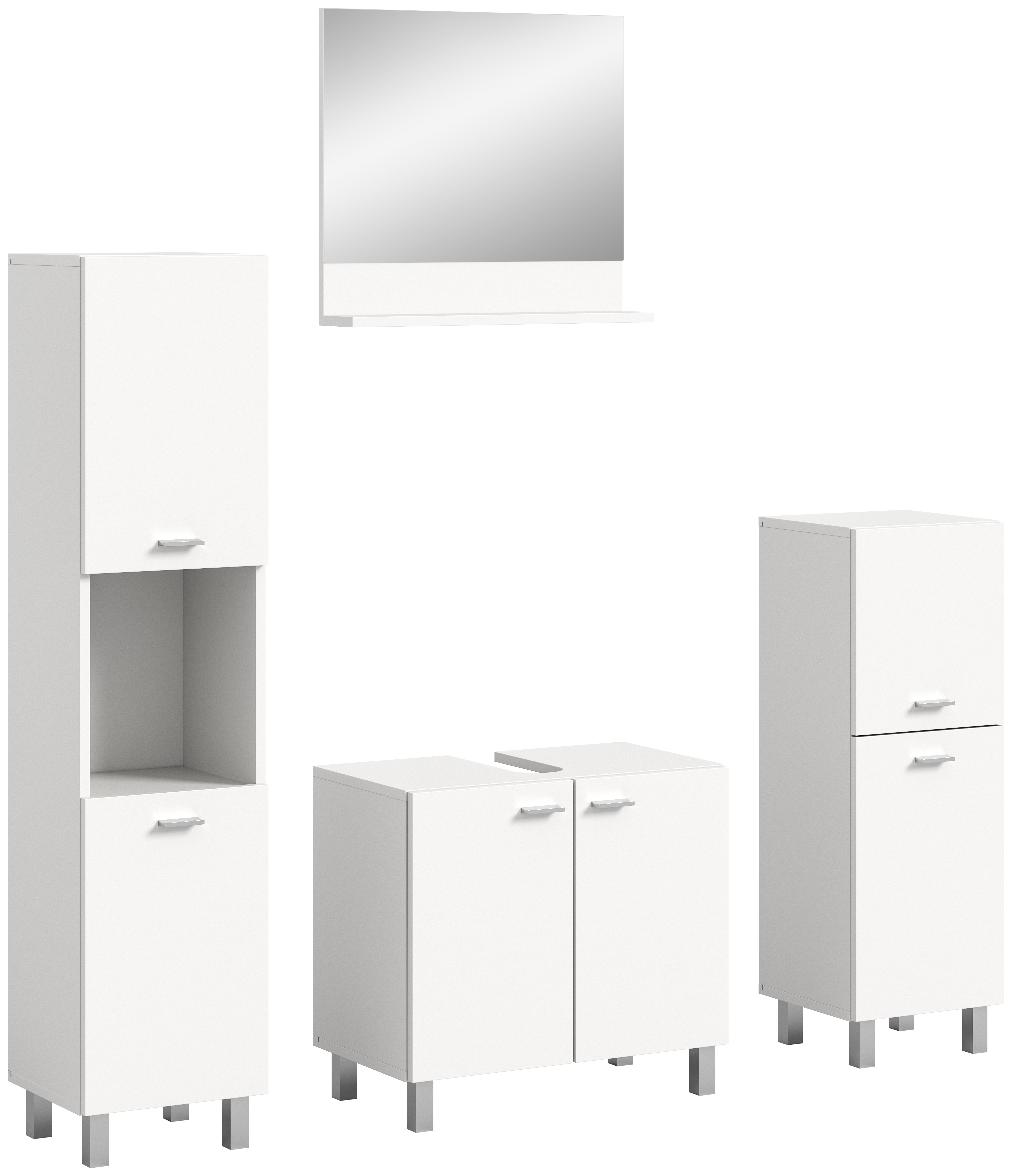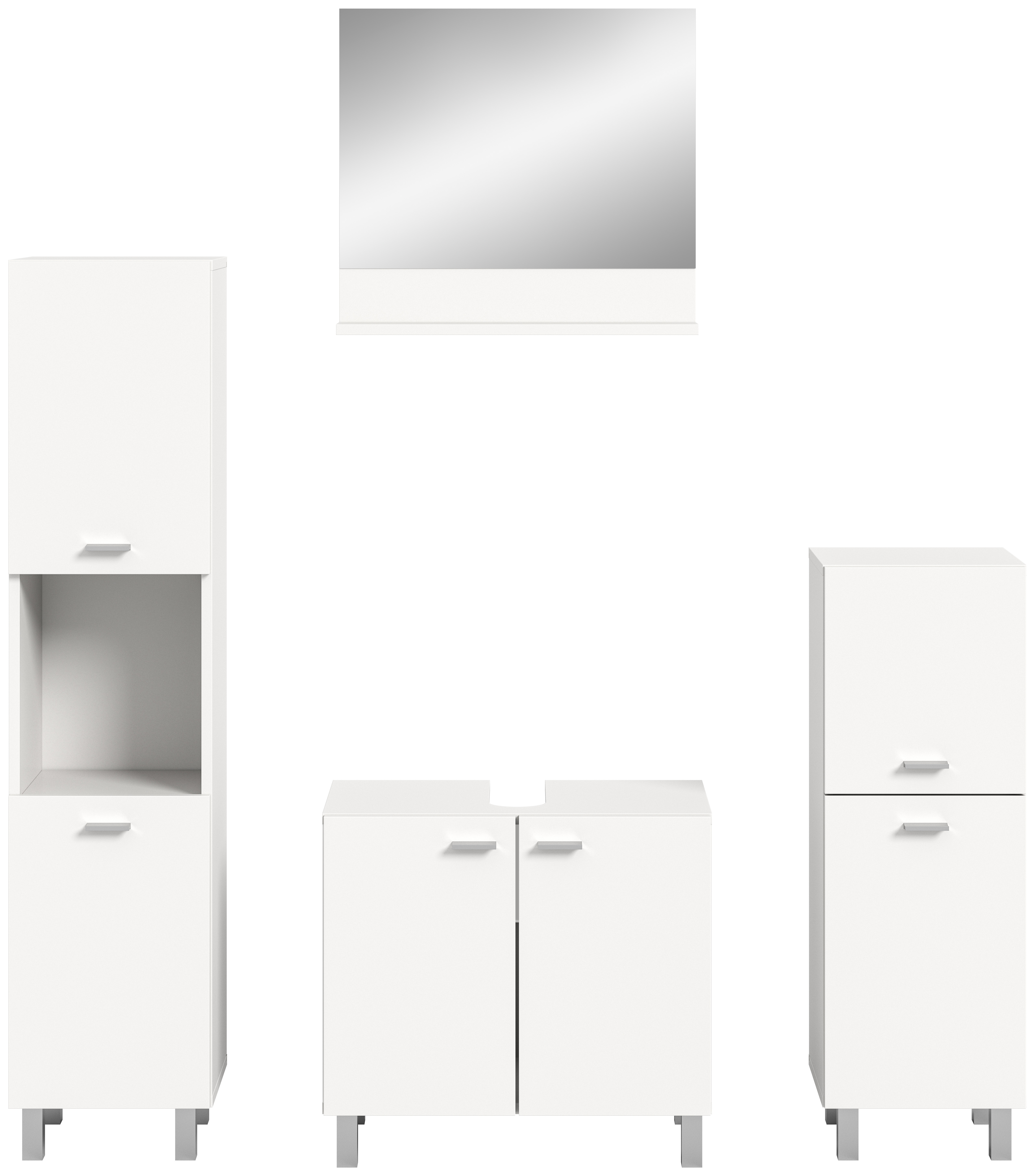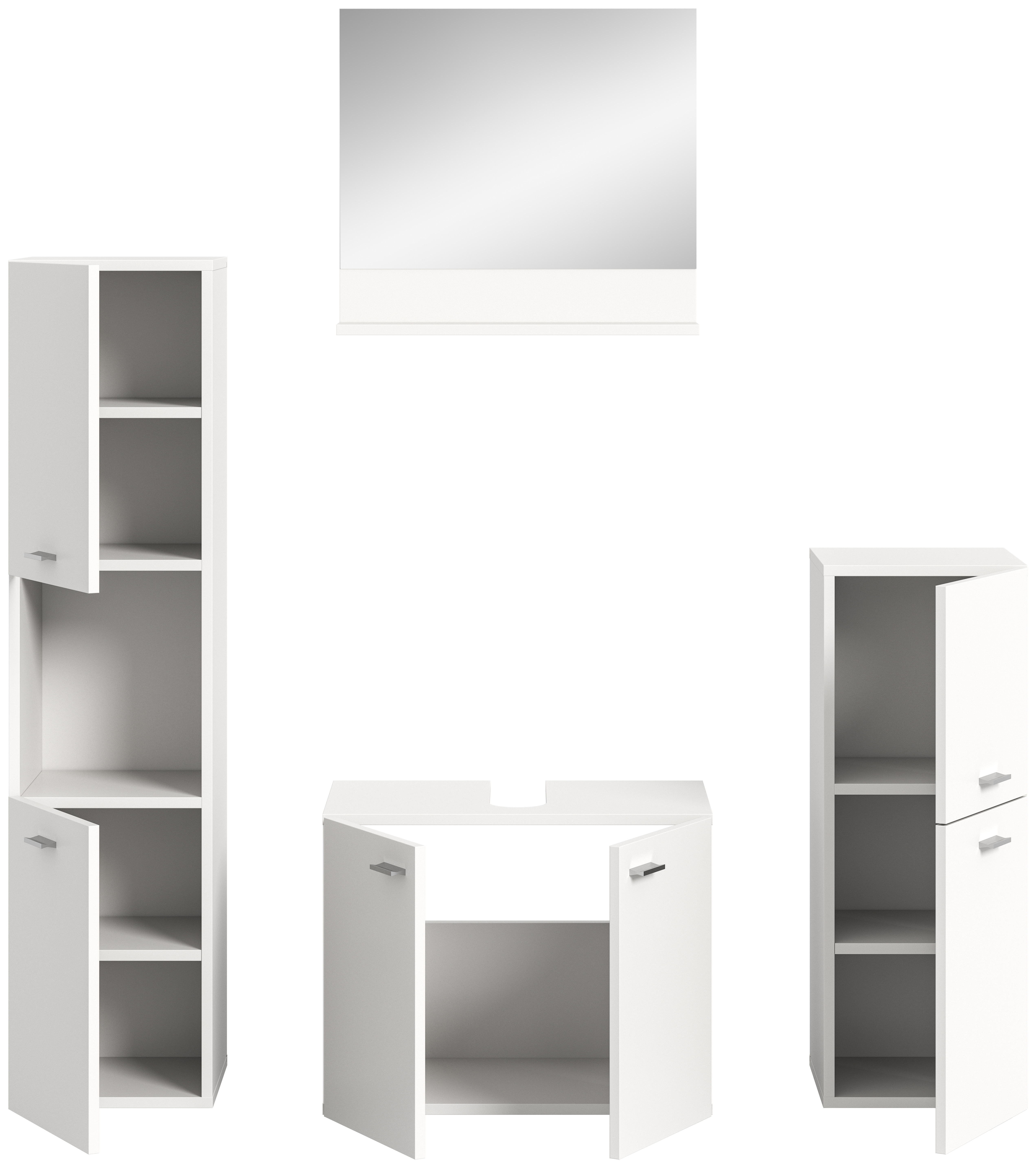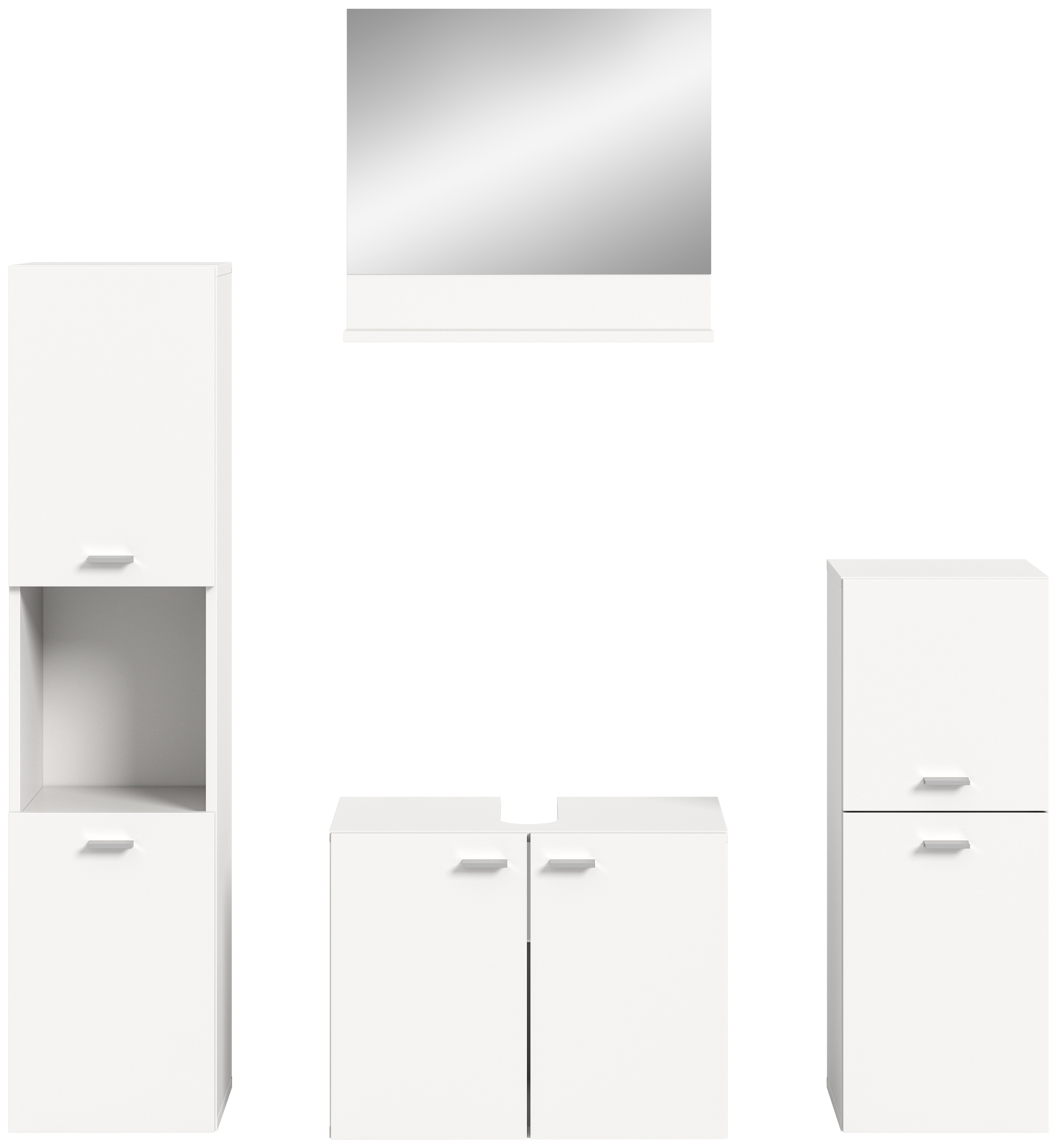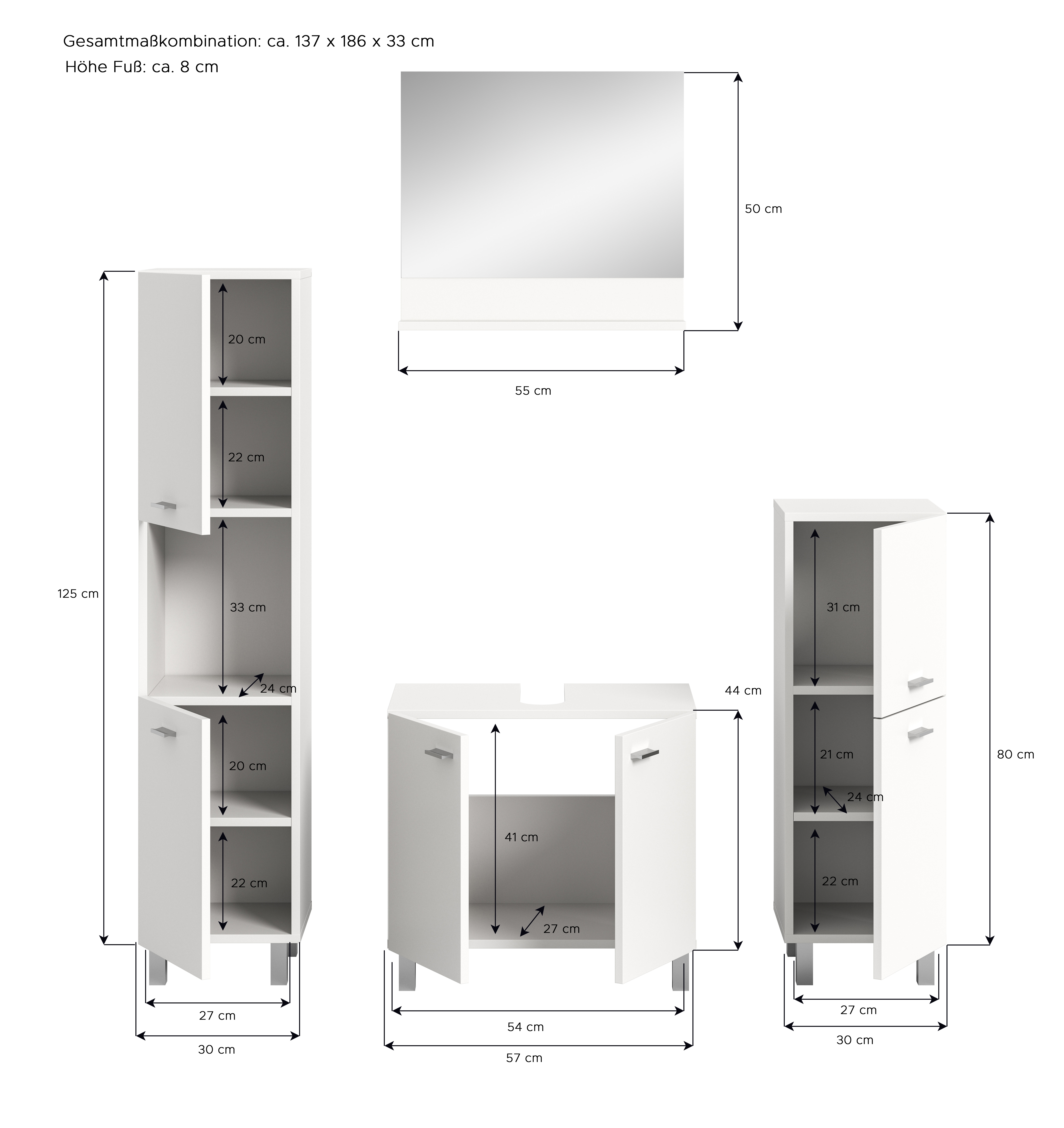 - Fonctionnalité : vaste espace de rangement avec différentes armoires et divers casiers pour le stockage organisé des accessoires de bain, serviettes et produits de soins ; cet ensemble permet également d’aménager joliment la salle de bains.