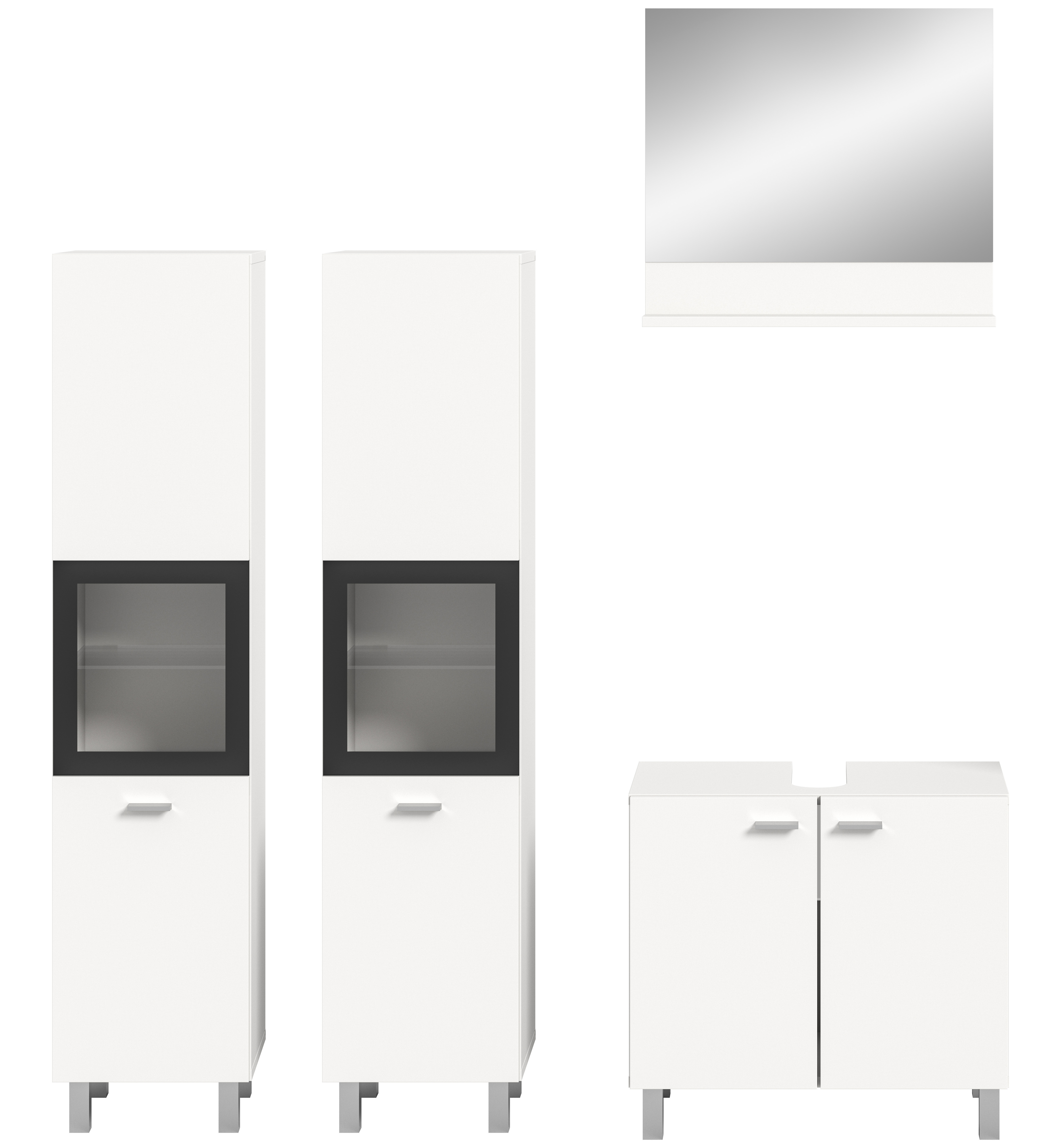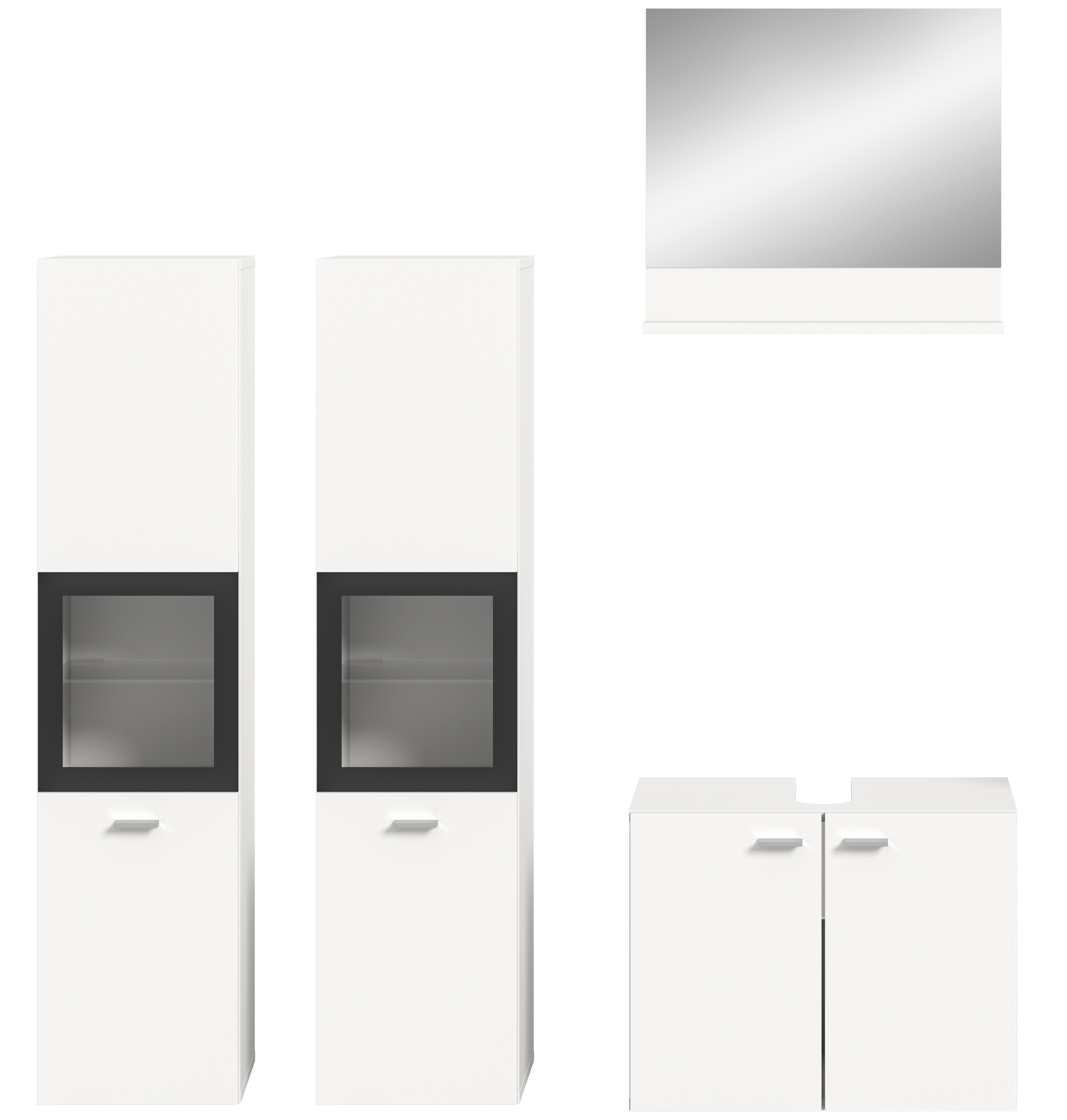 • Fonctionnalité : vaste espace de rangement avec différentes armoires et divers casiers pour le stockage organisé des accessoires de bain, serviettes et produits de soins ; cet ensemble permet également d’aménager joliment la salle de bains.