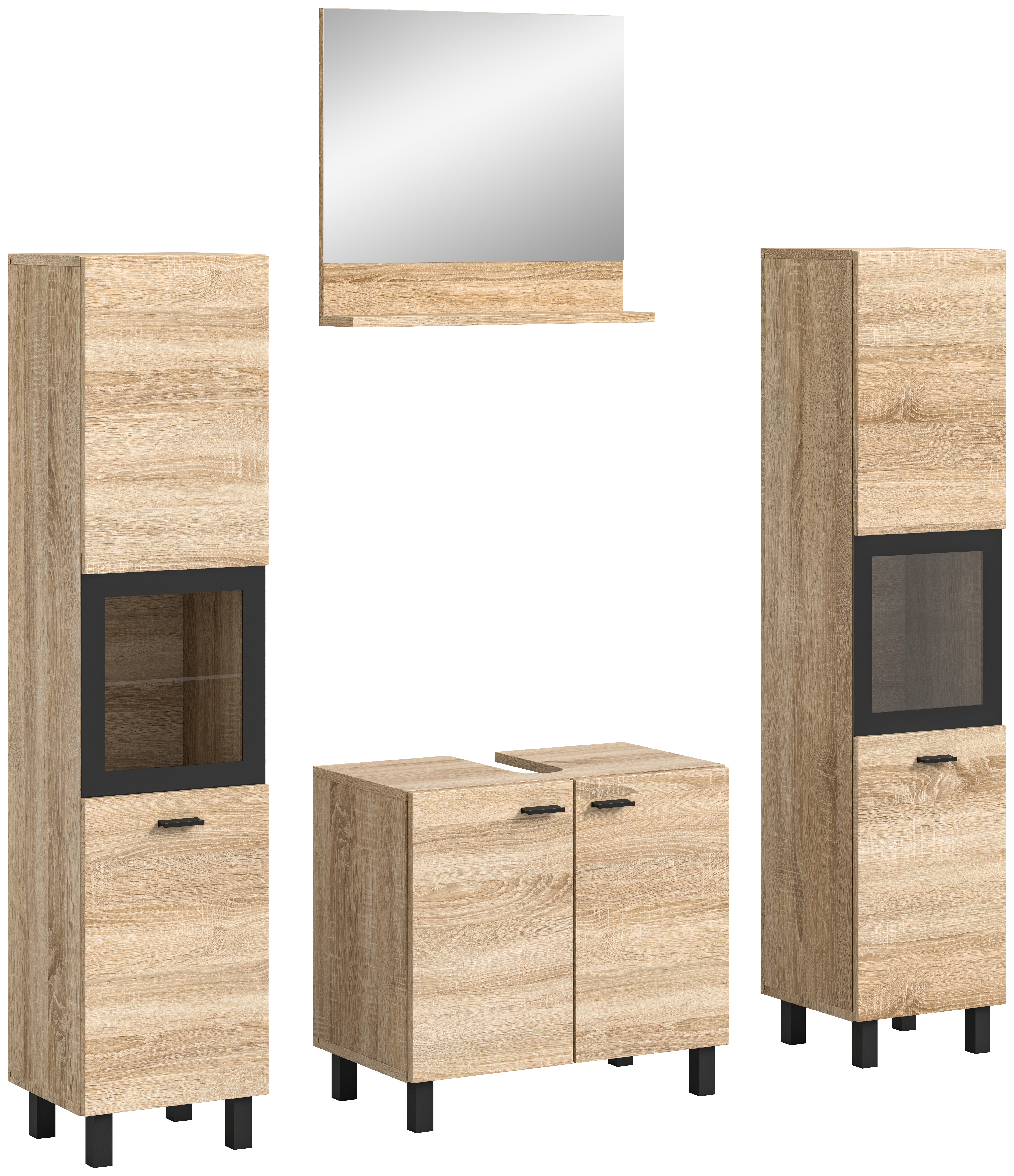 Notre salle de bains combinée décor chêne Sonoma offre une flexibilité maximale pour aménager votre salle de bains selon vos souhaits individuels. Le design intemporel s’intègre harmonieusement dans tout type de salle de bains et lui confère une ambiance naturelle et chaleureuse. Découvrez dès maintenant cette solution polyvalente pour votre salle de bains.