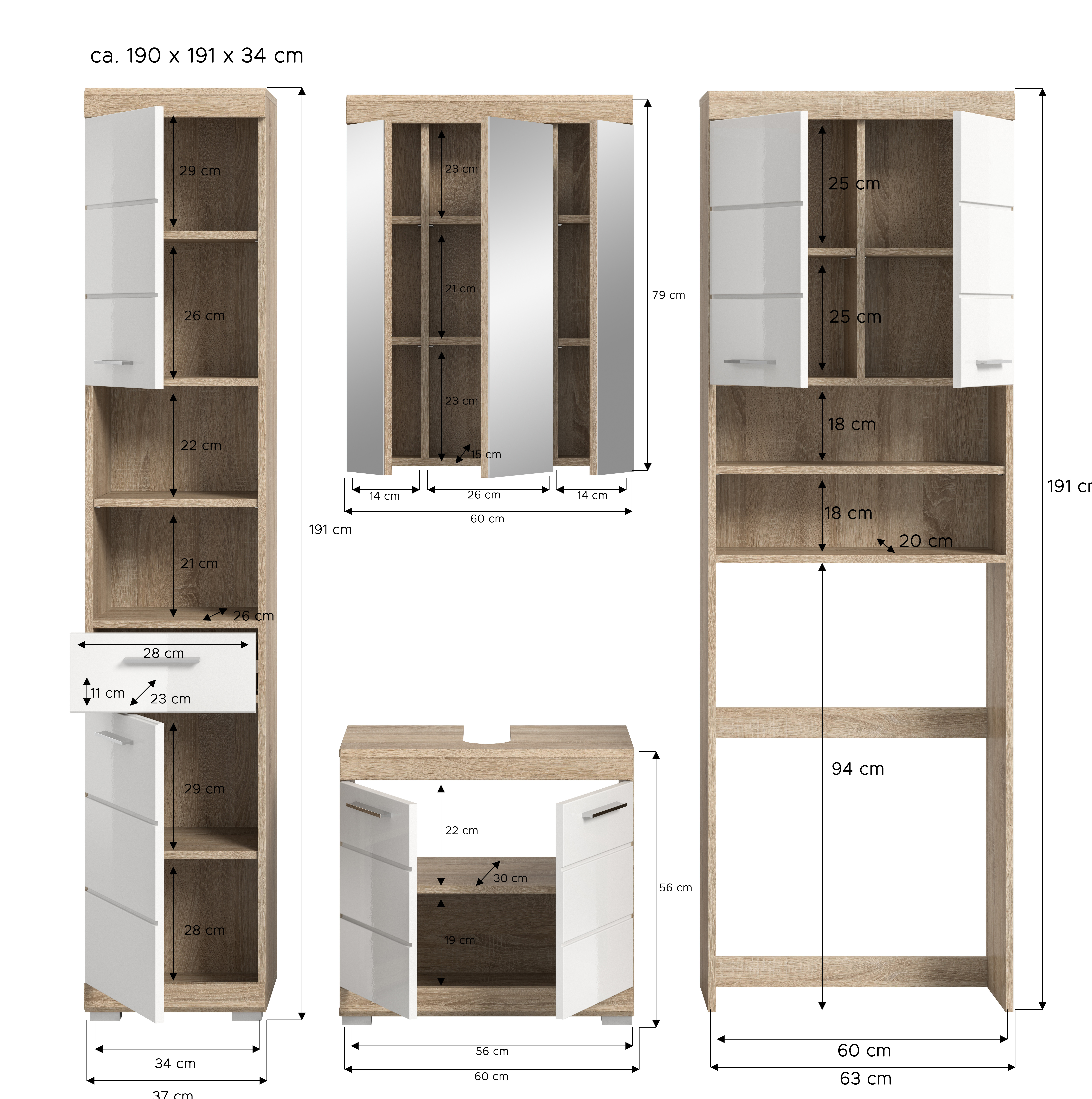 • Design/style : la combinaison du décor chêne Sonoma clair et de la finition thermoformée ton blanc ultra brillant crée une apparence moderne et attrayante dans la salle de bains ou la buanderie.