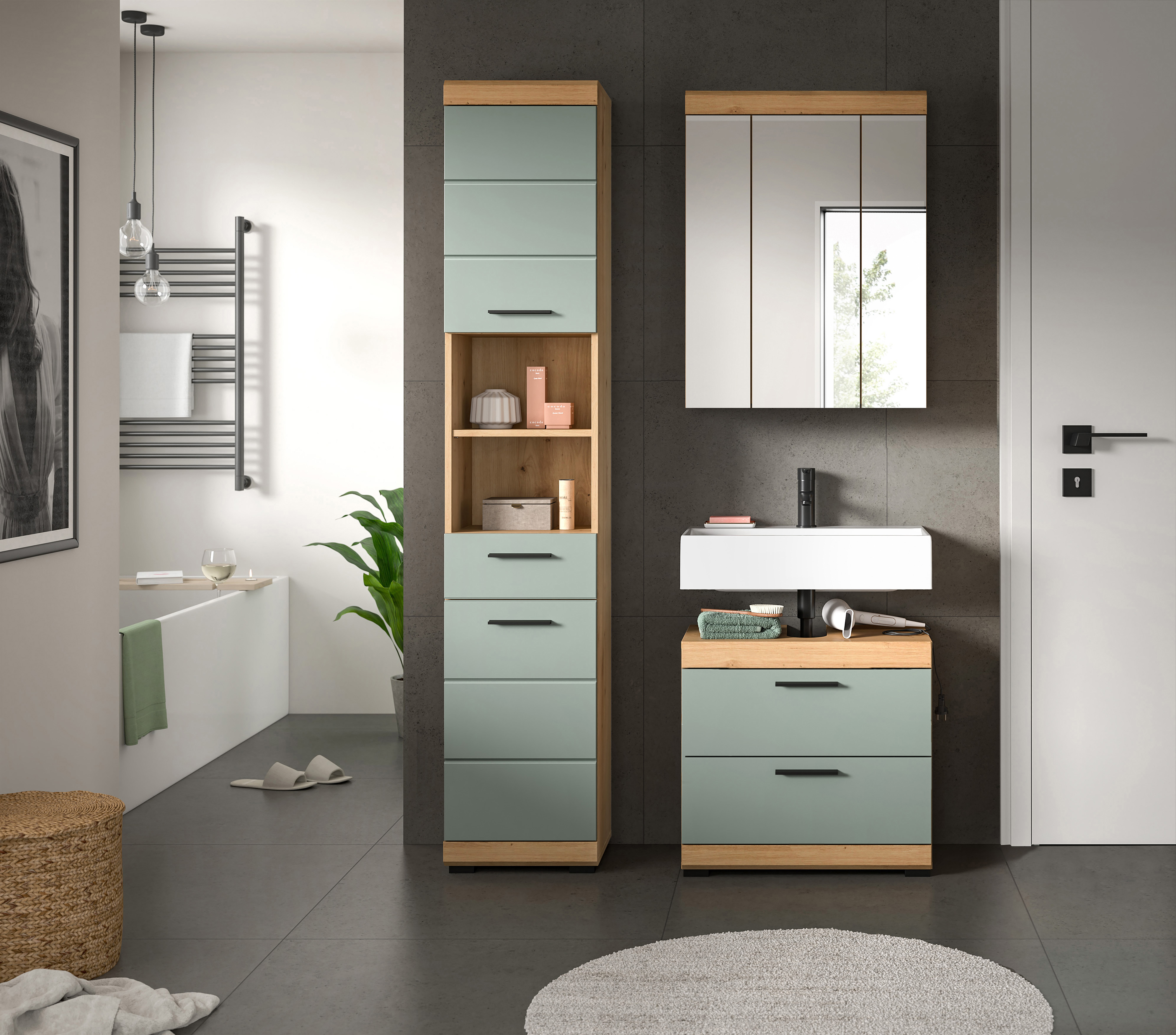 Apportez la touche ultime à votre salle de bains grâce à notre ensemble combiné tendance ton sauge et décor chêne Artisan. Avec son design tendance et sa finition de qualité, cet ensemble conférera un look moderne à votre intérieur. Découvrez dès maintenant l’association parfaite entre esthétique ultra cool et aspect pratique pour votre salle de bains !