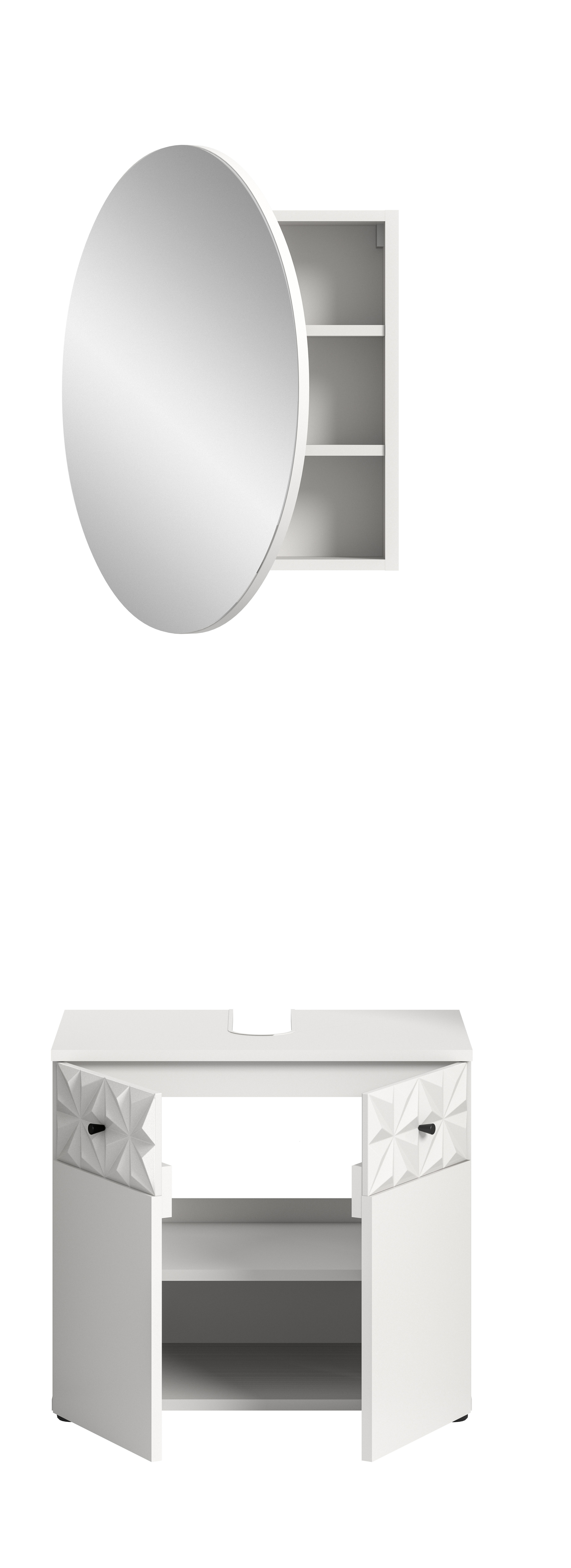 • Design/style : la façade moderne en mélaminé blanc crée un rendu lumineux et intemporel qui rend la salle de bains accueillante et agréable. Les poignées en métal noir apportent une touche élégante et contrastée.