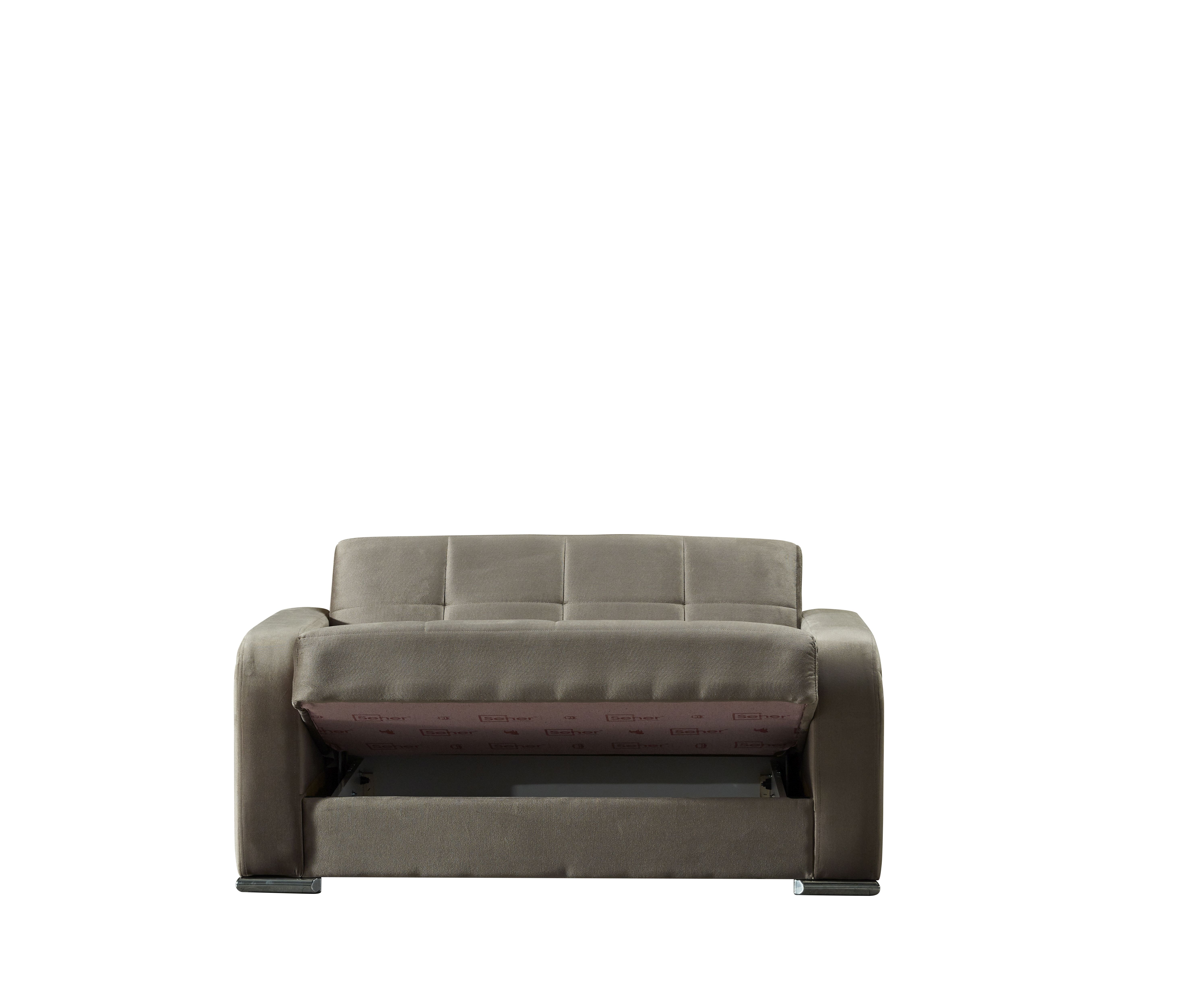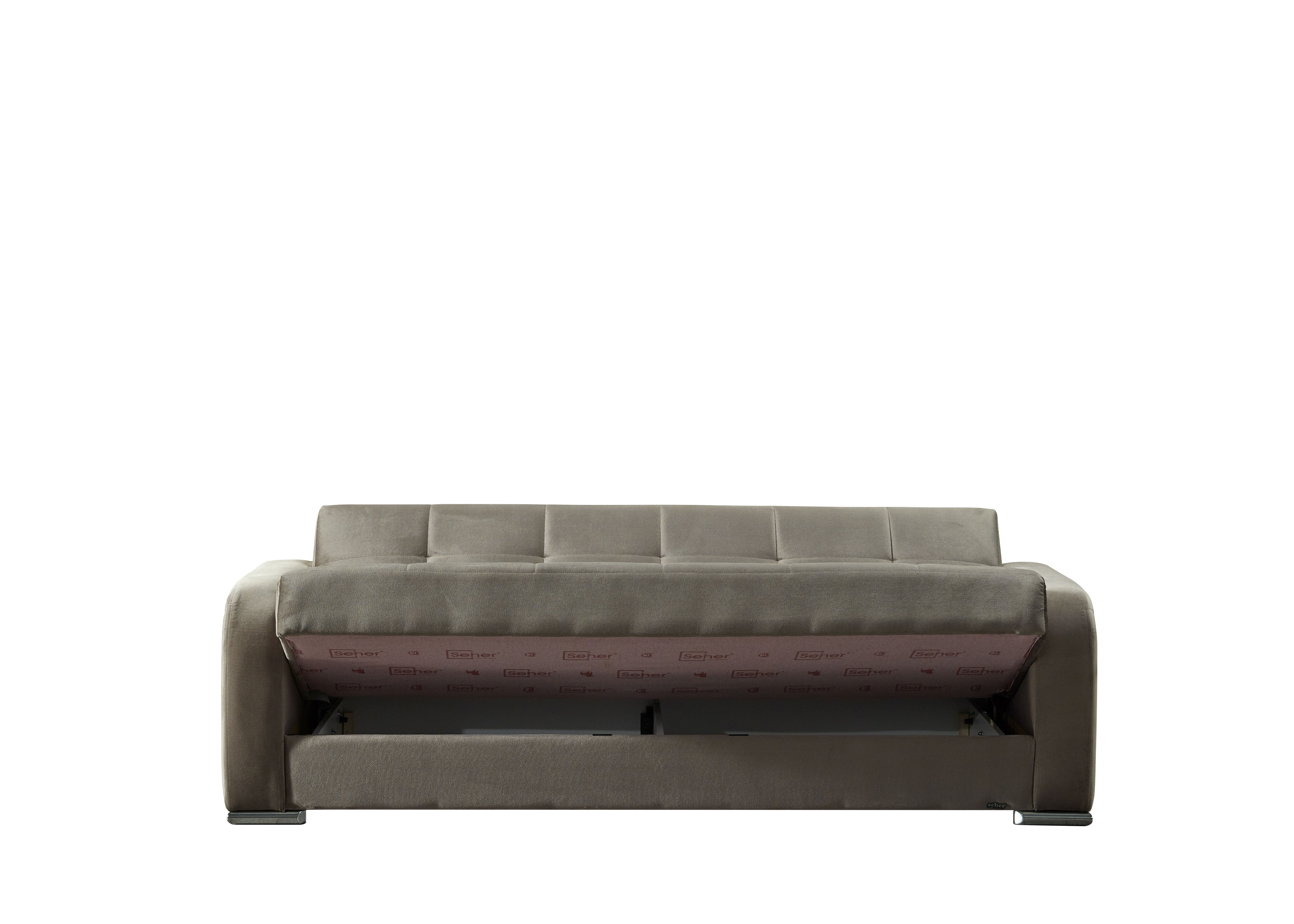 1 canapé 3 places avec coffre de lit et 2 coussins décoratifs