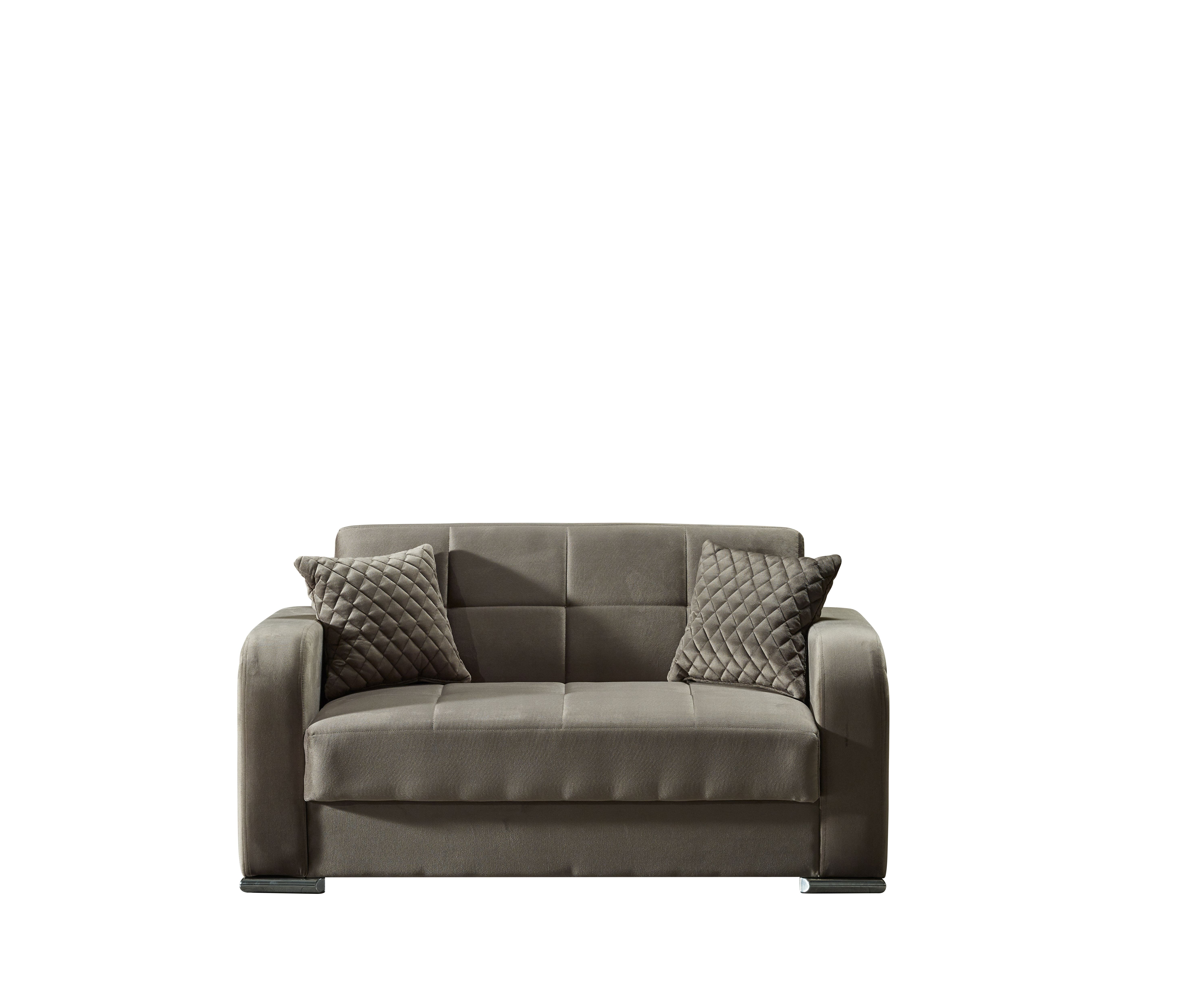 1 canapé 2 places avec coffre de lit et 2 coussins décoratifs