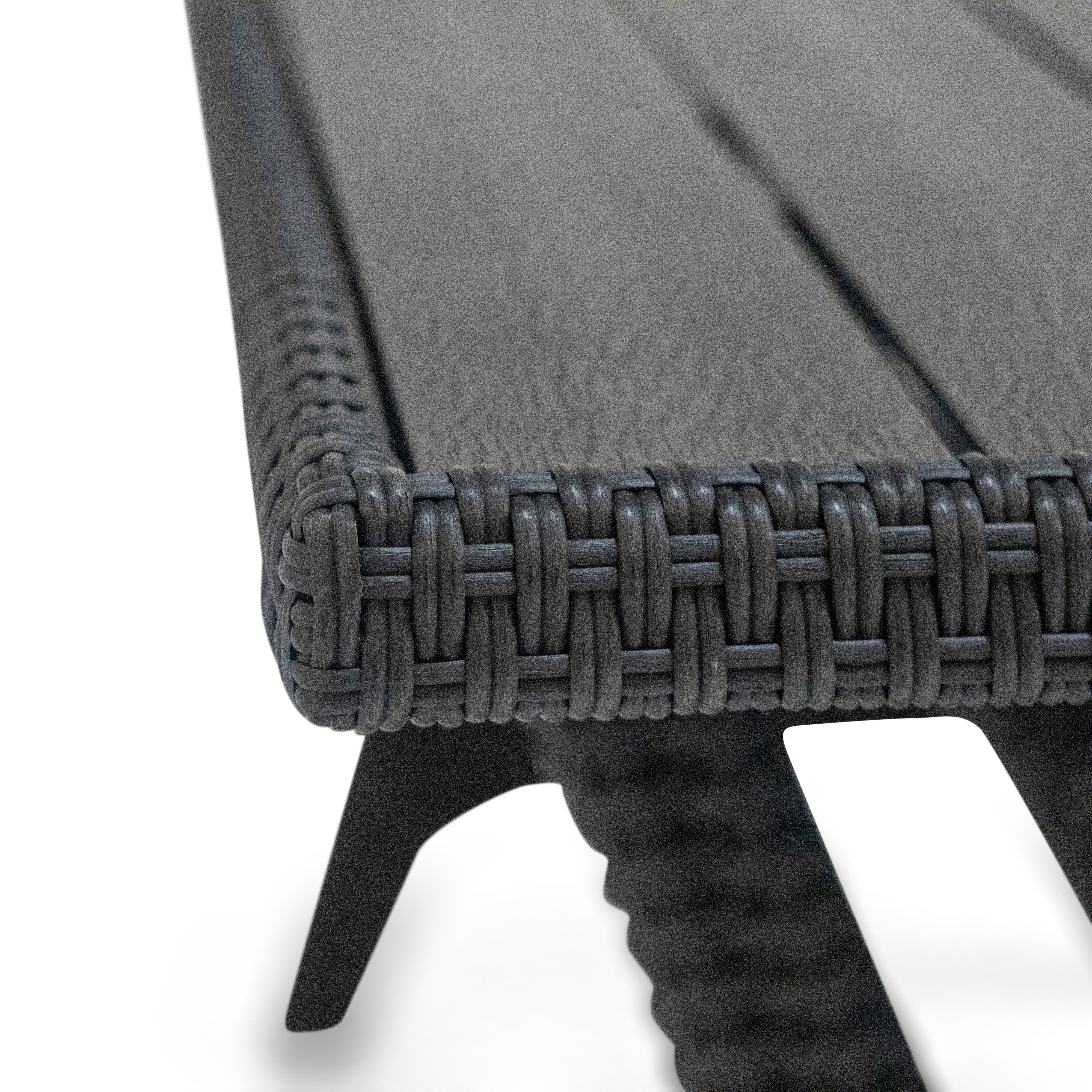 Piètement : acier finition époxy / résine tressée polywicker (100% polyéthylène) ton anthracite