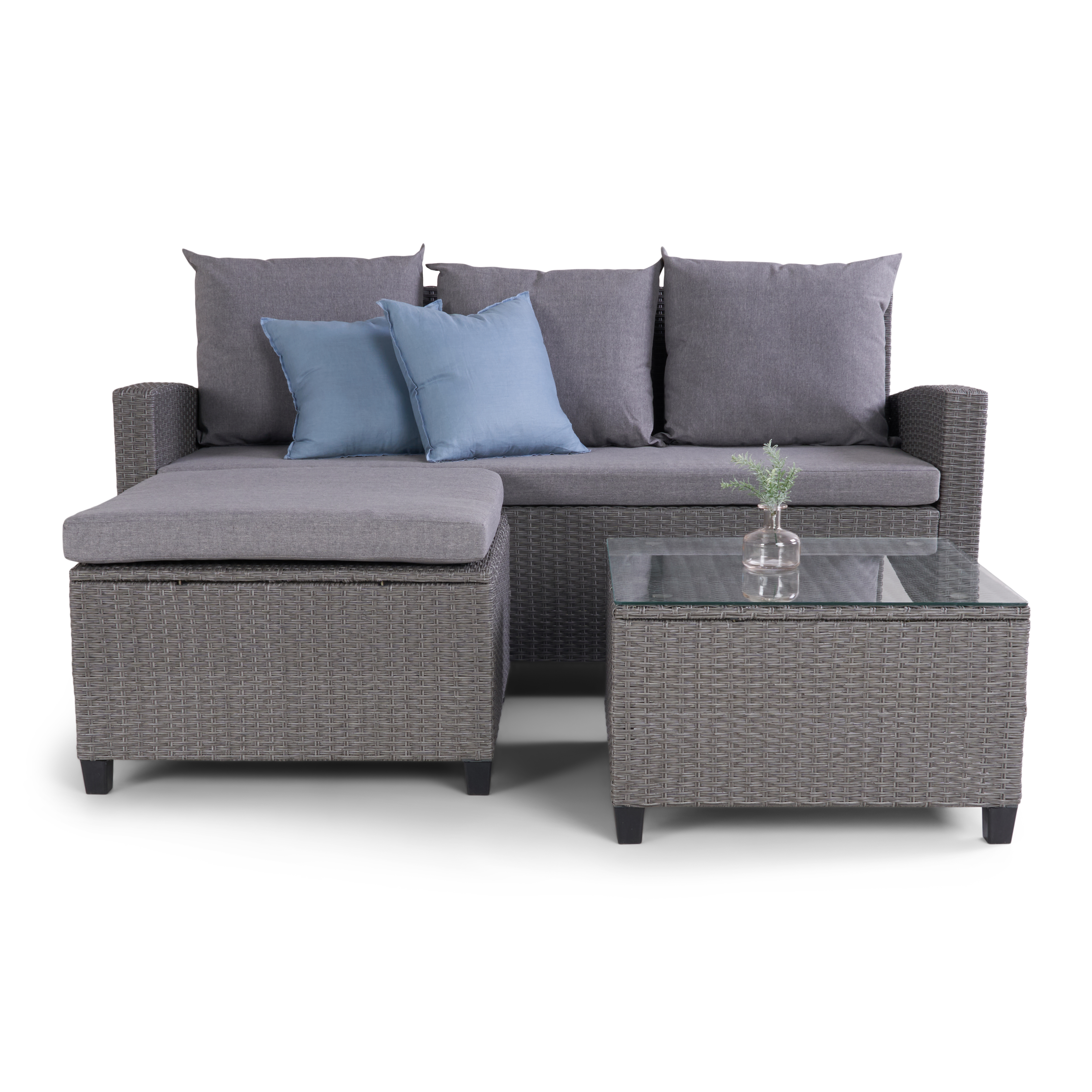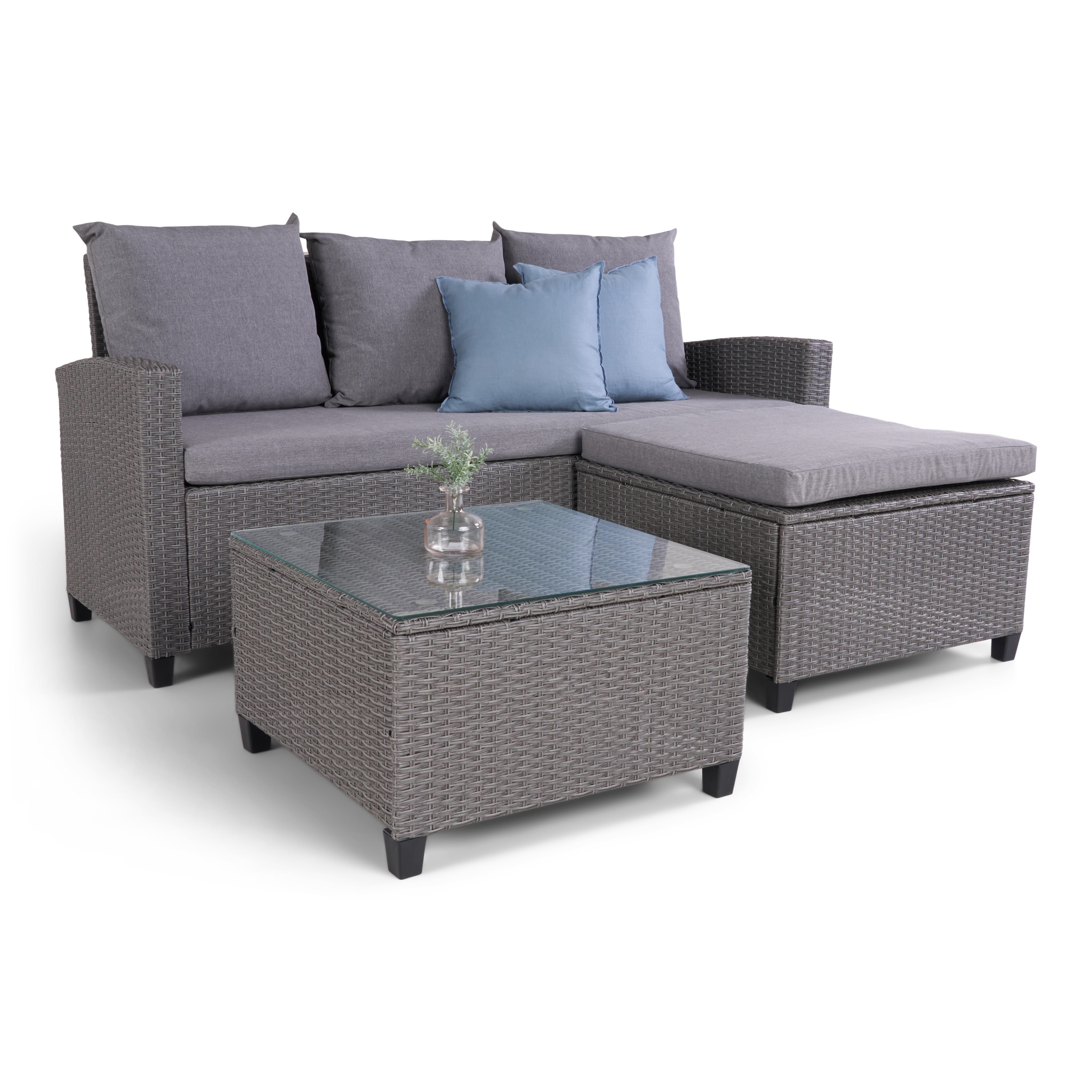 Caisson : polyrotin ton gris clair (matière synthétique tressée à base de polyéthylène)
