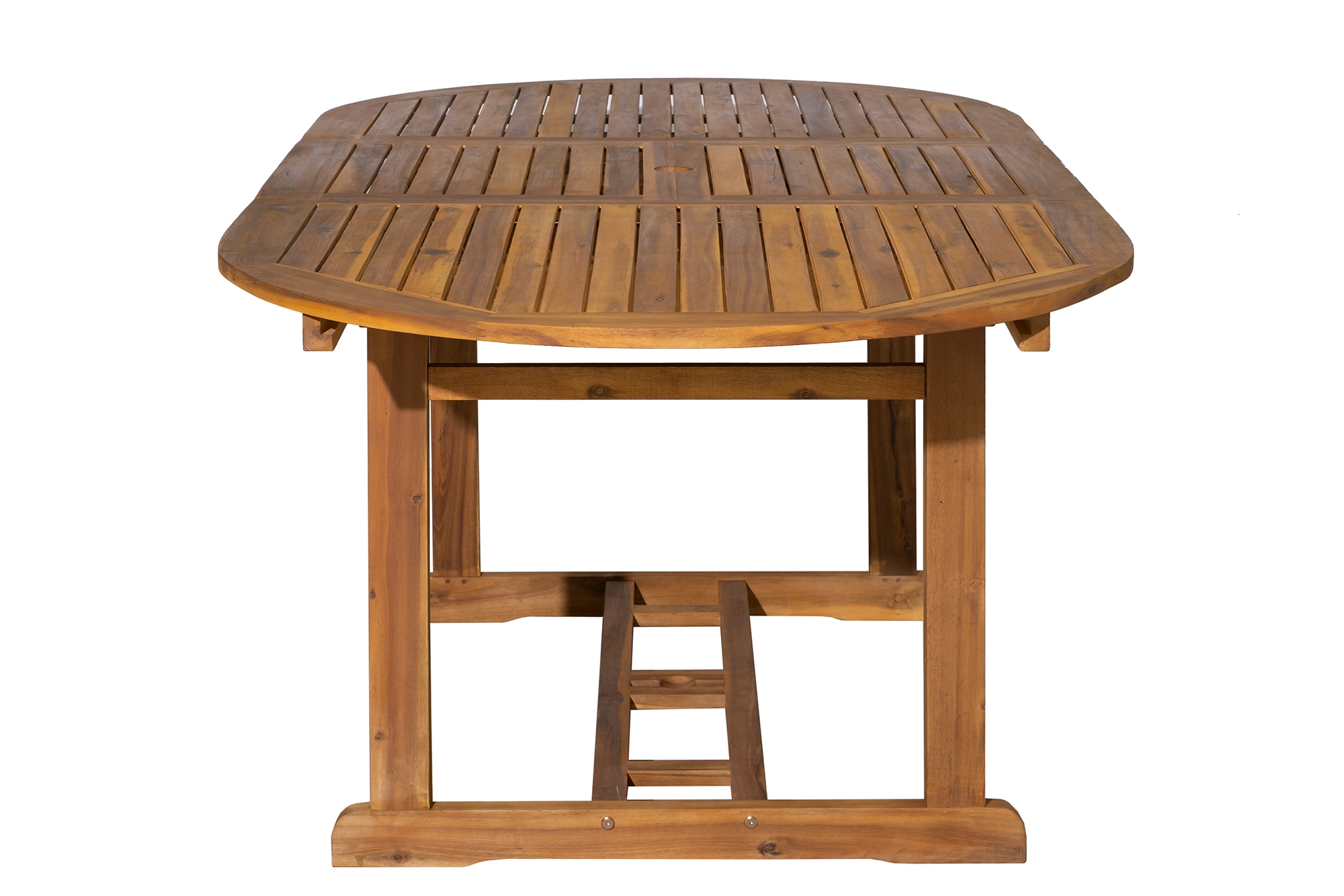 Ce salon de jardin 5 éléments attirera tous les regards dans votre espace extérieur. Fabriqués en bois d'acacia durable et résistant aux intempéries, les meubles sont parfaitement adaptés à une utilisation en extérieur. Le bois est déjà huilé, pour une finition particulièrement esthétique. La table peut être agrandie jusqu'à 200 cm : ainsi, plus rien ne s'oppose aux réunions conviviales en plein air. Dossier réglable sur 5 positions pour un confort d'assise optimal. Le bois d'acacia est un produit naturel qui séduit par l'élégance de son veinage et sa coloration particulière. Pour conserver sa teinte particulière, le bois doit être traité de temps en temps avec un peu d'huile d'entretien pour bois dur.
