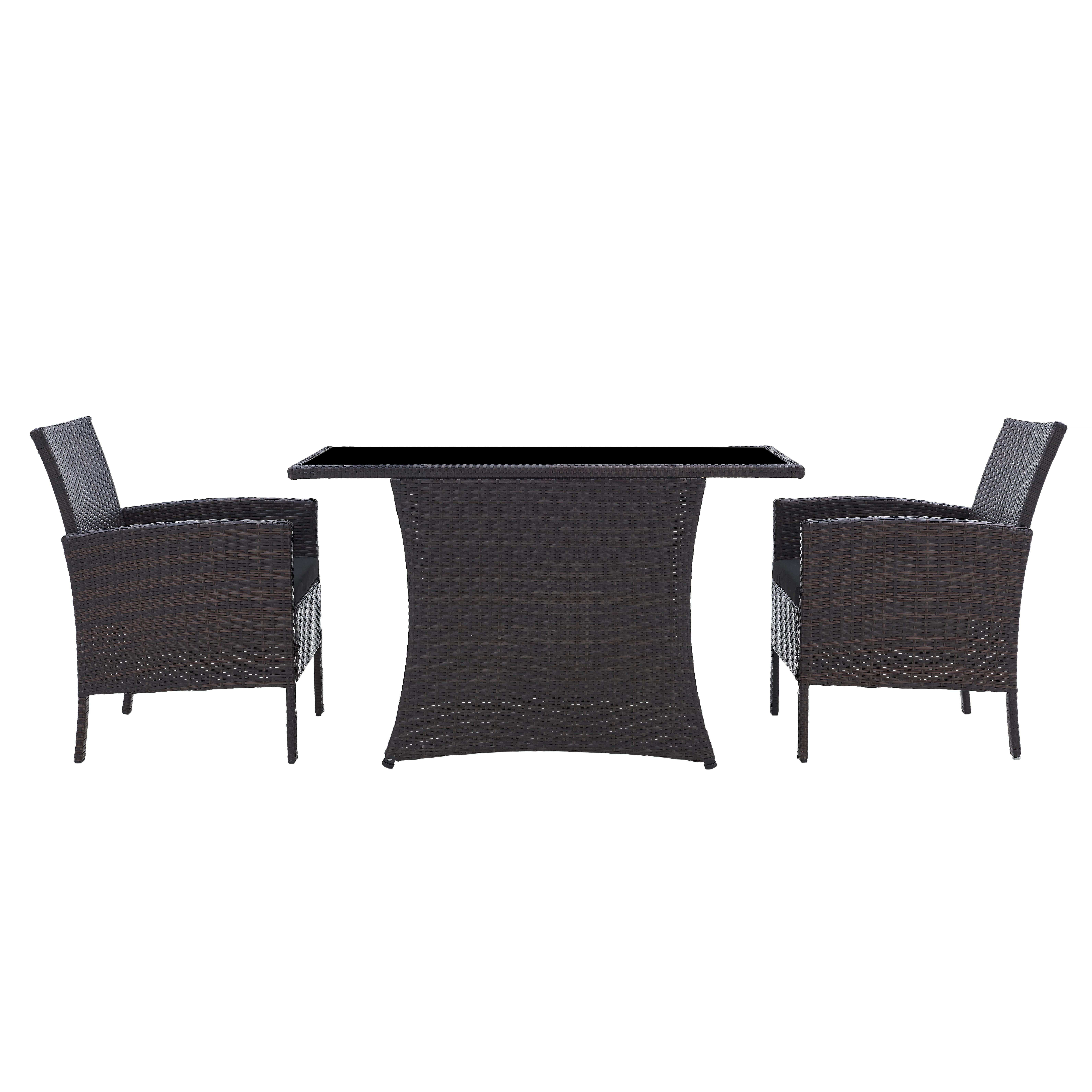 S'asseoir en famille ou entre amis dans le jardin ou sur la terrasse par beau temps en dégustant un café et une part de gâteau : le paradis ! Profitez du confort d'assise de ce salon de jardin. Cet ensemble de jardin stable et résistant aux intempéries en poly rotin comprend deux fauteuils confortables avec coussins d'assise fournis et une table avec plateau en verre facile d'entretien ; son design original répondra à toutes vos attentes. Les fauteuils peuvent également être rangés sous la table pour un faible encombrement. Bien sûr, vous pouvez également poser ces meubles à l'intérieur, par exemple dans la véranda. Peu importe où vous le placerez : ce salon de jardin créera automatiquement un air de vacances très agréable.
