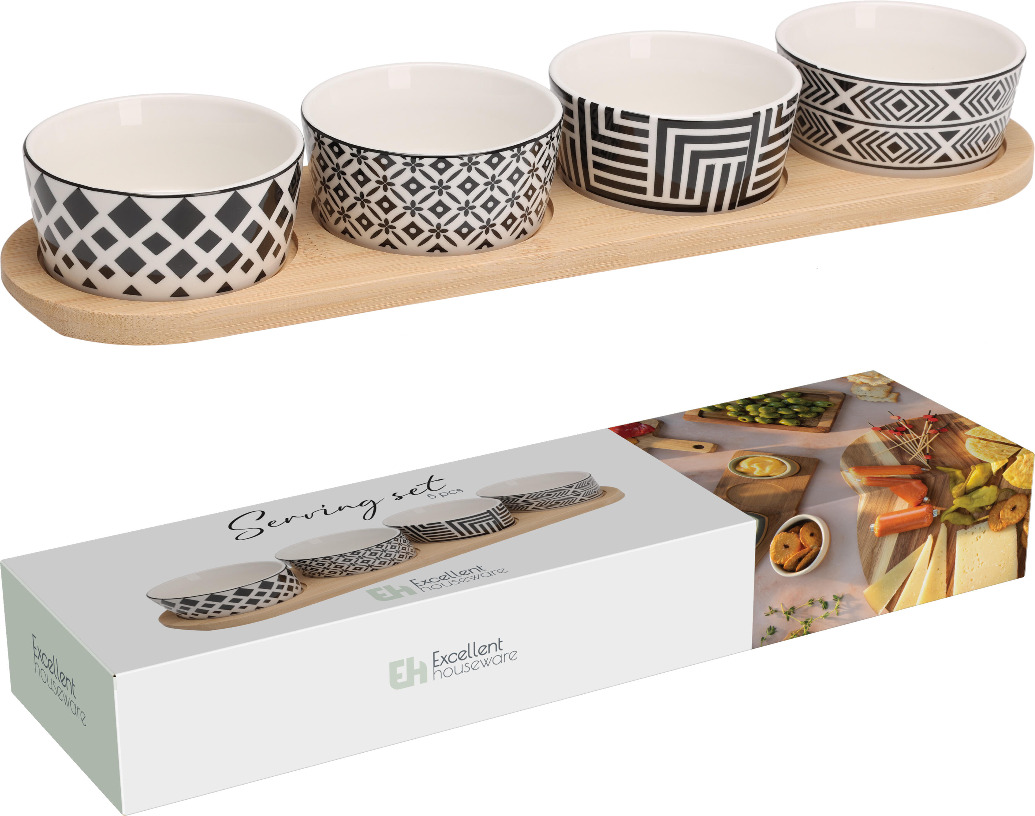 1 service apéro comprenant 4 coupelles et 1 plateau
