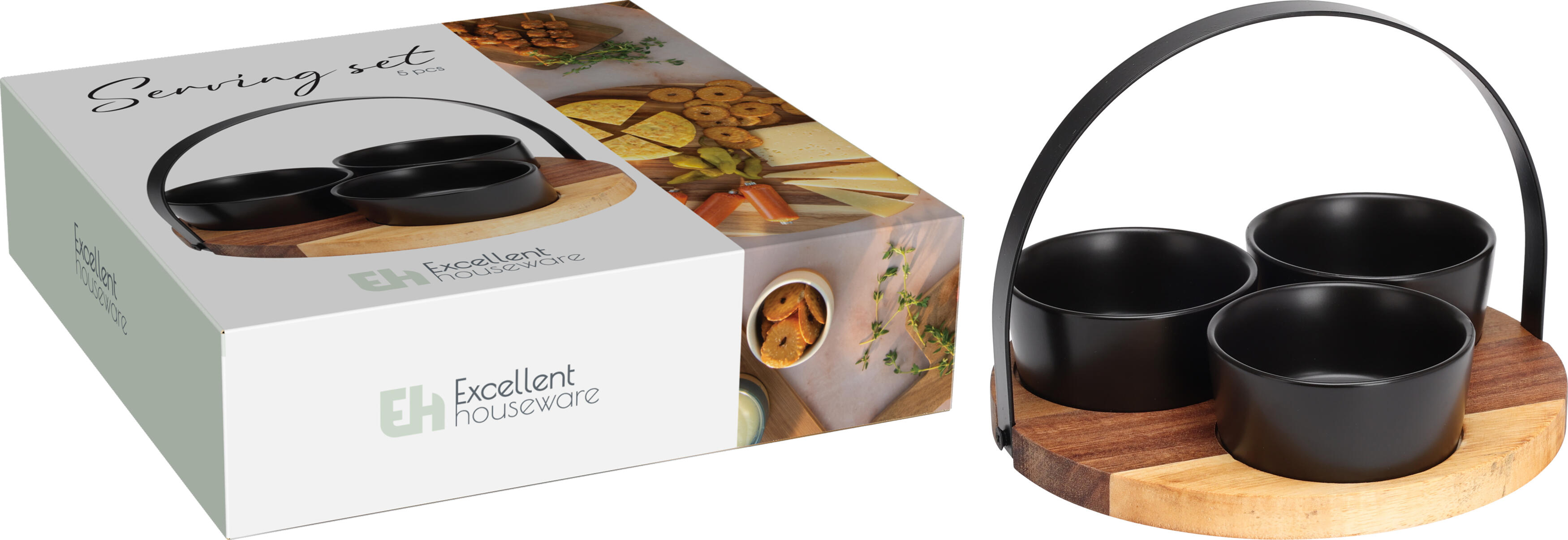 1 service apéro comprenant 3 coupelles et 1 plateau