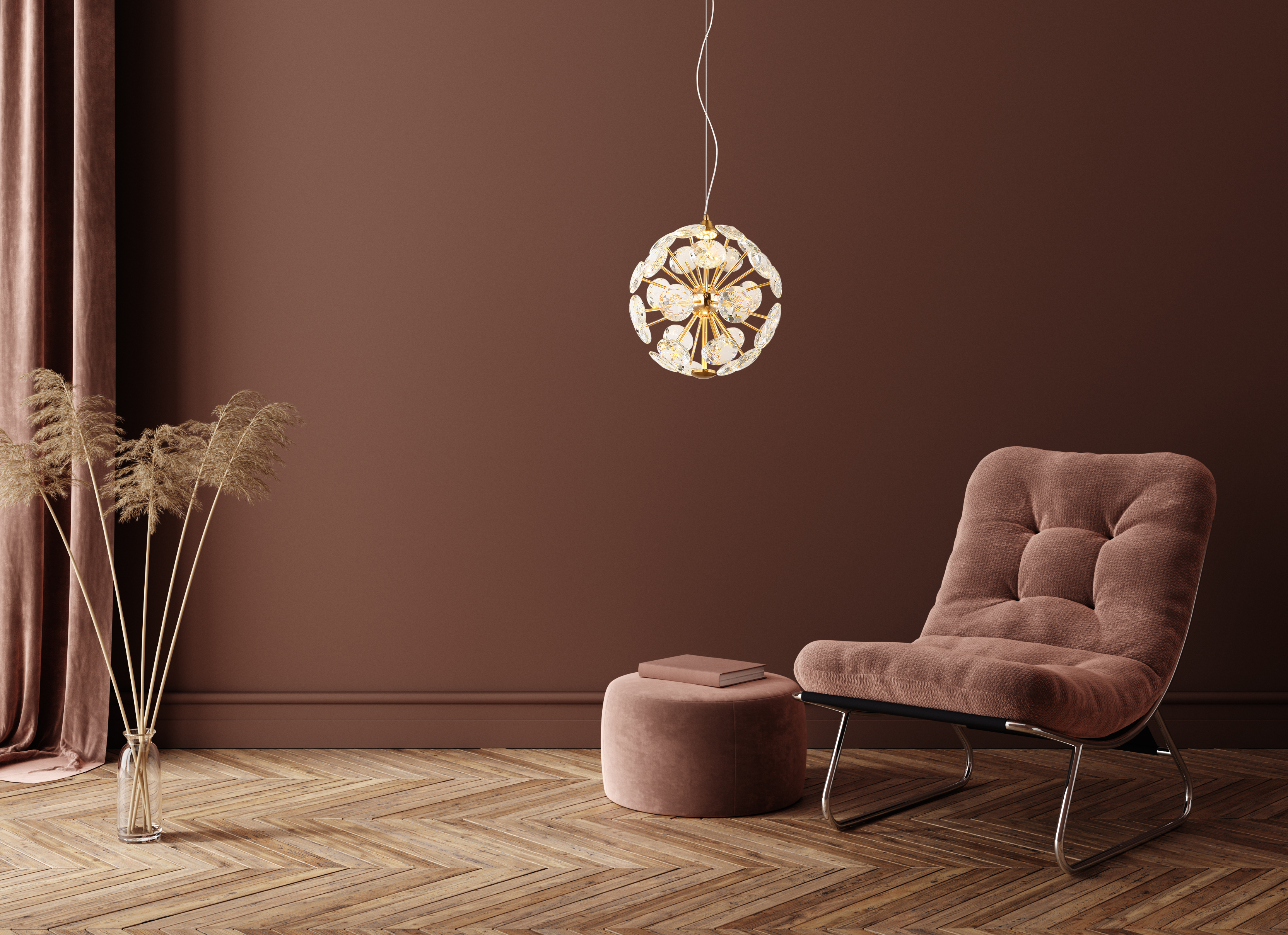 La suspension ronde design en métal doré attirera tous les regards grâce à la boule en cristaux transparents K9. L’abat-jour équipé de cristaux scintillants confère à la lampe une note élégante et garantit une luminosité agréable dans la pièce.