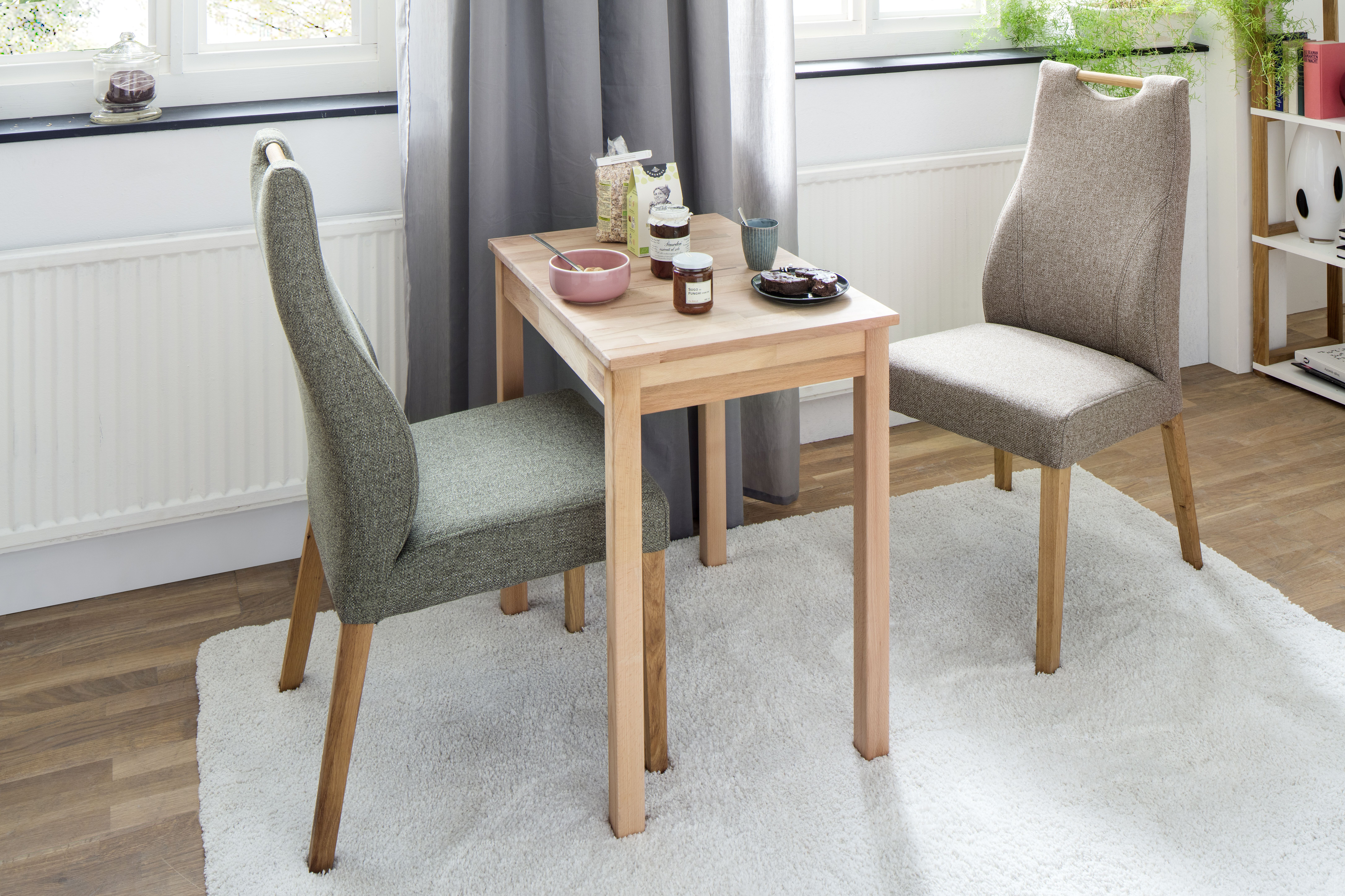 Alfons est une table en bois massif fabriquée en cœur de hêtre. Son élégance et sa sobriété s'intègrent parfaitement dans de nombreux styles d'intérieur : moderne ou classique, scandinave ou rétro… Avec les chaises assorties, la table Alfons trouvera sa place partout. Dans la cuisine, la salle à manger ou comme table de repas dans le séjour. Alfons est un modèle polyvalent parmi toutes les tables. Voilà donc à quoi pourrait ressembler votre intérieur avec la table Alfons. Grâce à son design aux lignes droites, ce modèle s'adapte à tout type d'habitat. Colocation ou appartement en solo, vie de famille ou à la retraite. Avec cette table à dîner en bois massif, vous faites un excellent choix.