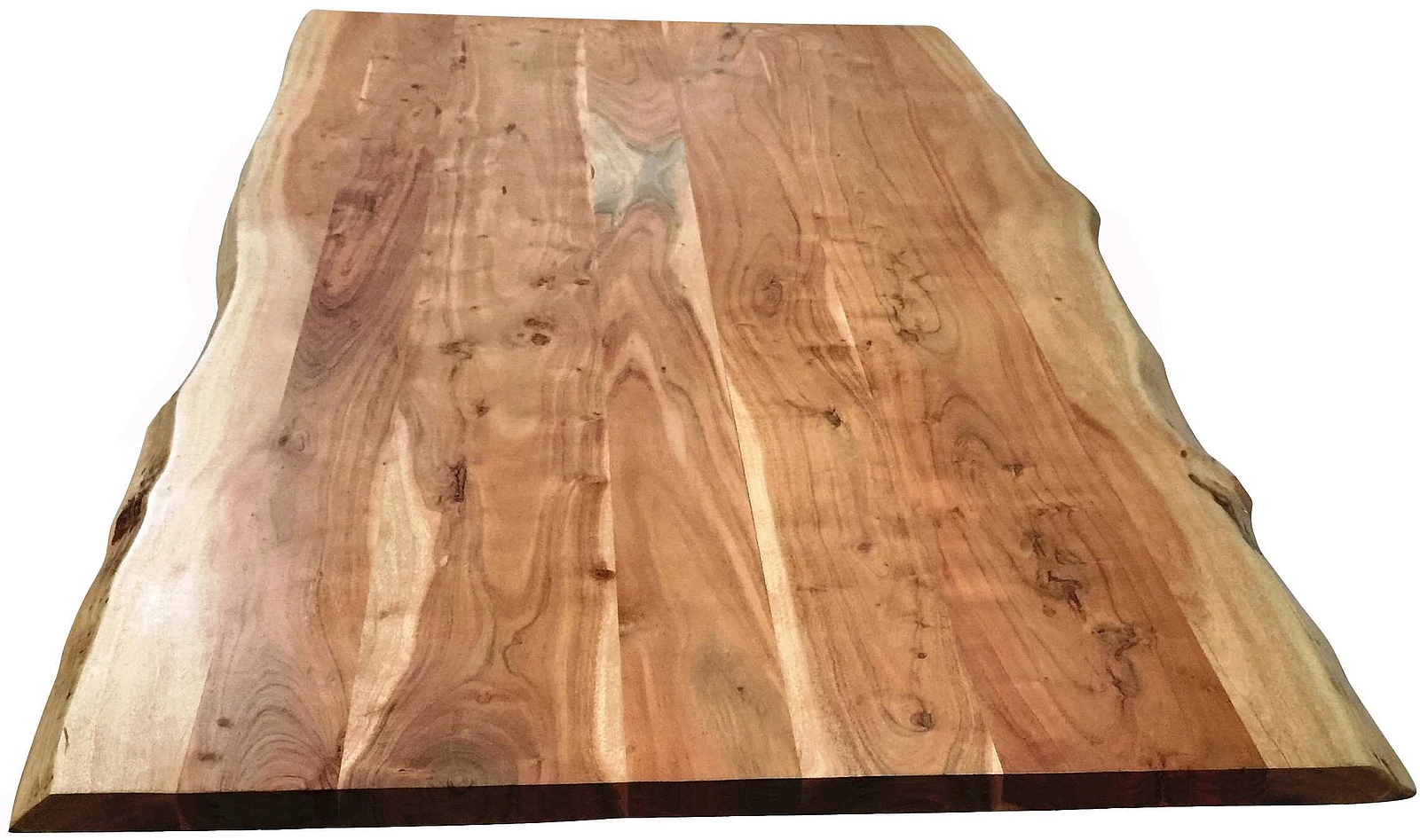 Plateau de table : acacia massif (Inde) avec flache aspect naturel, teinté, laqué et ciré