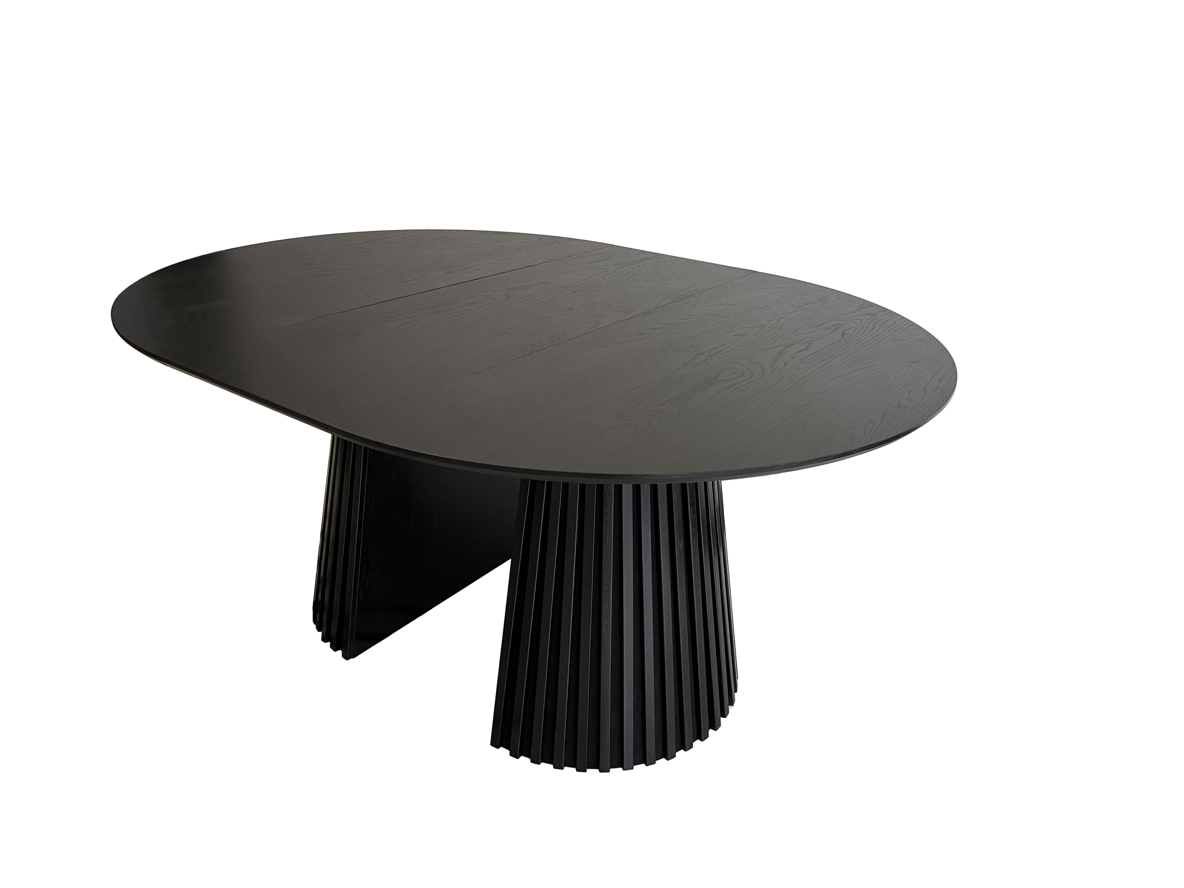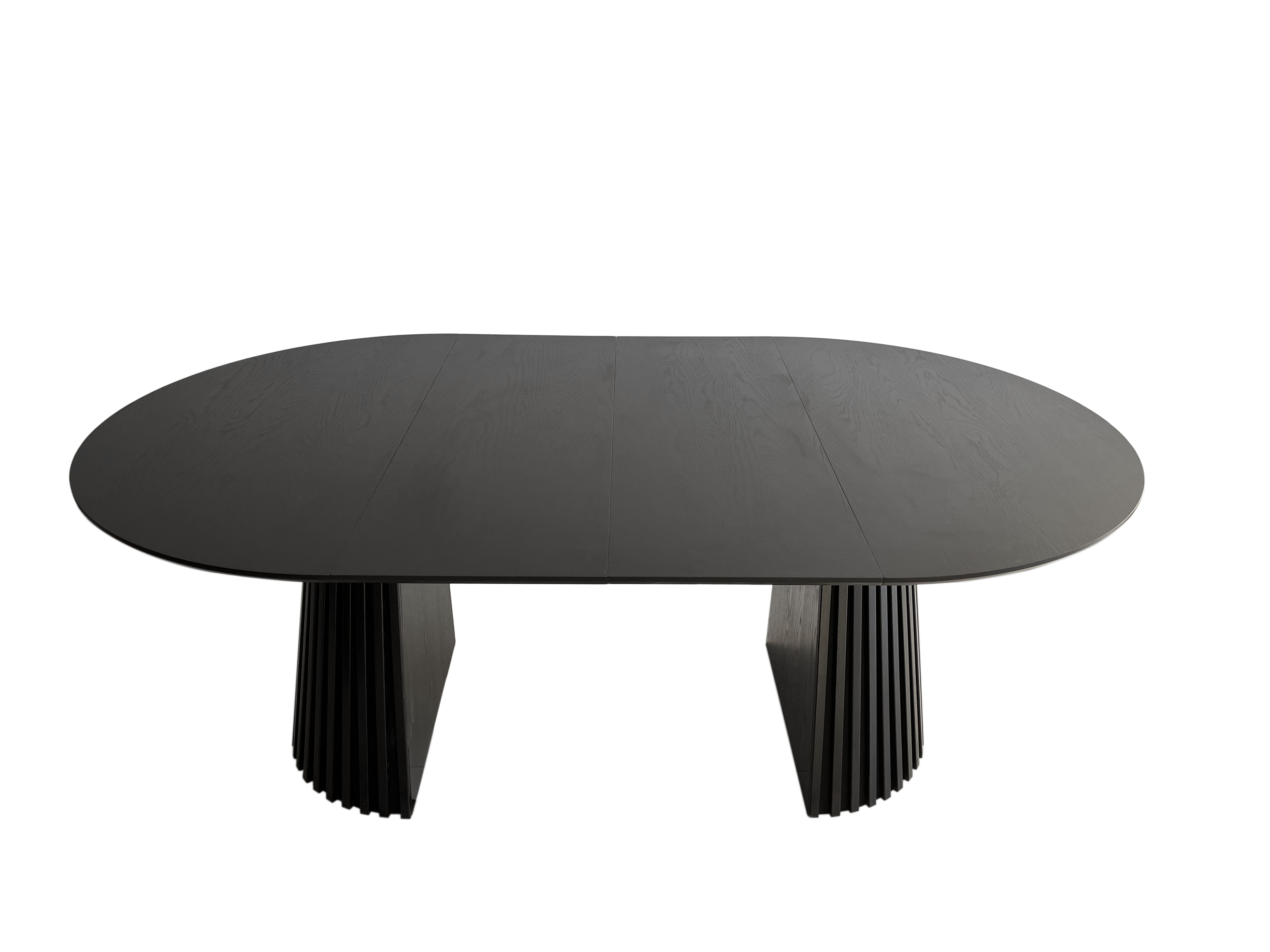 Le pied en colonne robuste en chêne massif teinté noir attire tous les regards tout en garantissant une excellente stabilité et une longue durée de vie. Le bois massif est synonyme de fabrication de haute qualité et d'élégance intemporelle, qui devient un élément caractéristique du salon ou de la salle à manger.