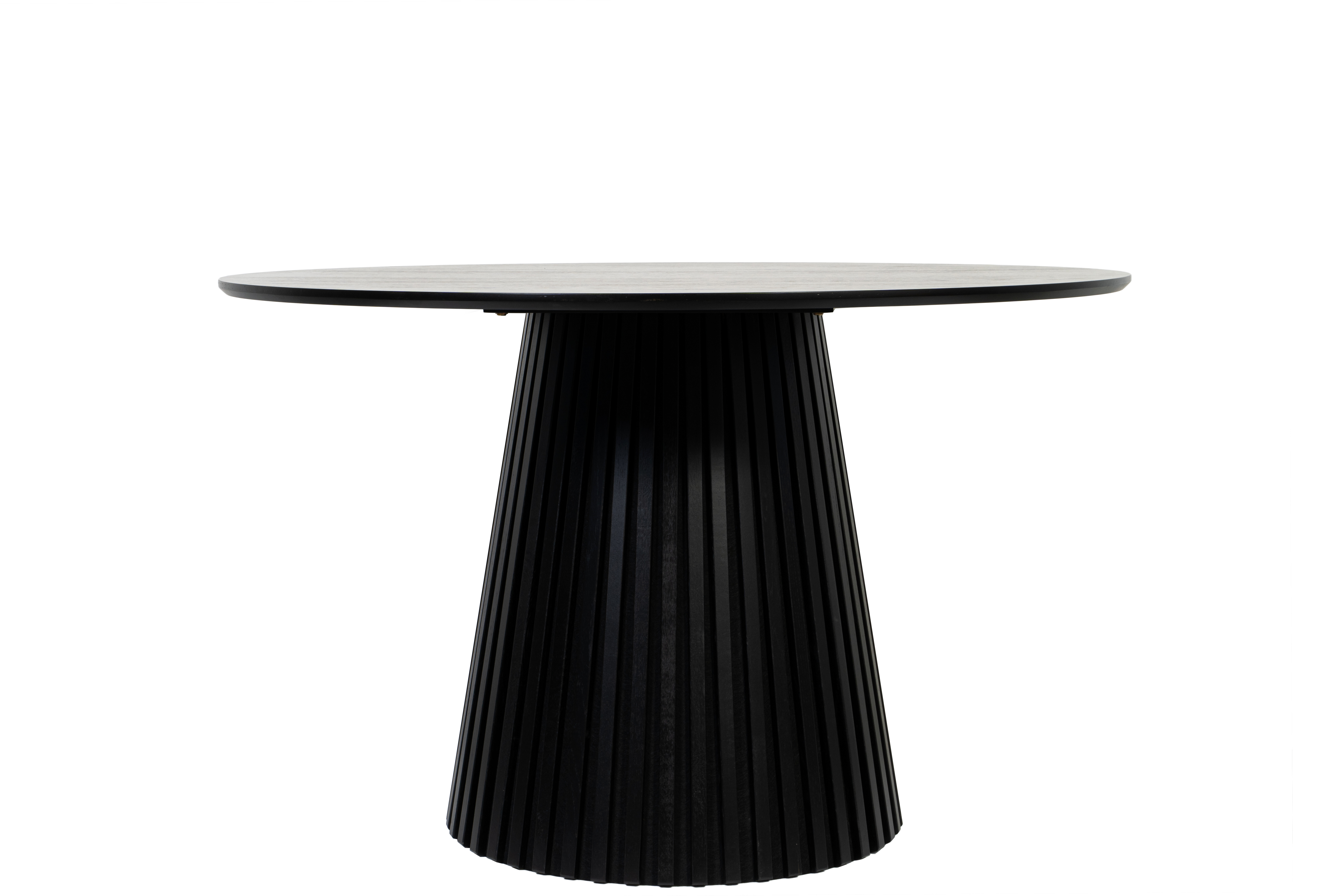 Le pied en colonne robuste en chêne massif teinté noir attire tous les regards tout en garantissant une excellente stabilité et une longue durée de vie. Le bois massif est synonyme de fabrication de haute qualité et d'élégance intemporelle, qui devient un élément caractéristique dans le salon ou la salle à manger.