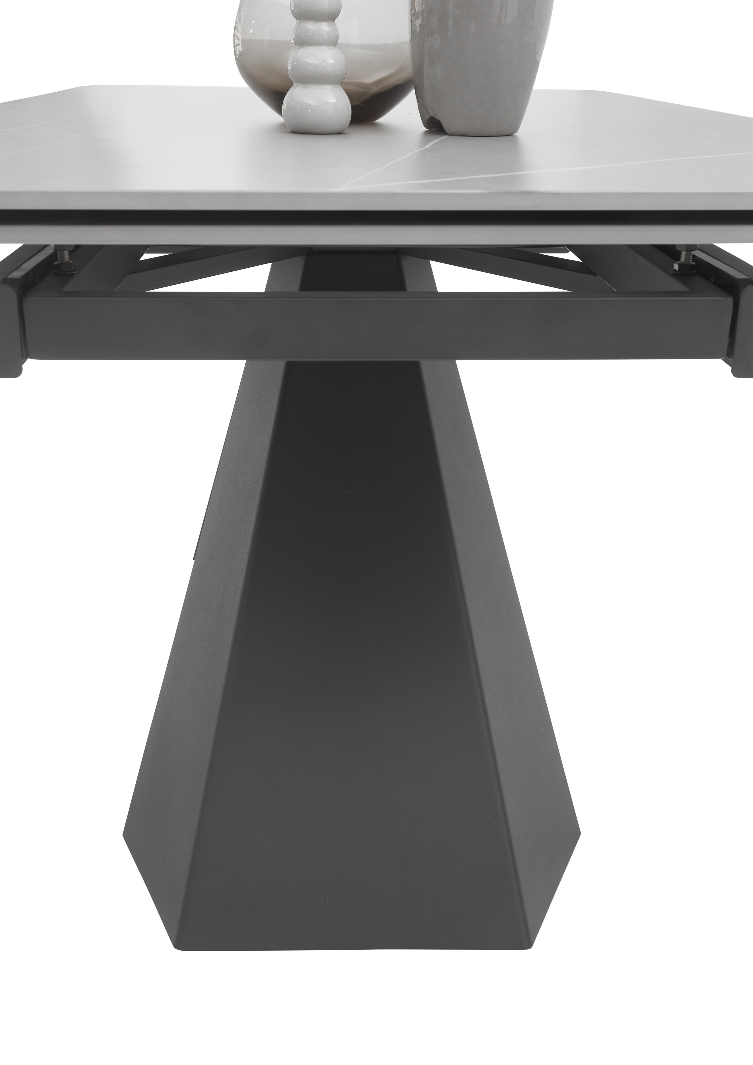 Avec son plateau en céramique solide à l'élégant aspect marbré gris, elle offre une surface facile d'entretien et résistante qui supporte sans problème les exigences quotidiennes. Le piètement métallique robuste en noir assure une bonne stabilité et une utilisation durable.
