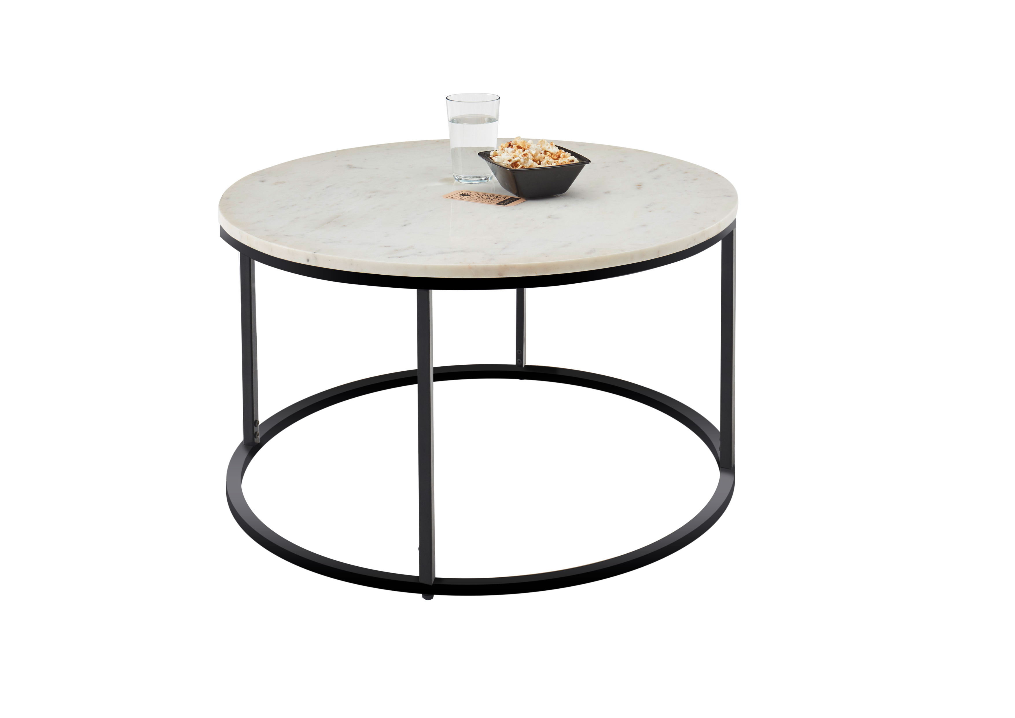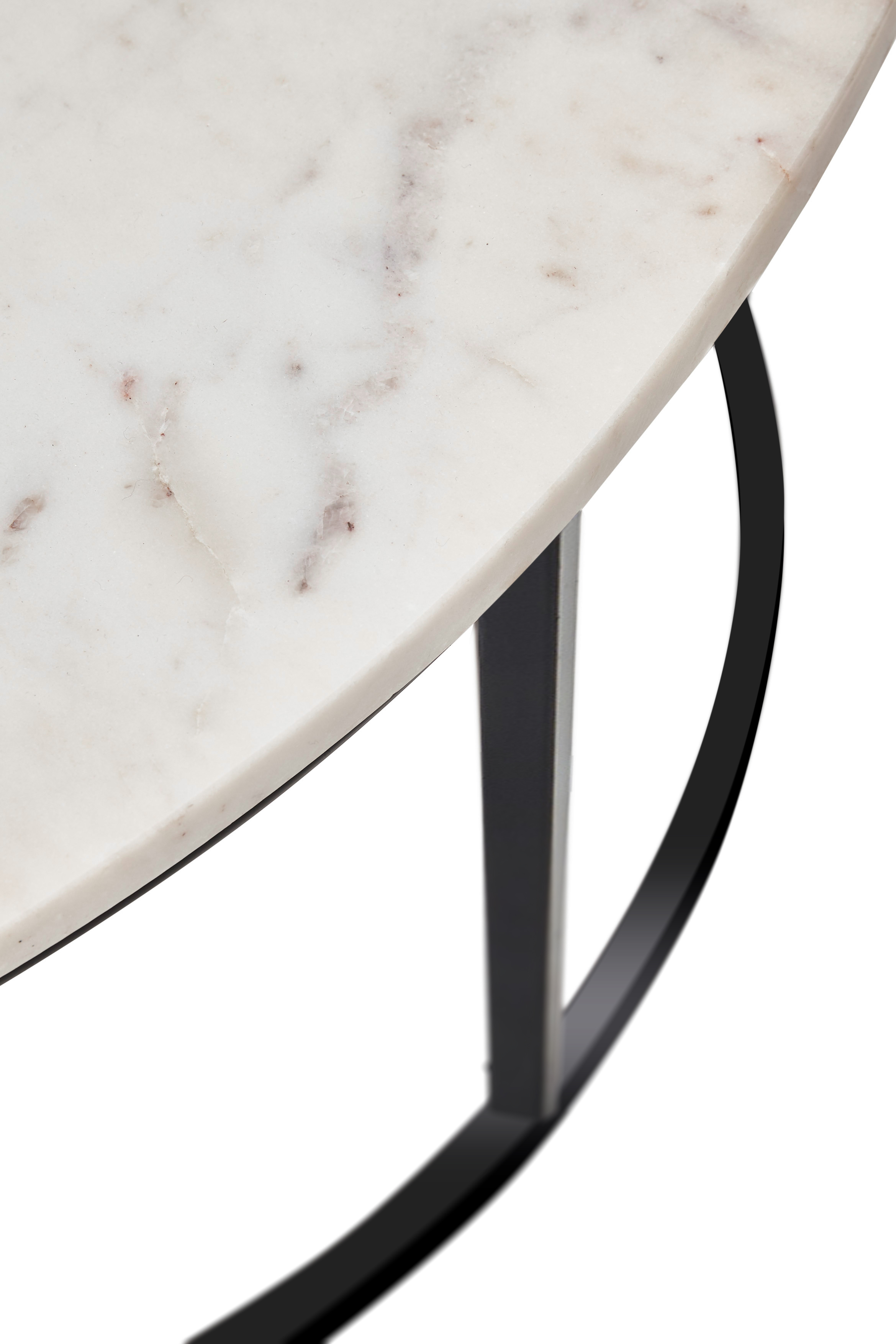 Le plateau en marbre robuste confère à ce meuble un aspect intemporel et haut de gamme qui s'harmonise avec différents styles d'intérieur. Le piètement en métal noir assure une bonne stabilité et une longue durée de vie. Grâce à ses couleurs neutres, la table s'intègre harmonieusement dans les intérieurs modernes et devient un élément central attrayant dans le salon.