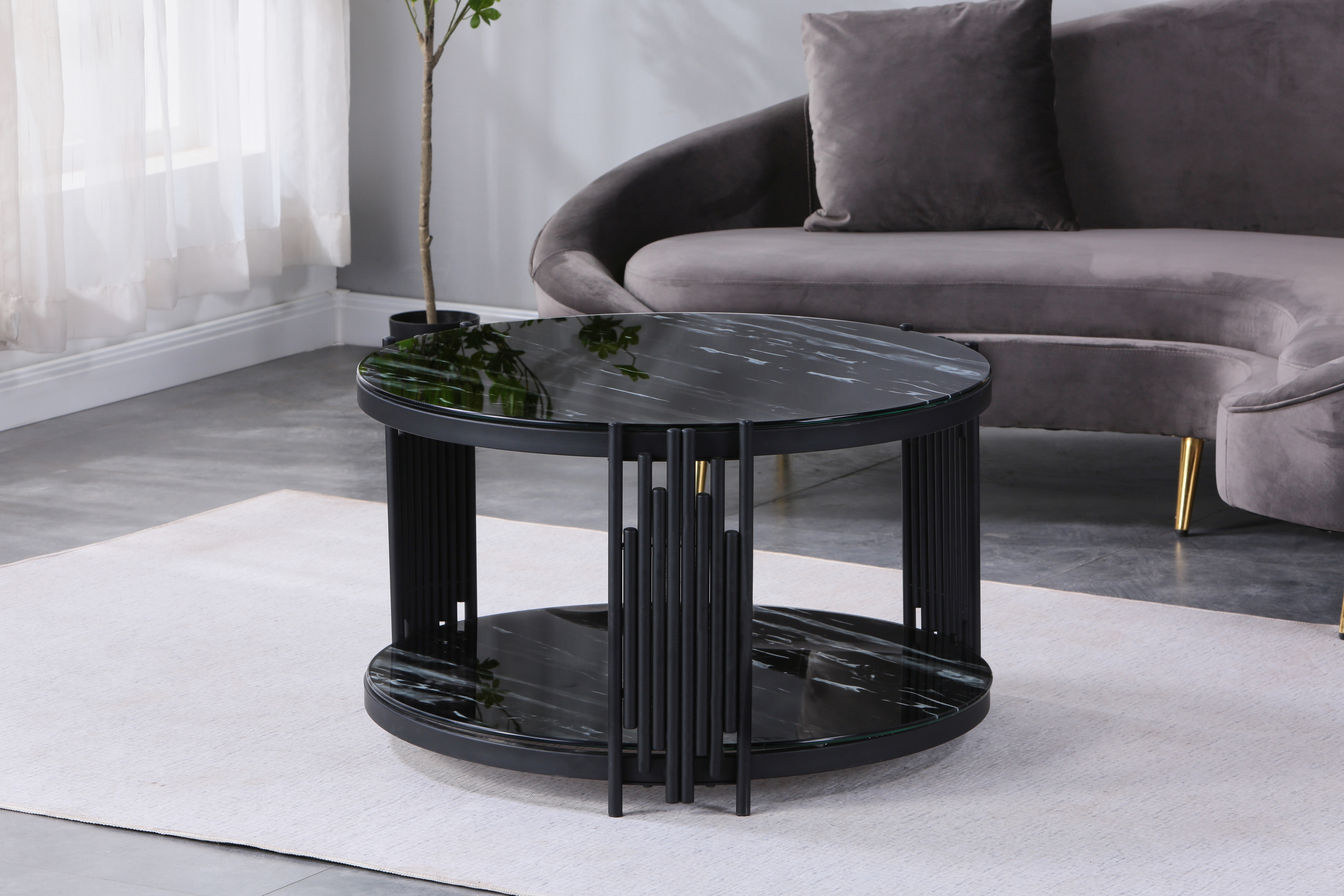 Plateau de table et tablette : verre trempé aspect marbre ton noir mat