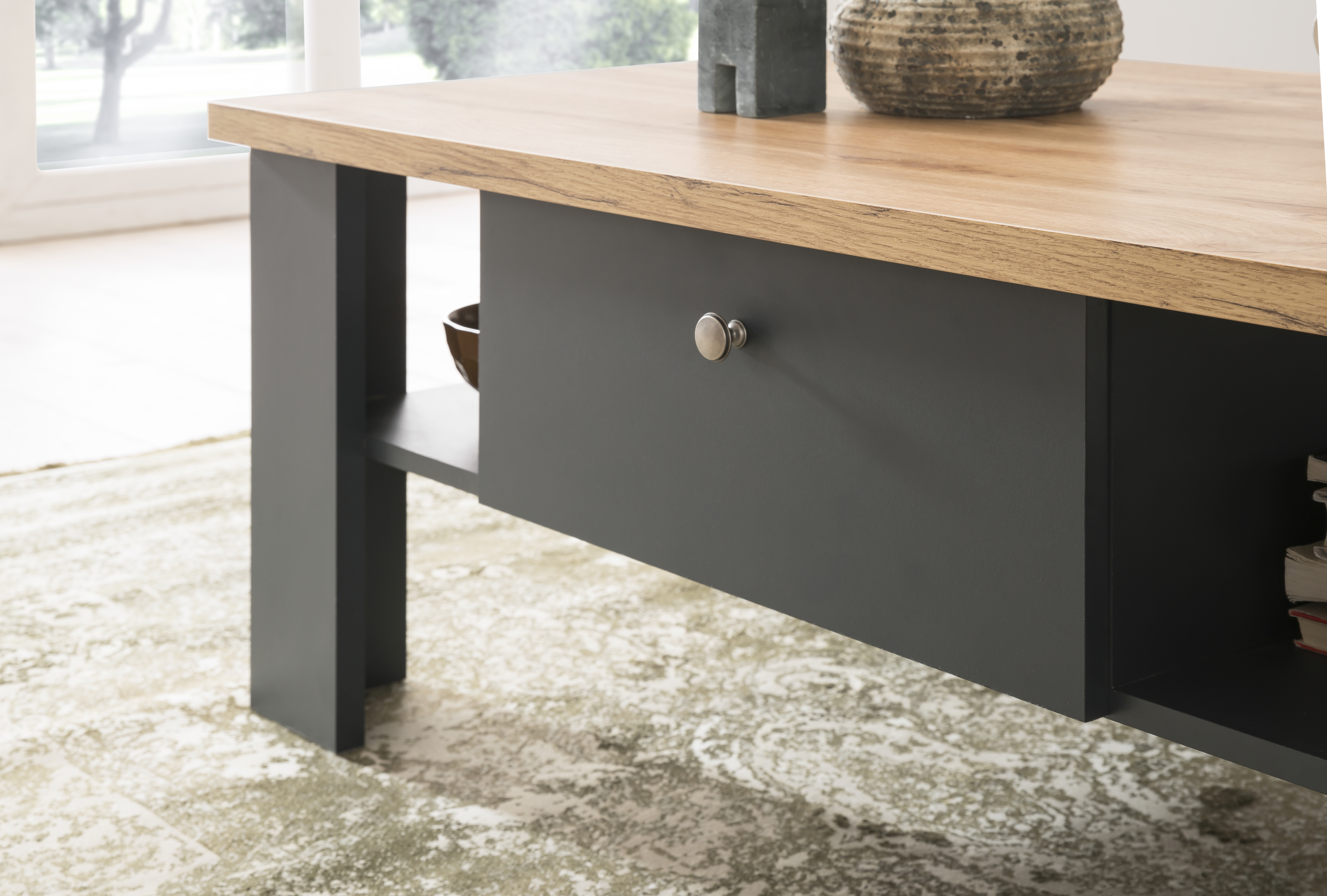 2 tiroirs avec fermeture amortie sous le plateau de table