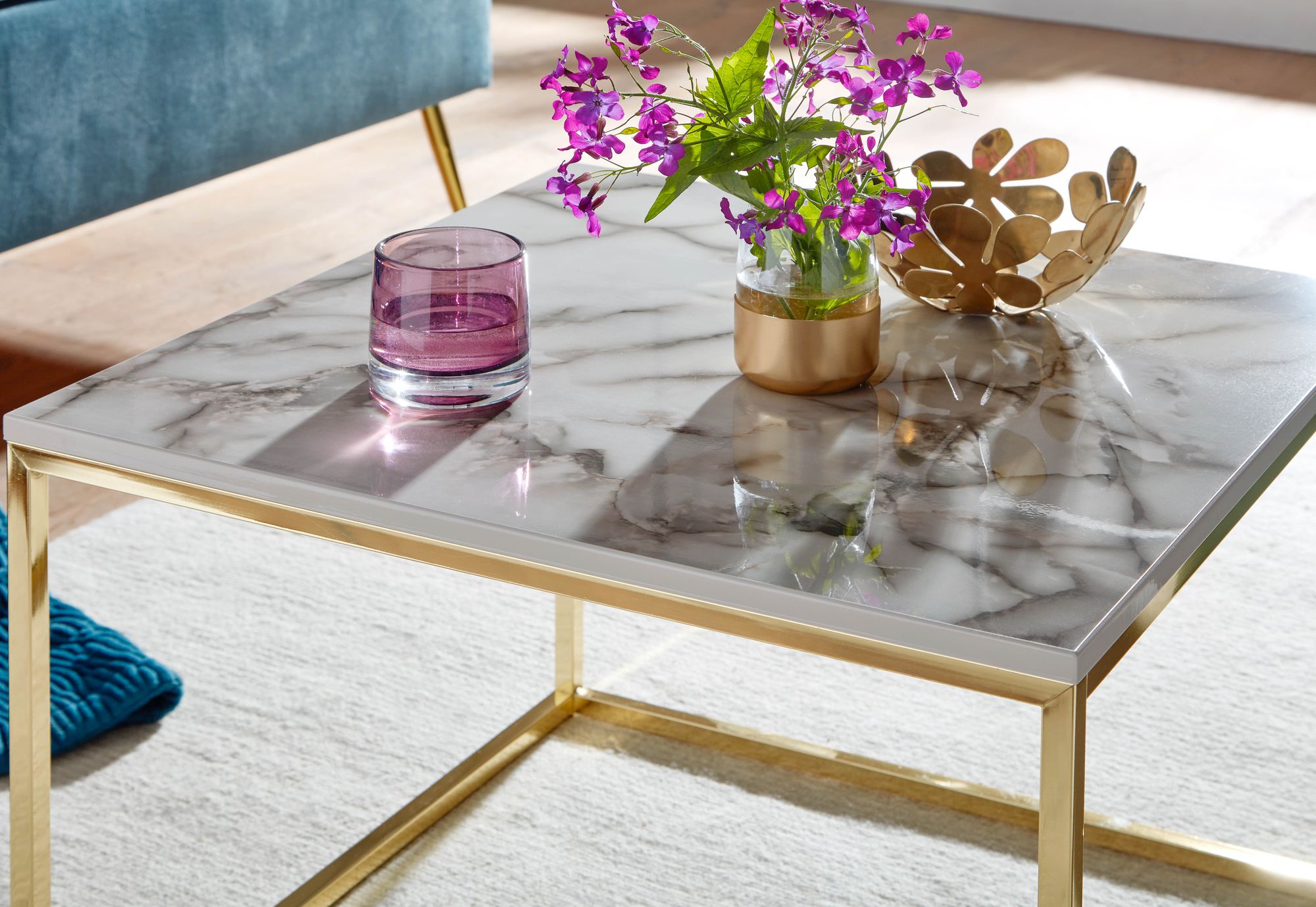Plateau de table : MDF (panneau de fibres de bois de densité moyenne) aspect marbre blanc