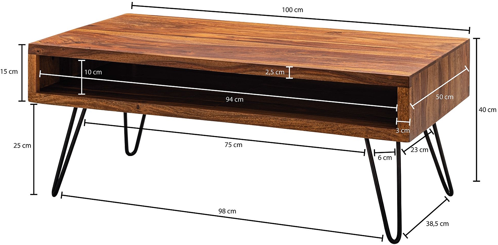 - L'HARMONIE TOUT SIMPLEMENT ✔ Les amateurs de décoration intérieure personnalisée en auront pour leur frais avec cette table basse. Le bois massif à la teinte chaude et expressive et les pieds filaires en épingle à cheveux dans un métal robuste créent un ensemble harmonieux. Laissez le charme d'un loft prendre possession de votre salon