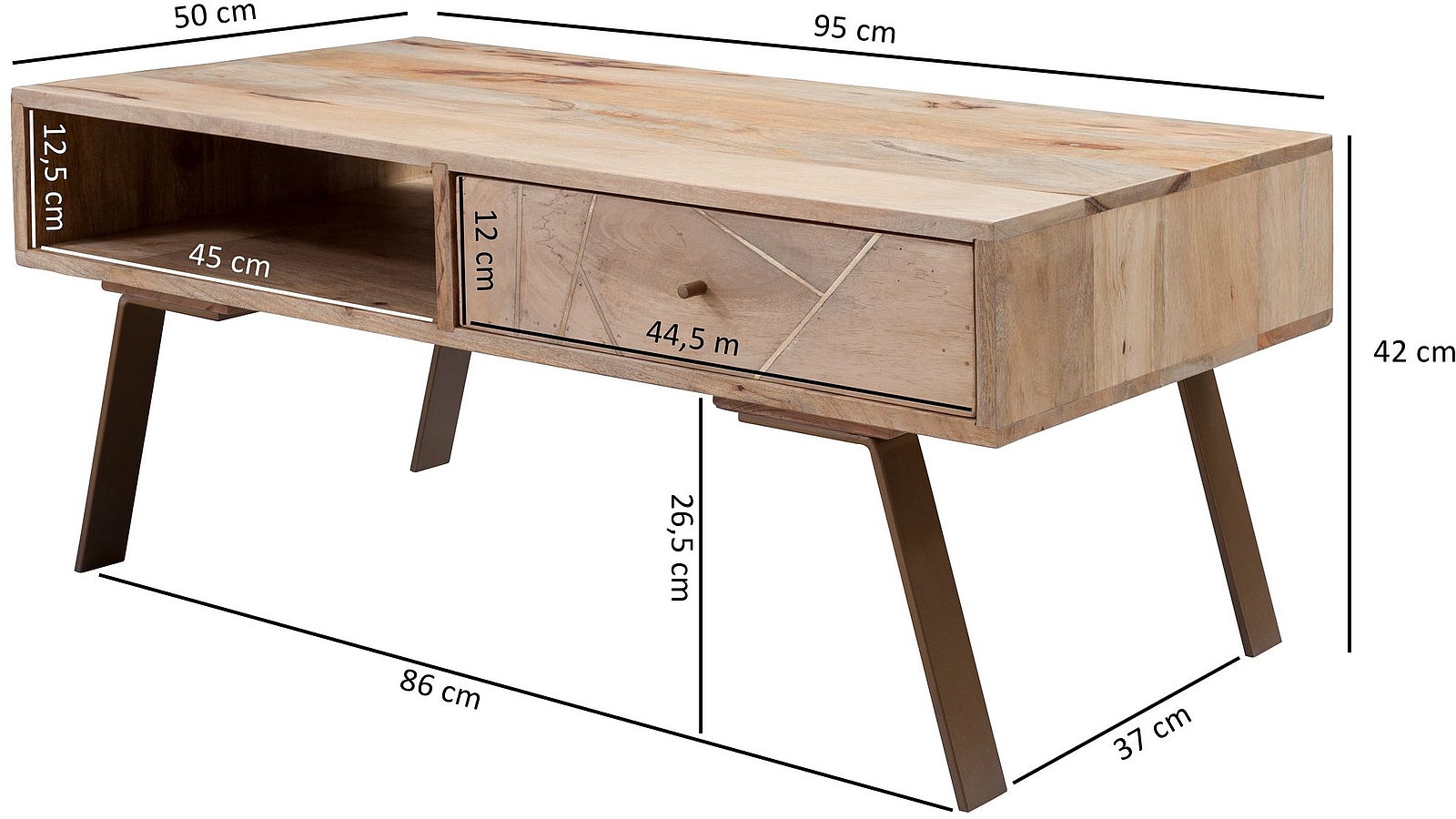 - NOTE RUSTIQUE ✔ Faites entrer la nature dans votre chambre à coucher ! Cette table de salon en bois de manguier dans un style campagne rustique exhale un charme particulier qui investira votre intérieur. De fines bandes métalliques décorent les façades du tiroir et s'harmonisent avec le veinage naturel du bois. La table en bois massif est portée par quatre pieds résistants en fer. Profitez de votre programme TV avec snacks et boissons à portée de main !
