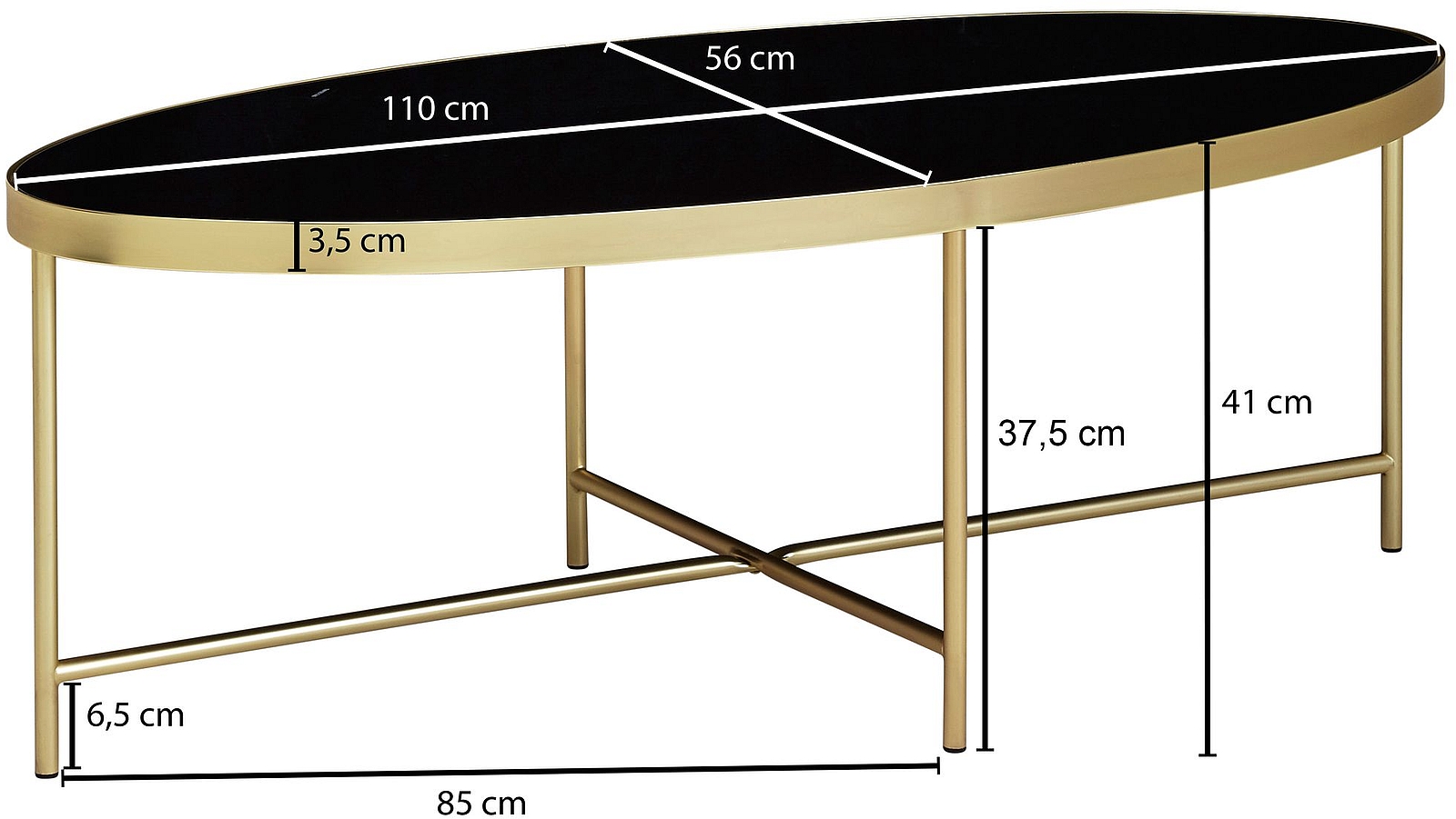- RAVISSANTE ✔ Avec sa structure brillante ton or flamboyant et son plateau en verre noir, cette élégante table basse attirera tous les regards. Sa forme ovale s'harmonise parfaitement avec un canapé d'angle. Cette table sera résolument le point de mire de votre salon.