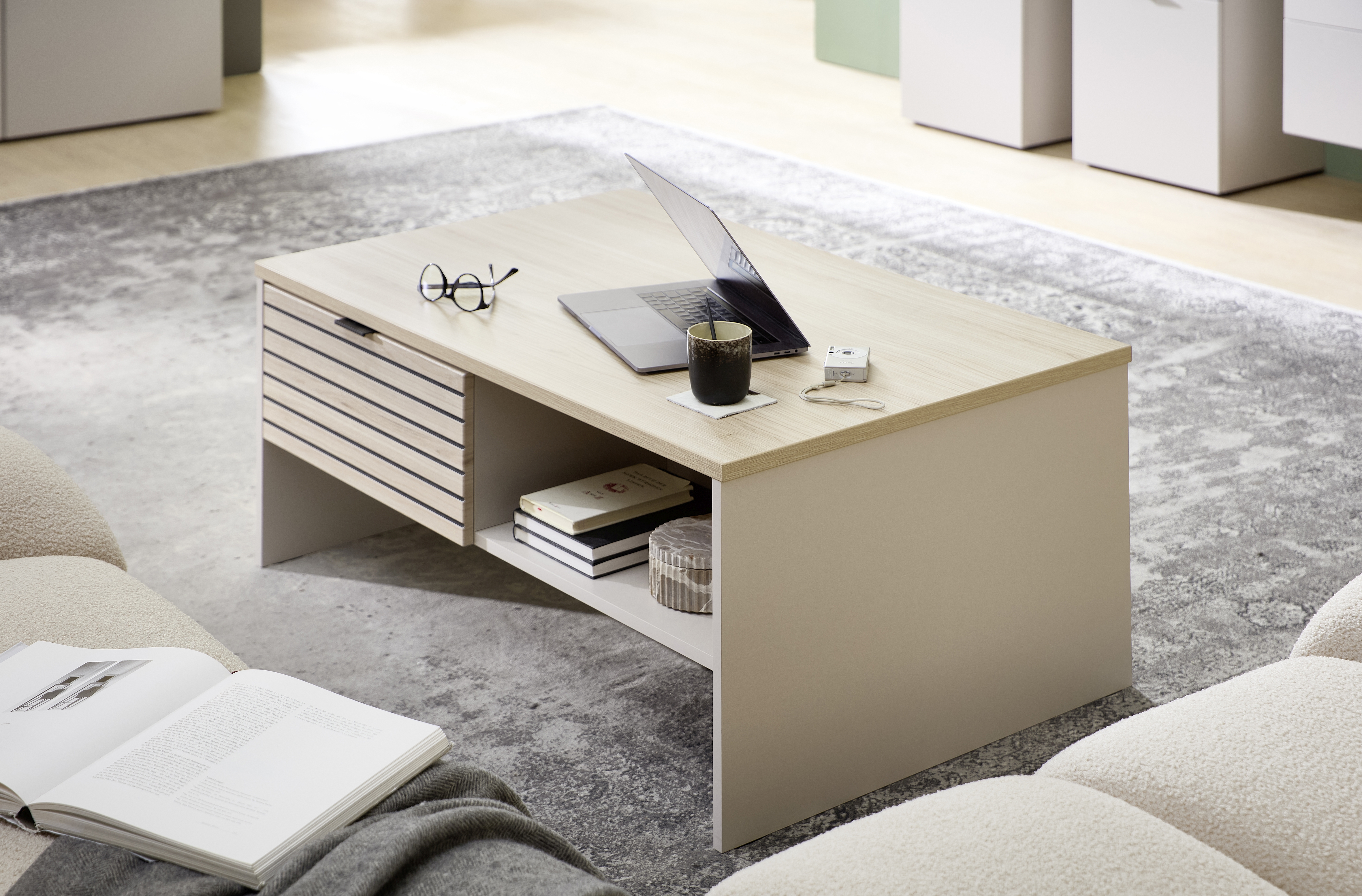 Caisson : ton cachemire avec plateau de table décor chêne Riva
