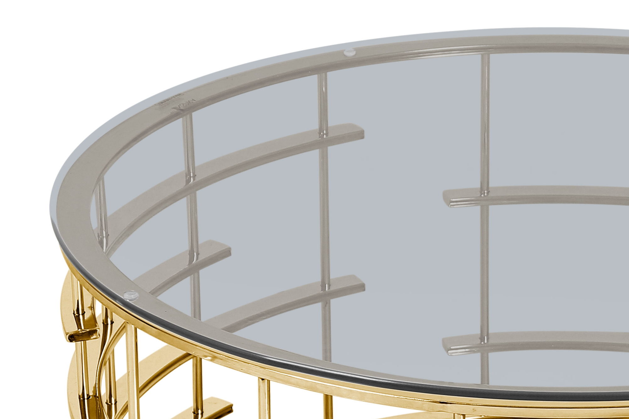 Si vous êtes à la recherche d’un élément décoratif original dans un design hors norme, cette table basse ronde en verre de sécurité et acier inoxydable robuste est assurément faite pour vous. Le piètement inox aux formes abstraites fait de cette table en verre un élément luxueux qui permettra de twister la déco de votre salon et de la mettre en valeur. Les tables basses rondes sont du plus bel effet notamment avec des canapés et fauteuils aux formes carrées. Le plateau de table est en verre de sécurité de 8 mm d’épaisseur et constitue une combinaison particulièrement robuste et facile d’entretien grâce au piètement en acier inoxydable. Le joli piètement doré attirera tous les regards vers cette pièce maîtresse à côté du canapé.
