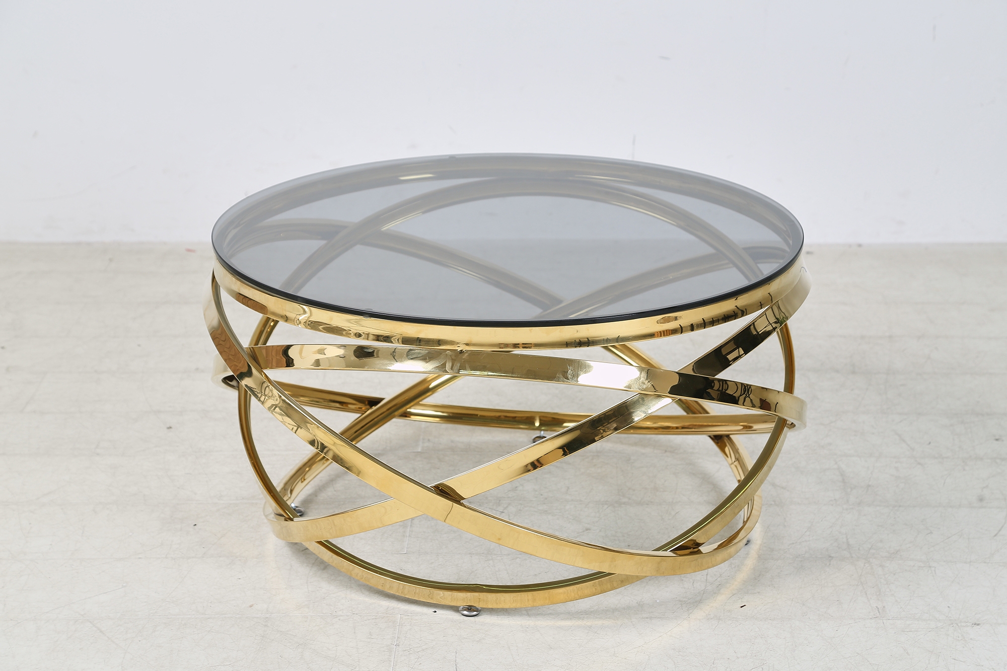 Si vous êtes à la recherche d’un élément décoratif original dans un design hors norme, cette table basse ronde en verre de sécurité et acier inoxydable robuste est assurément faite pour vous. Le piètement inox aux formes abstraites fait de cette table en verre un élément luxueux qui permettra de twister la déco de votre salon et de la mettre en valeur. Les tables basses rondes sont du plus bel effet notamment avec des canapés et fauteuils aux formes carrées. Le plateau de table est en verre de sécurité de 8 mm d’épaisseur et constitue une combinaison particulièrement robuste et facile d’entretien grâce au piètement en acier inoxydable. Le joli piètement doré attirera tous les regards vers cette pièce maîtresse à côté du canapé.