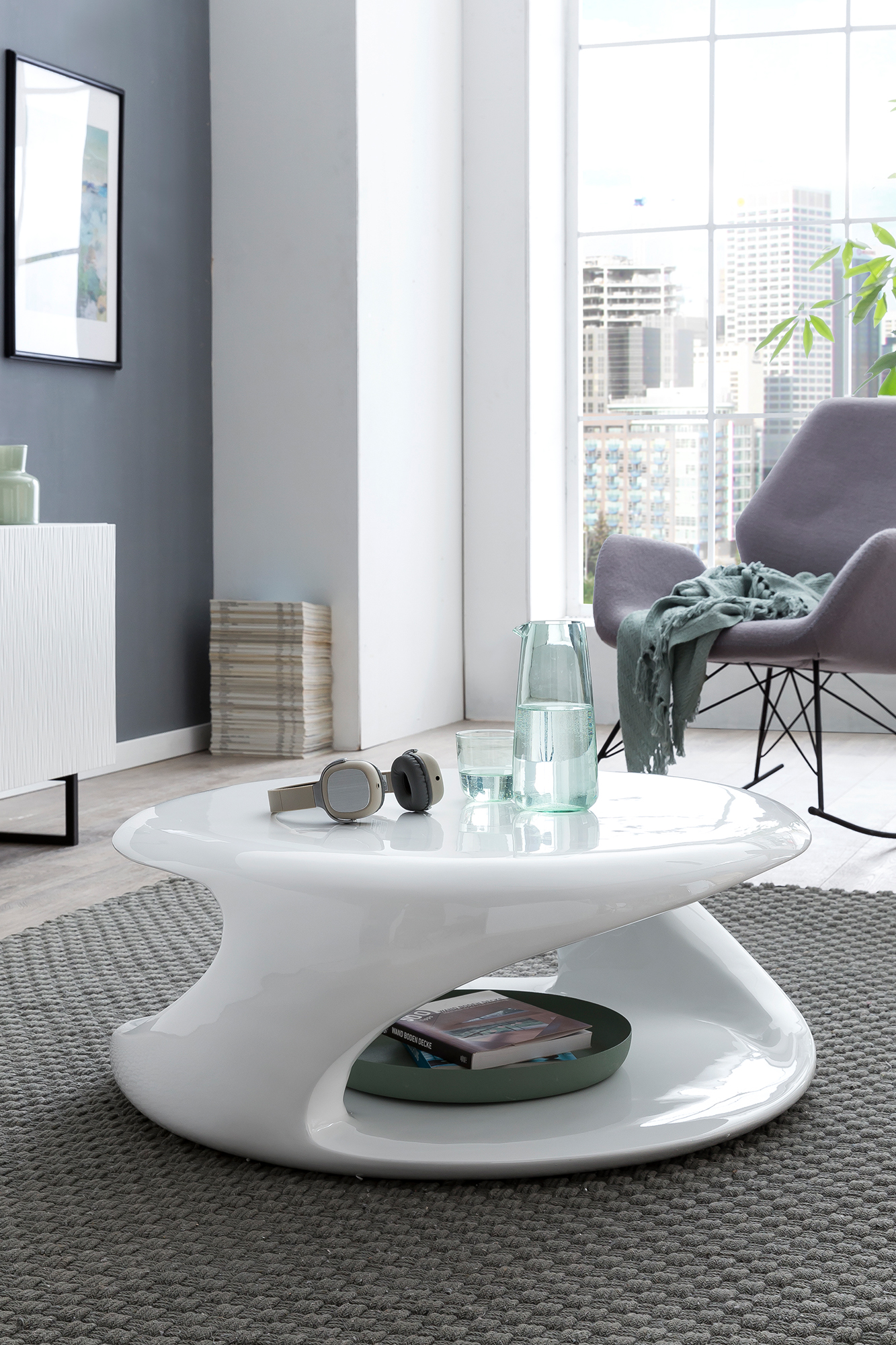 Obtenez une table basse haut de gamme de forme ronde. La table de salon est fabriquée en fibre de verre de qualité supérieure laquée ton blanc ultra brillant. La fibre de verre est un plastique renforcé et facile d’entretien qui résiste sans problème à une utilisation quotidienne. La surface en fibre de verre est facile à nettoyer et à entretenir. Les salissures peuvent être enlevées sans problème à l’aide d’un chiffon légèrement humide. Grâce à son excellente fabrication artisanale, la table de salon est robuste et ne bouge pas. Les matériaux utilisés pour sa fabrication lui assurent en outre une longue durée de vie. Cette table basse moderne au design exclusif se distingue par son élégance et sa forme ronde originale qui en font un véritable atout pour votre salon. Son look tendance et contemporain permet de la combiner facilement avec d’autres meubles et styles d’aménagement.