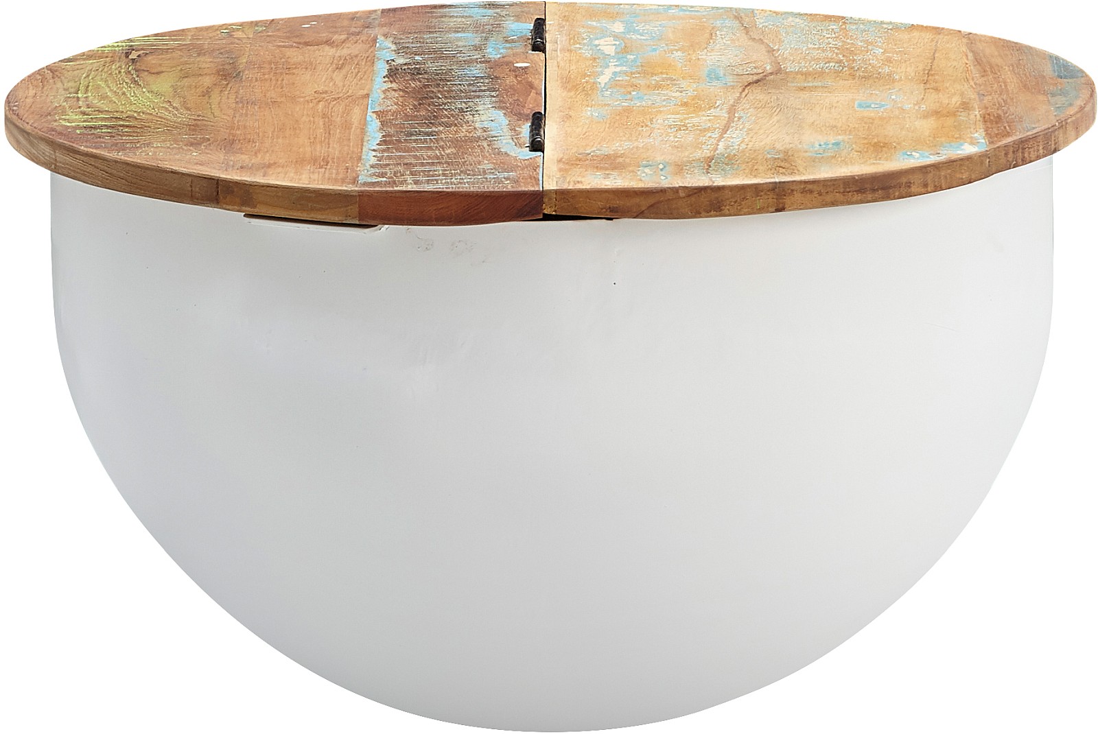 COMPOSITION ✔ Le plateau de la table basse est fabriqué en bois de manguier massif recyclé protégé par une couche de vernis transparent. La structure de la table de salon est en fer laqué.
