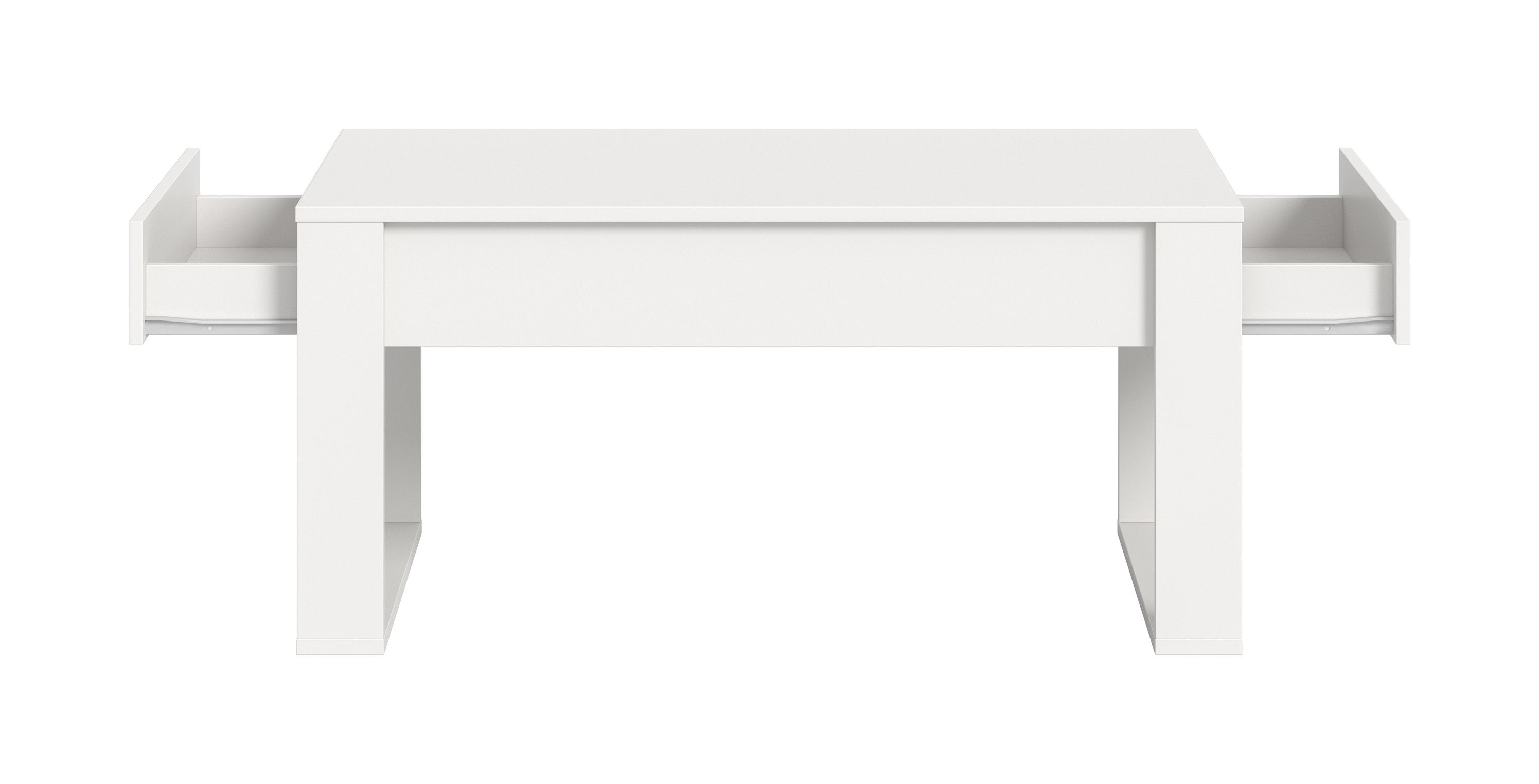 Misez sur l’élégance intemporelle et la fonctionnalité avec cette table basse moderne ton blanc. Son design clair et minimaliste en fait le compagnon idéal pour le salon. Cette table basse séduit par sa construction stable et sa surface facile d’entretien : la poussière et les petites salissures s’éliminent aisément avec un chiffon mouillé, ce qui la rend parfaite pour un usage quotidien, y compris dans les familles avec enfants. Avec son plateau spacieux et ses deux tiroirs, la table basse offre suffisamment d’espace pour accueillir magazines, boissons, en-cas ou objets décoratifs. Grâce à sa structure ouverte sur les côtés, elle dégage une impression de légèreté et de modernité et peut être placée librement dans la pièce.