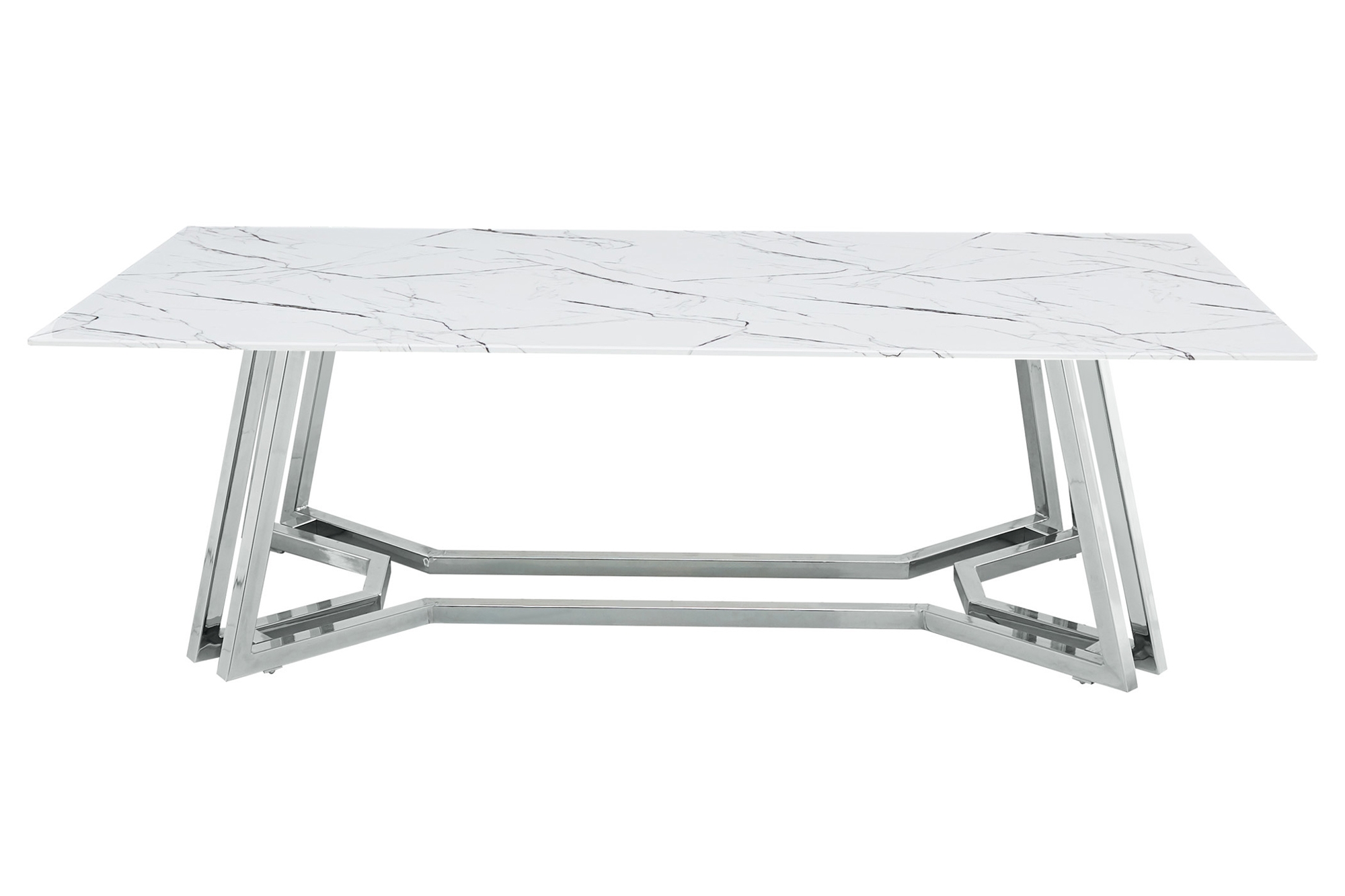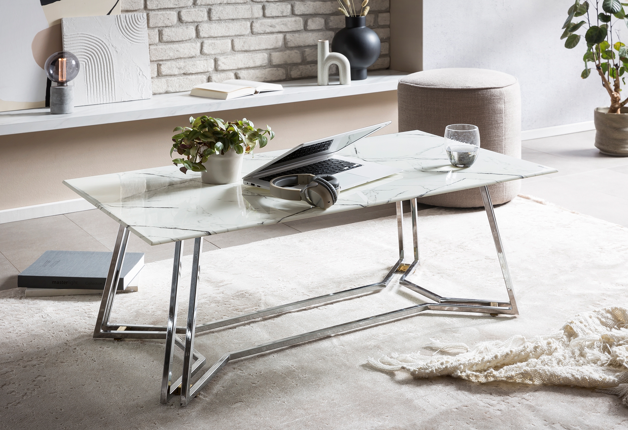 Cette table basse ultra chic confèrera instantanément un aspect élégant à votre salon. Le plateau de table aspect marbre blanc est en verre. Le piètement ton chrome n'est pas seulement stylé, mais confère aussi à la table une excellente stabilité et s'harmonise parfaitement avec le plateau en verre blanc. Les meubles aspect marbre sont ultra tendance et s'intègrent facilement dans tout type d’intérieur.