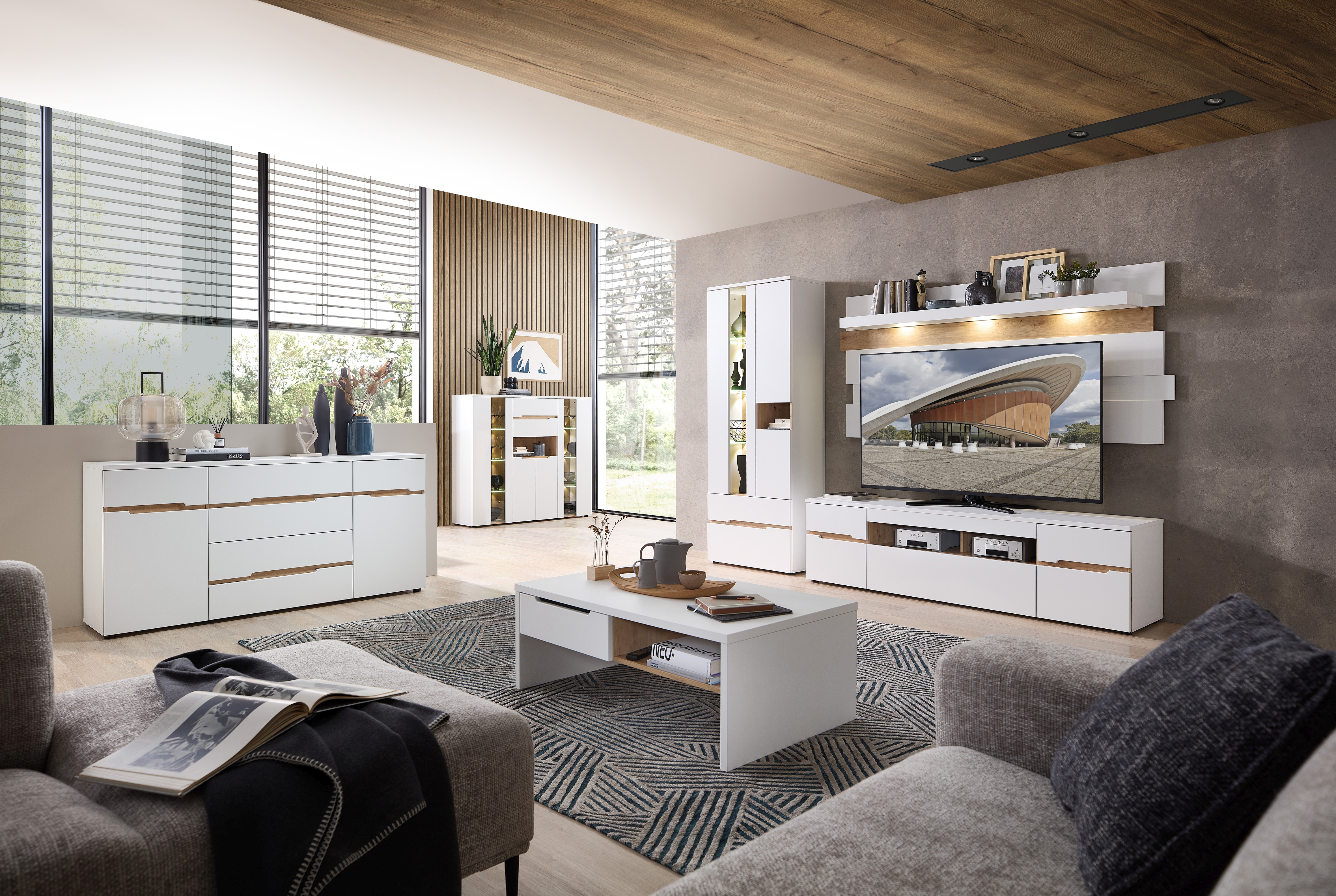 MDF (panneau en fibres de bois de densité moyenne) ton blanc super mat décor chêne Artisan