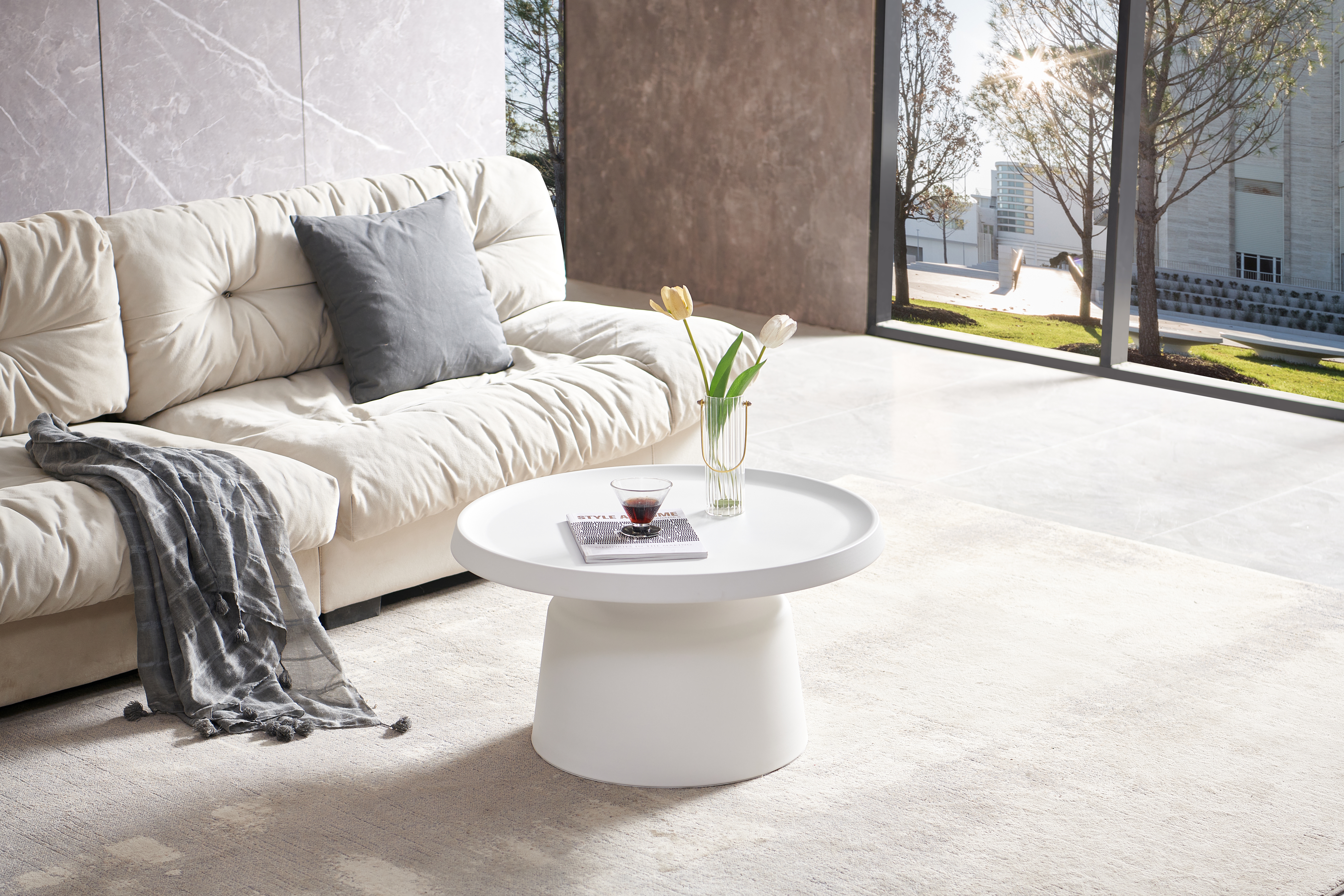 Avec plateau de table rond