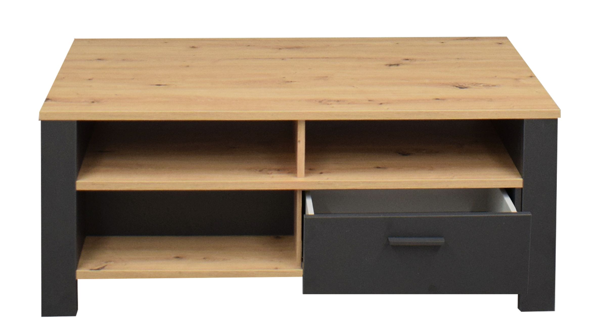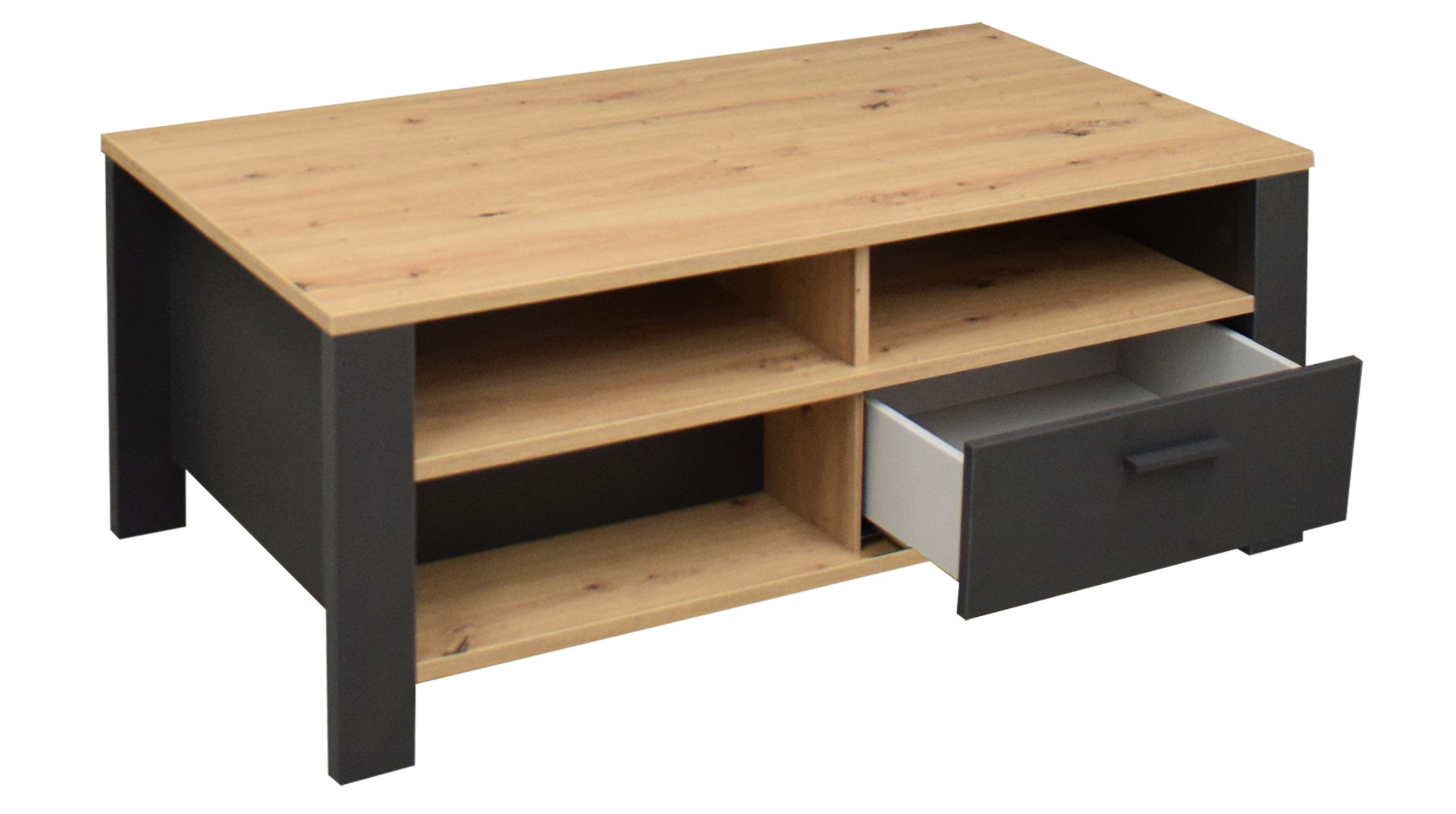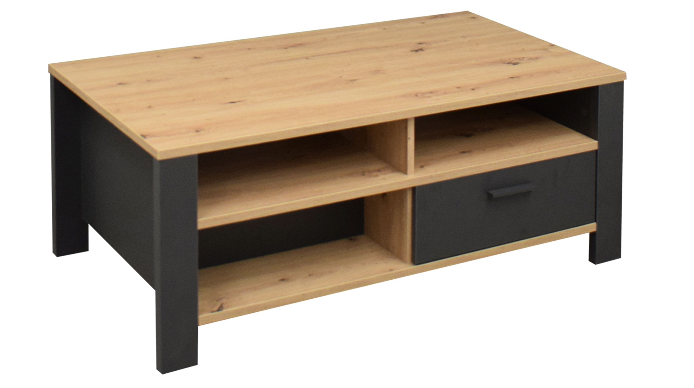 3 casiers ouverts et 1 tiroir sous le plateau de table
