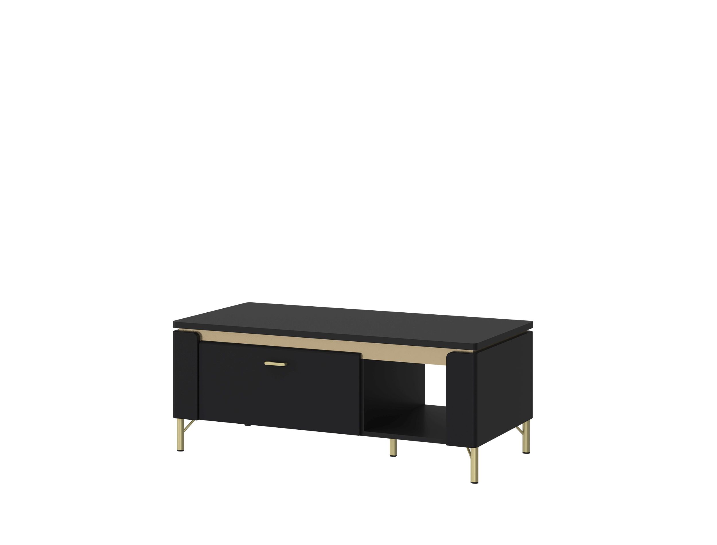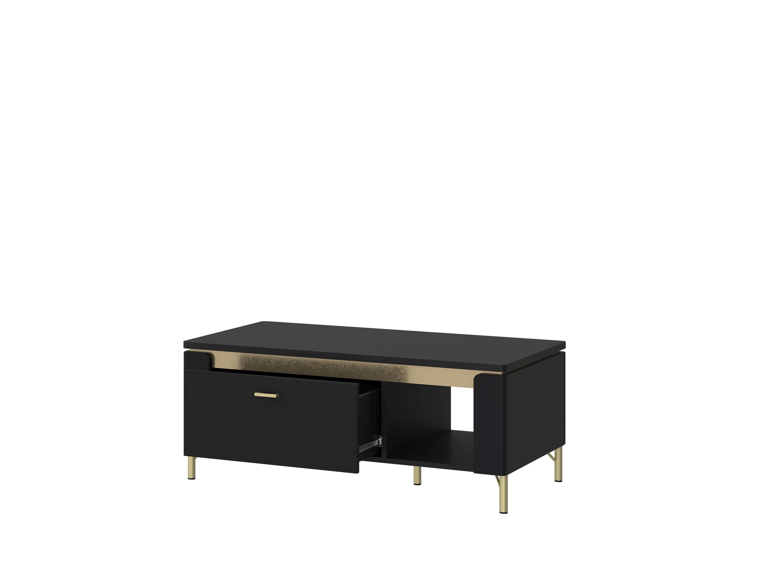 ton noir et contrastes ton doré, plateau en MDF, panneau de particules surfacé mélaminé (PPSM)